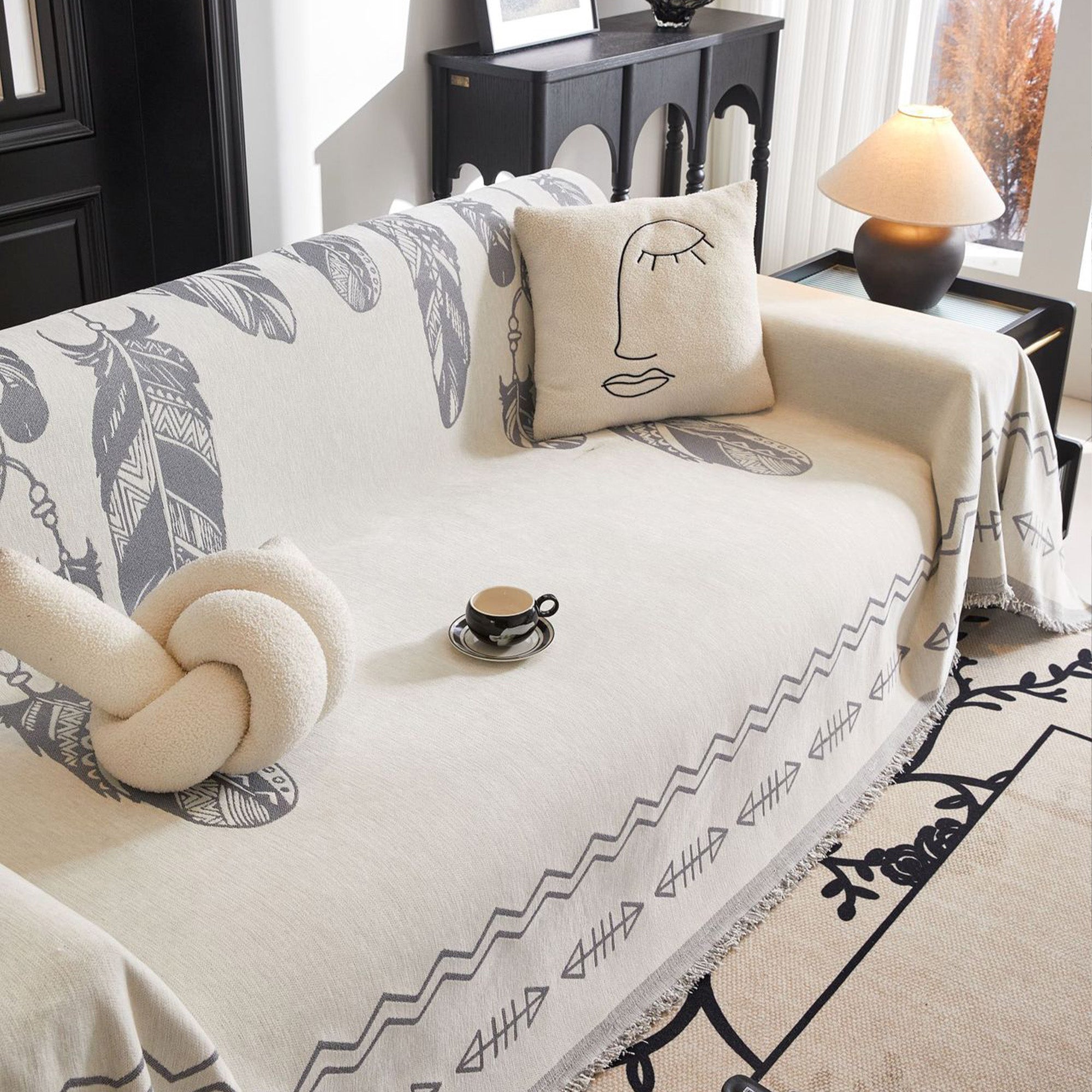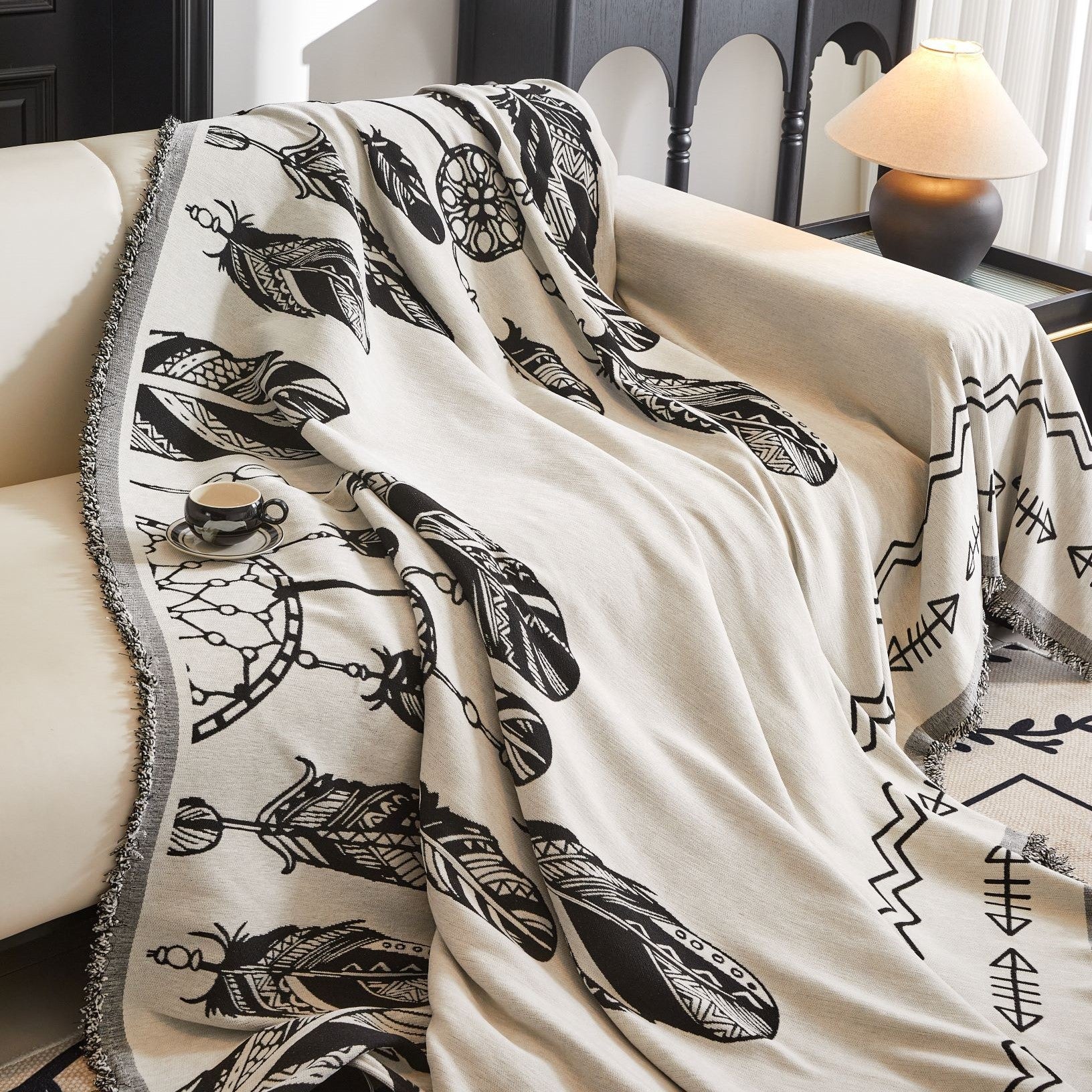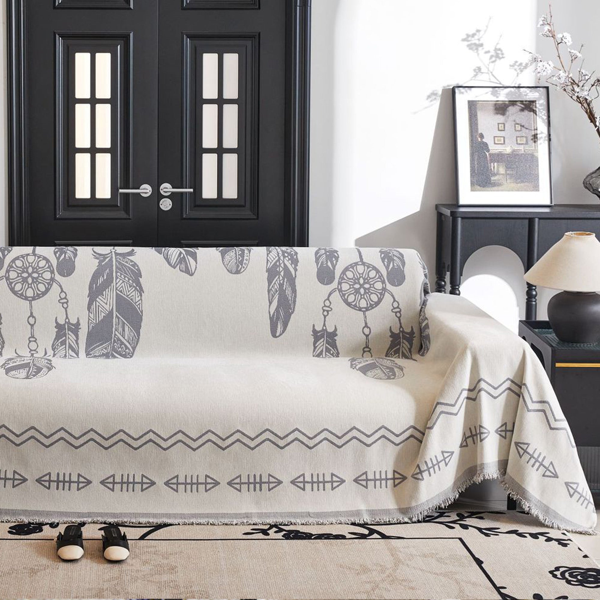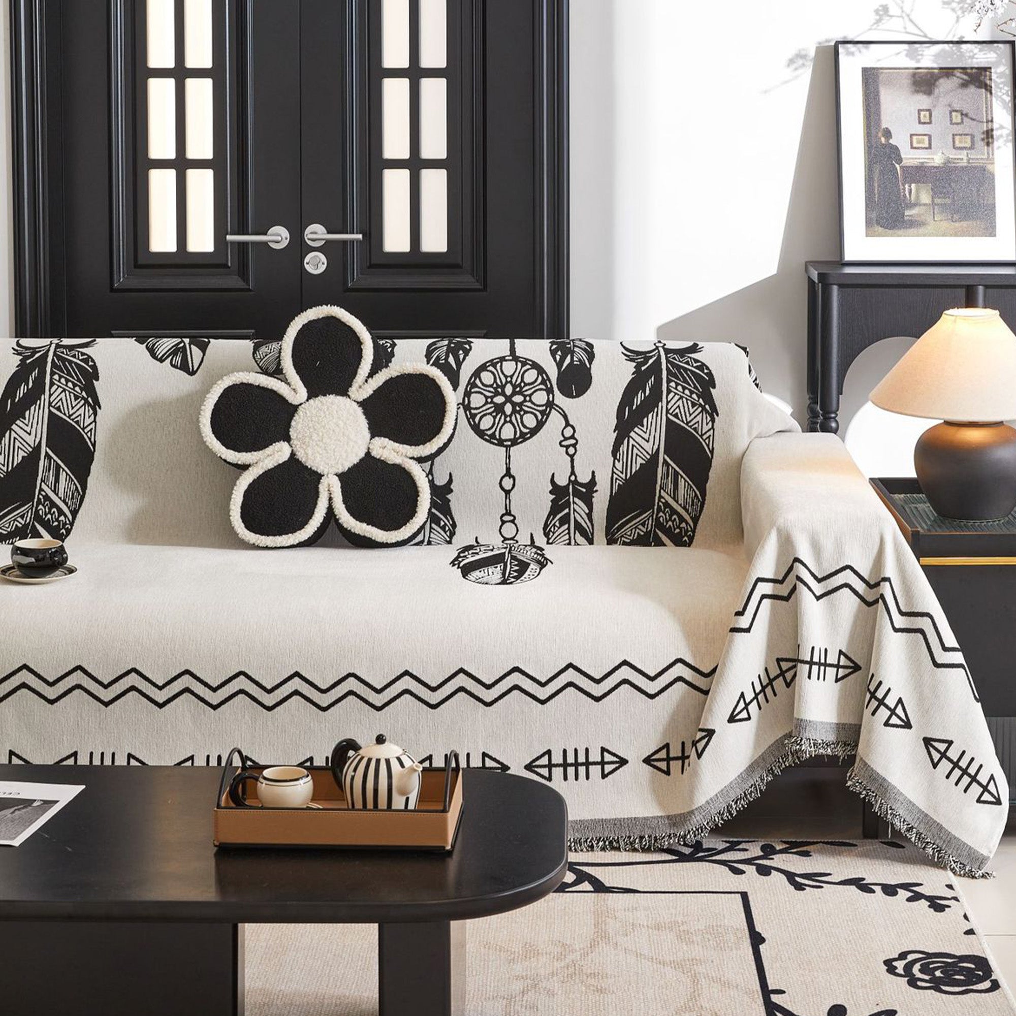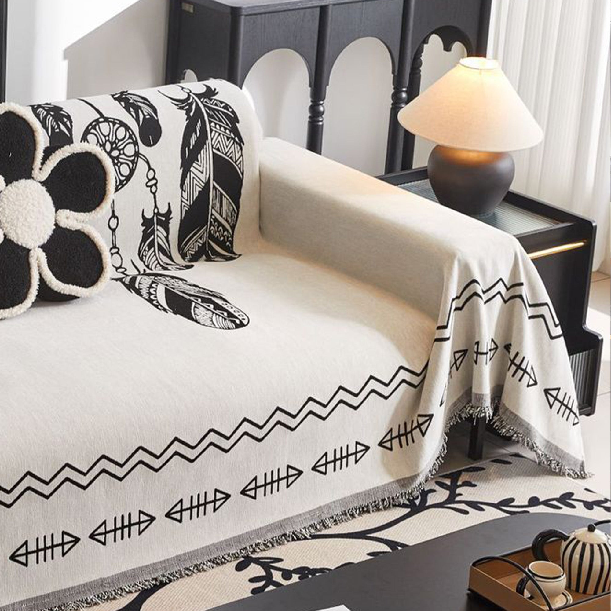 Verschönern Sie die Ästhetik Ihres Wohnzimmers mit diesem von Dreamcatcher inspirierten Sofabezug. Dieser Bezug zeichnet sich durch ein kühnes und kompliziertes schwarz-weißes Feder- und Pfeildesign aus und kombiniert modernen Boho-Charme mit funktionalem Schutz für Ihr Sofa. Perfekt, um eine einzigartige und einladende Atmosphäre in Ihrem Zuhause zu schaffen.