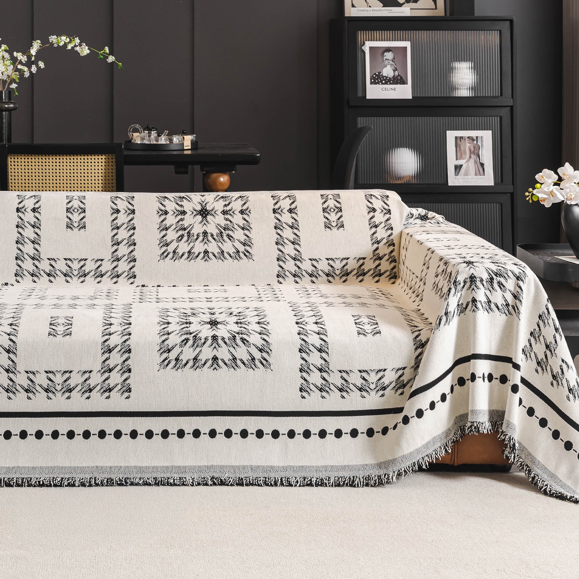 Verleihen Sie Ihrem Wohnraum mit unserem Sunburst Harmony Sofabezug einen Hauch von geometrischem Charme und Komfort. Mit seinem weichen, atmungsaktiven Stoff und den zarten Rüschendetails verleiht dieser Bezug jedem Raum gemütlichen Charakter und zeitlosen Stil. So bleibt Ihr Sofa frisch und verleiht Ihrer Einrichtung gleichzeitig Wärme und Persönlichkeit. Ob Sie es sich mit einem Buch gemütlich machen, Gäste empfangen oder Ihrem Zuhause ein schnelles Style-Update verpassen – dieser Bezug bietet die perfekte Mischung aus Komfort, Funktionalität und Vintage-Flair.