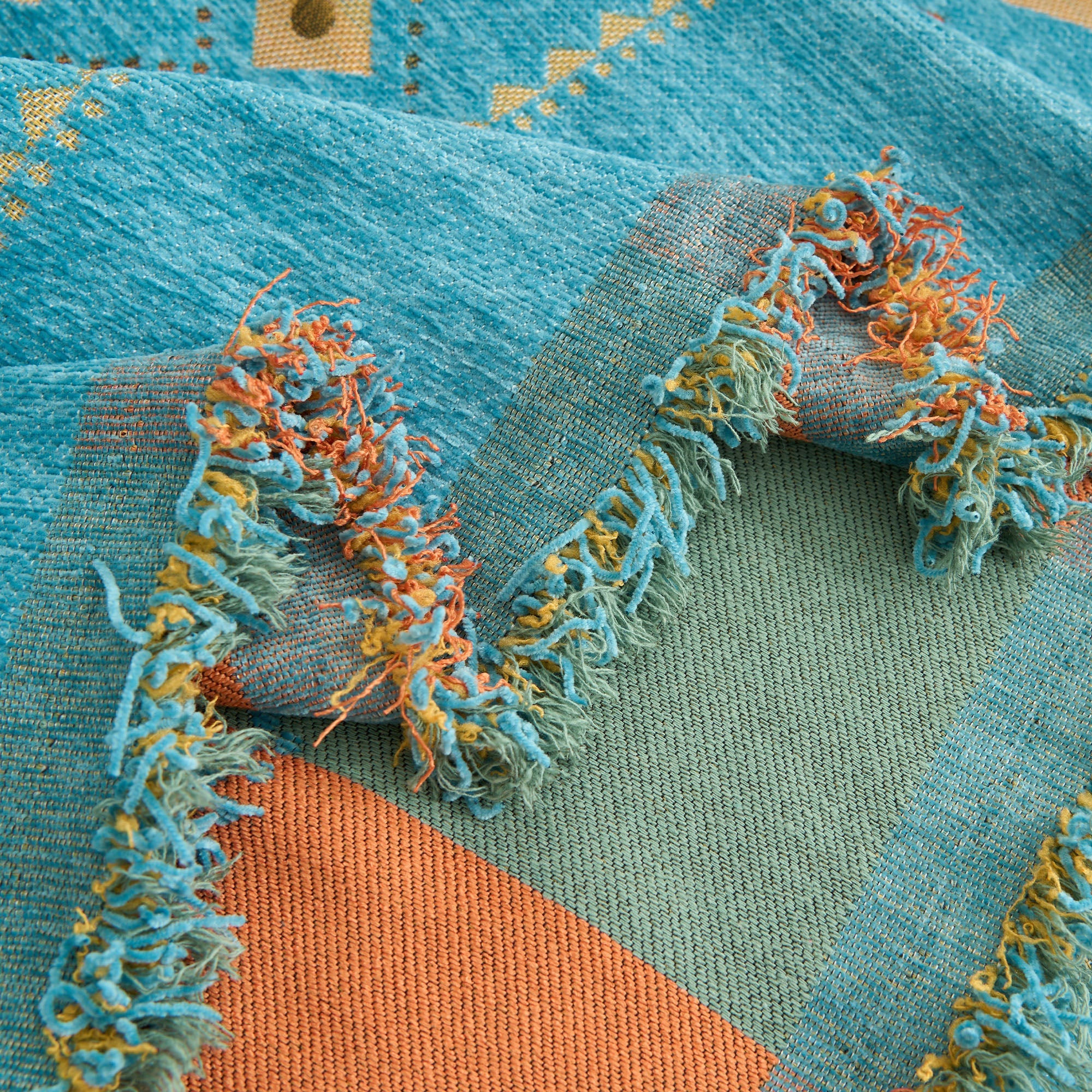 • Helles geometrisches Design: Mit einem farbenfrohen, nordisch inspirierten geometrischen Muster, das Ihrer Einrichtung ein trendiges, künstlerisches Flair verleiht.