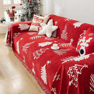 Chenille-Sofabezug mit Weihnachtsmotiv, festlich, rot, mit Baum- und Sternmotiv, als Weihnachtsdeko