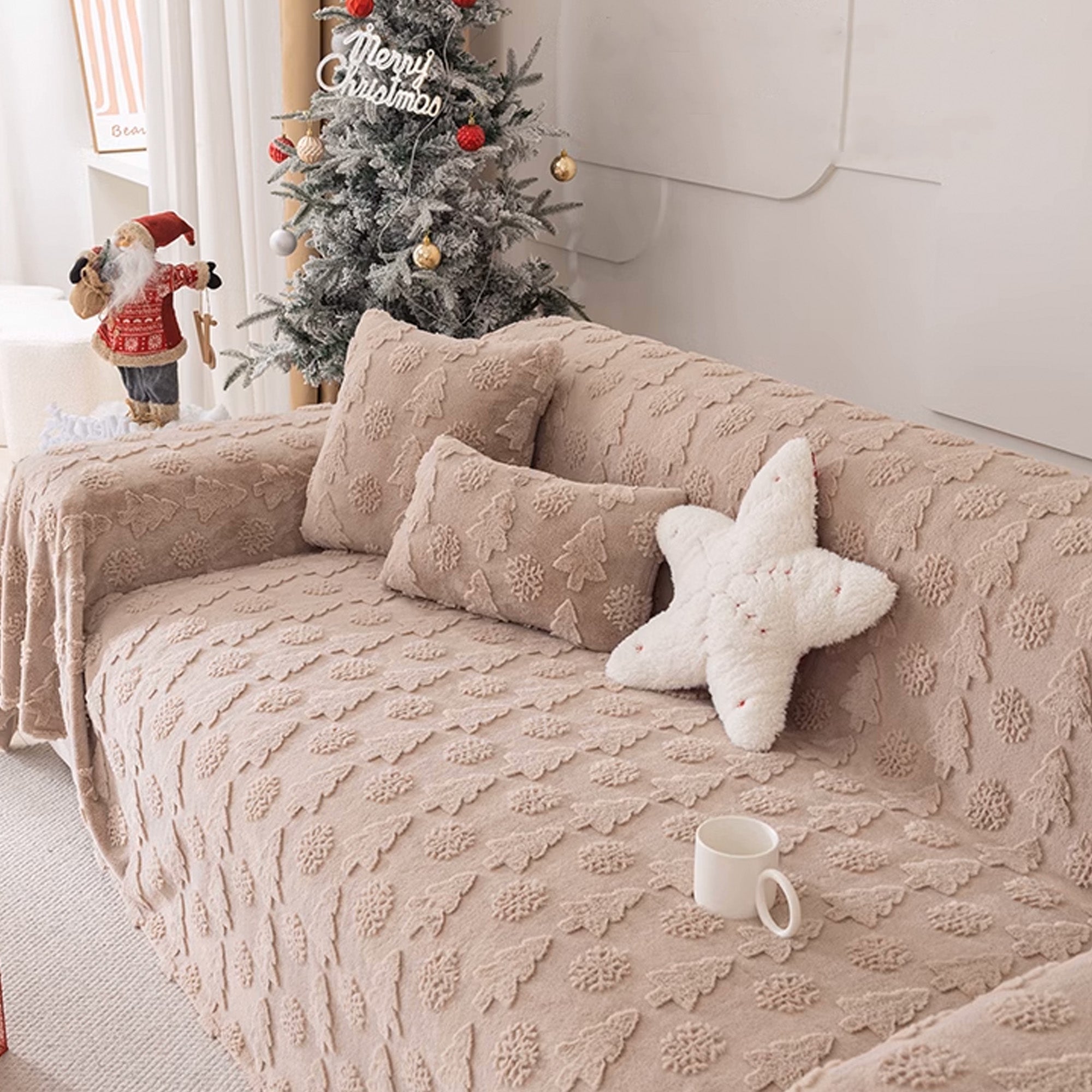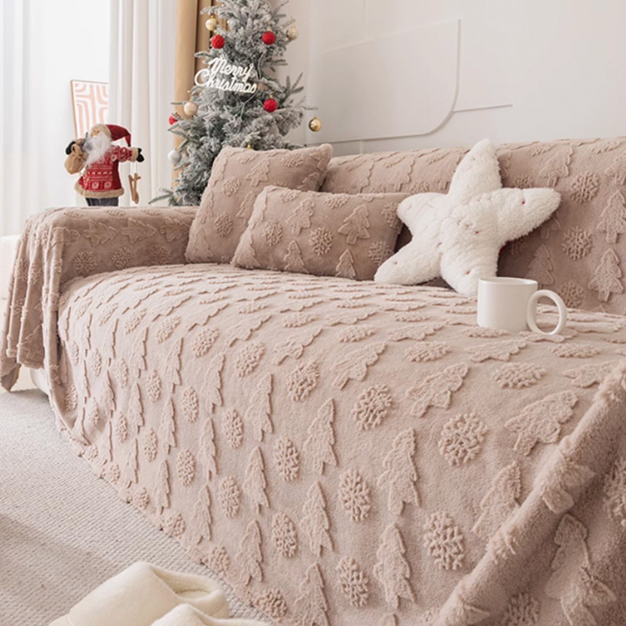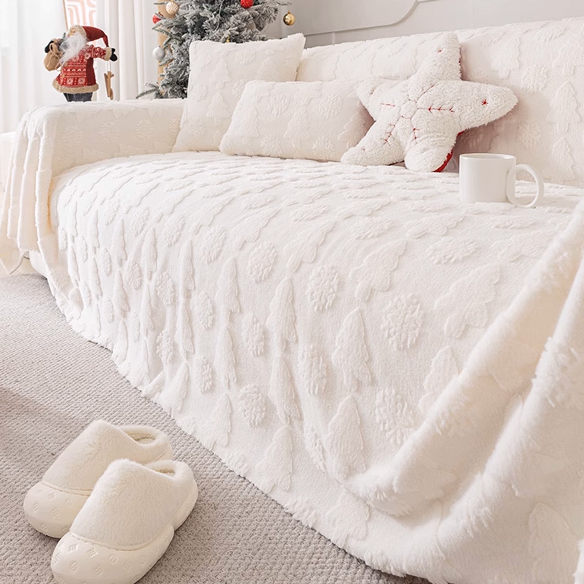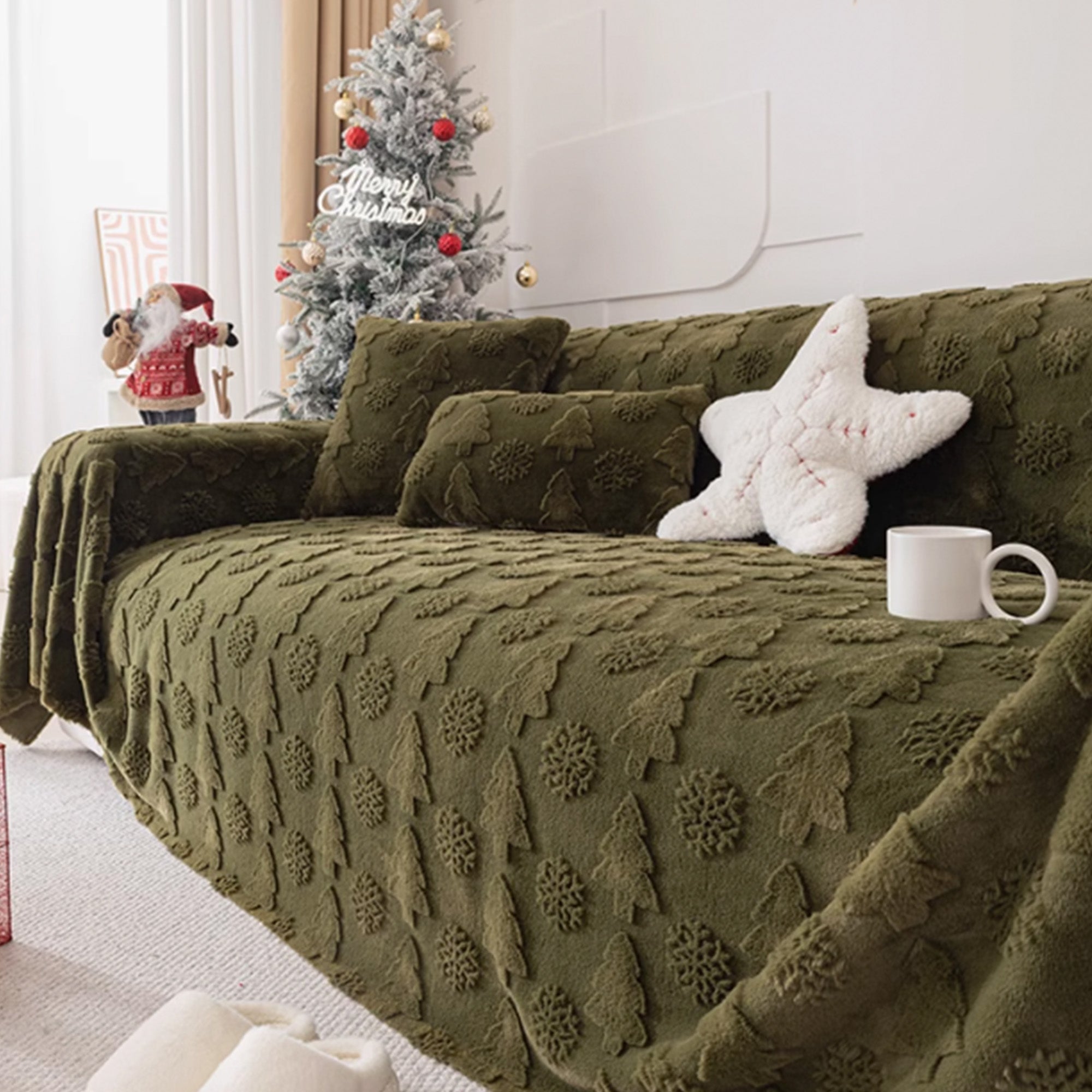 Sofabezug aus Plüschstoff mit 3D-Weihnachtsbaummuster und kuscheliger konkav-konvexer Textur