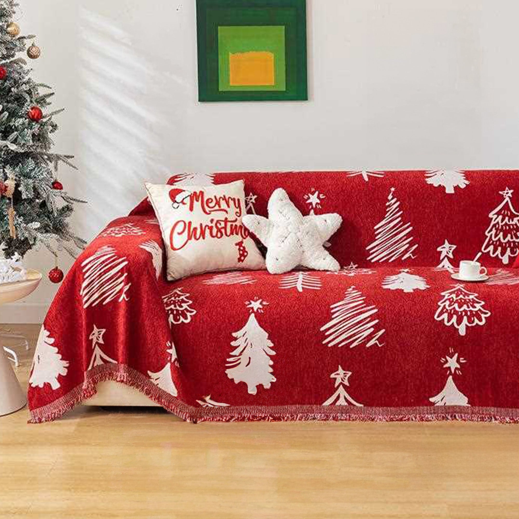 Bringen Sie festliche Stimmung in Ihr Zuhause mit dem Merry Christmas Chenille Sofabezug. Dieser Sofabezug verfügt über einen leuchtend roten Sockel, der mit weißen Weihnachtsbaum- und Sternmustern geschmückt ist. Er kombiniert Urlaubsstimmung mit alltäglicher Funktionalität. Entwickelt, um Ihr Sofa zu schützen und gleichzeitig Ihre Einrichtung zu verschönern, ist er die perfekte Wahl für eine gemütliche und stilvolle Weihnachtszeit.