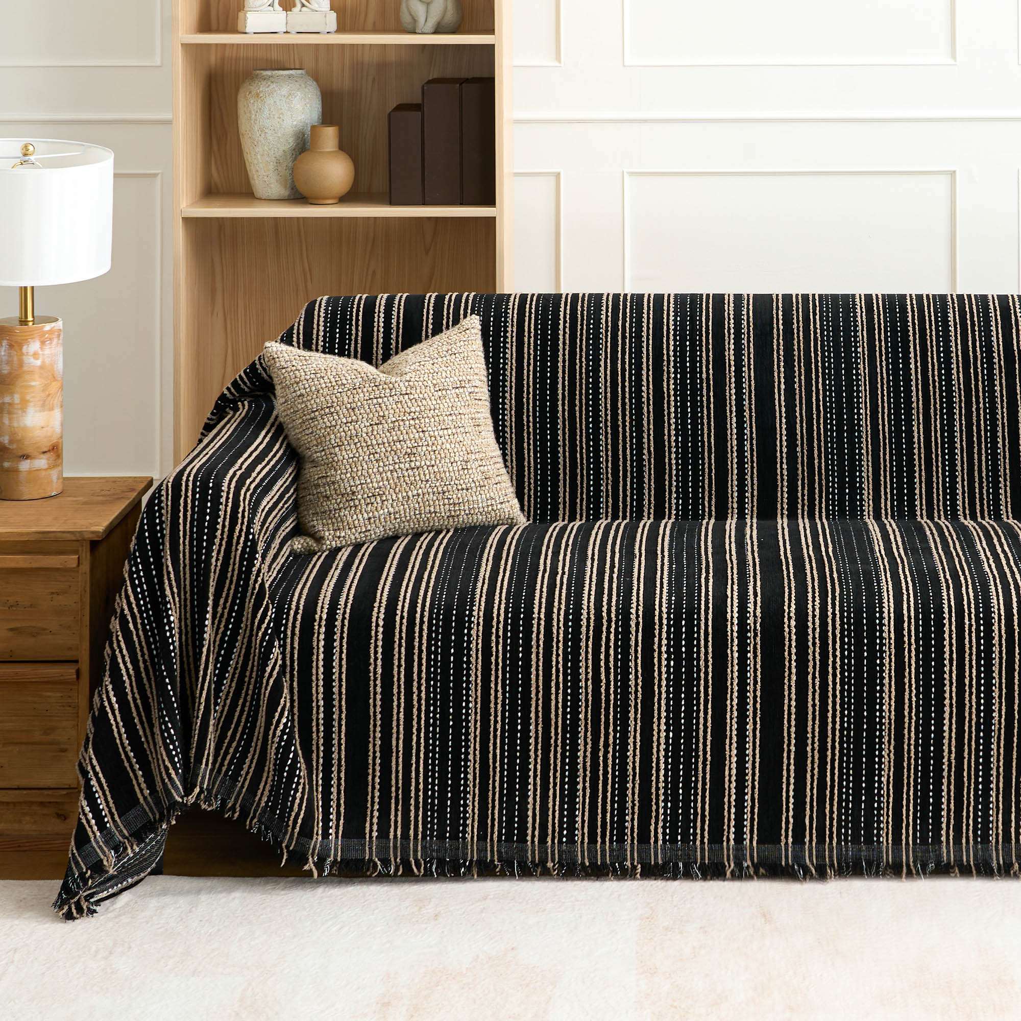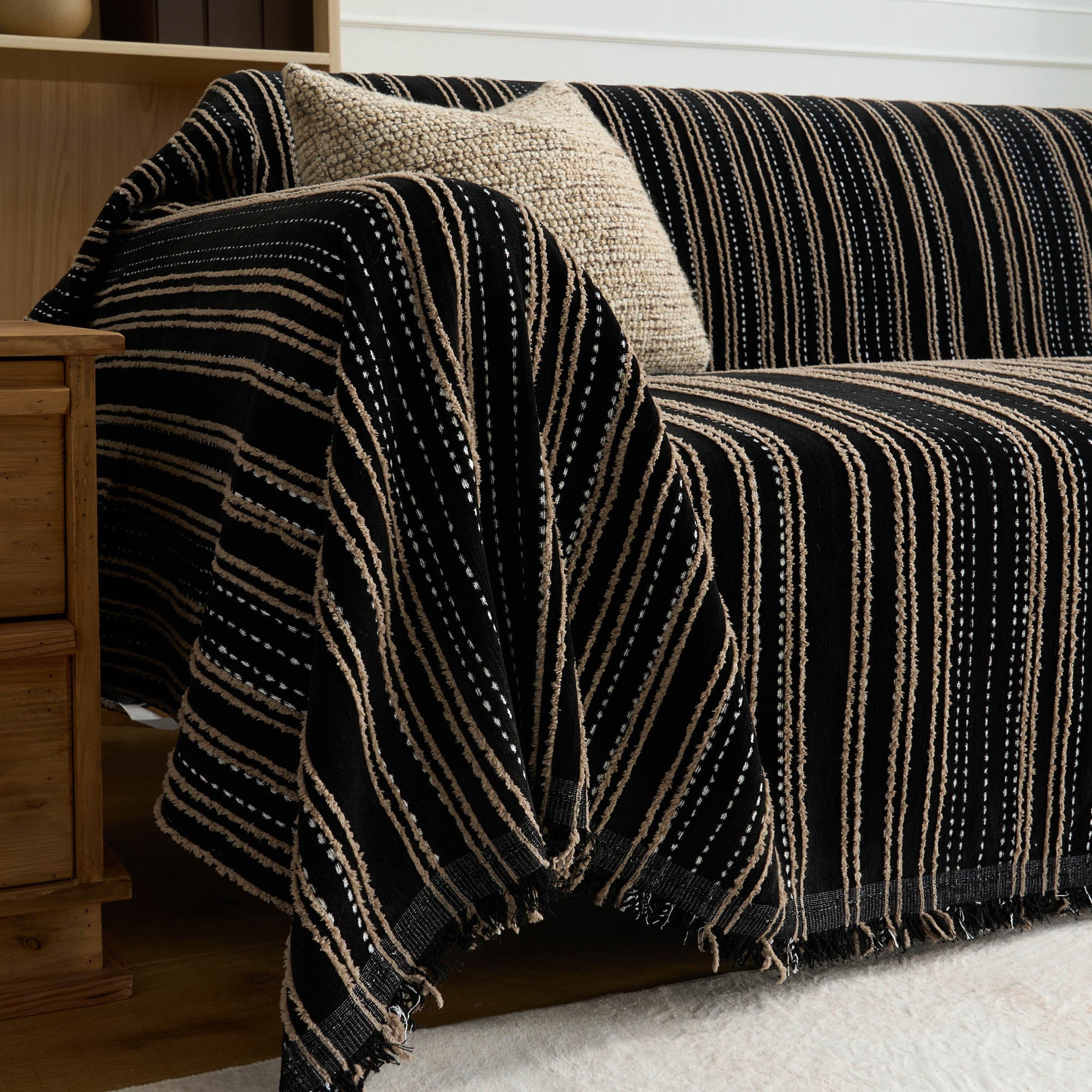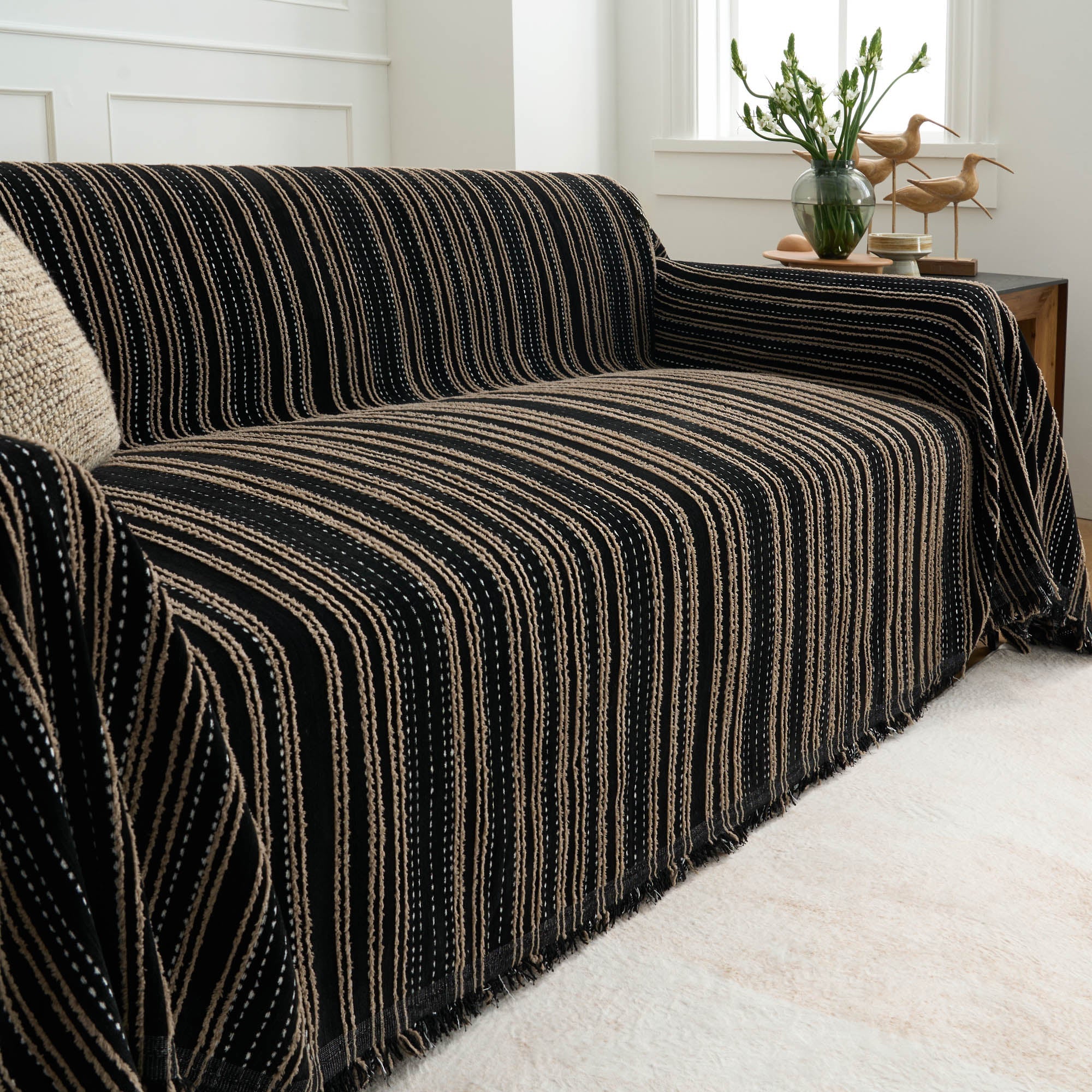 Verleihen Sie Ihrem Wohnraum mit diesem Sofabezug mit strukturierten Streifen einen Hauch zeitloser Eleganz. Dieser Bezug verfügt über ein raffiniertes einfarbiges Streifendesign und verbessert mühelos das Ambiente Ihres Zimmers mit seinem klassischen und stilvollen Look. Der strukturierte Stoff sorgt für ein gemütliches und einladendes Gefühl und eignet sich perfekt für das tägliche Entspannen und bietet gleichzeitig eine Schutzschicht für Ihre Möbel. Egal, ob Sie eine minimalistische Atmosphäre oder ein mutiges Statement anstreben, dieses Cover passt sich mühelos einer Vielzahl von Einrichtungsstilen an.