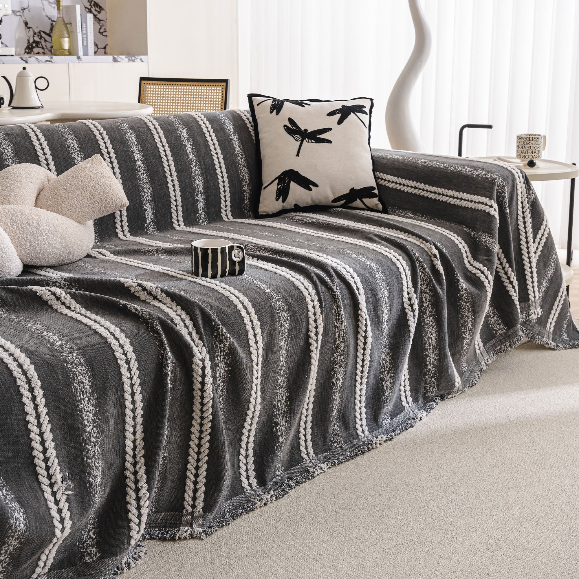 Strukturierte Streifen, moderner, weicher, haustierfreundlicher und langlebiger Sofabezug – maschinenwaschbar, minimalistischer Überwurf, Couchschutz
