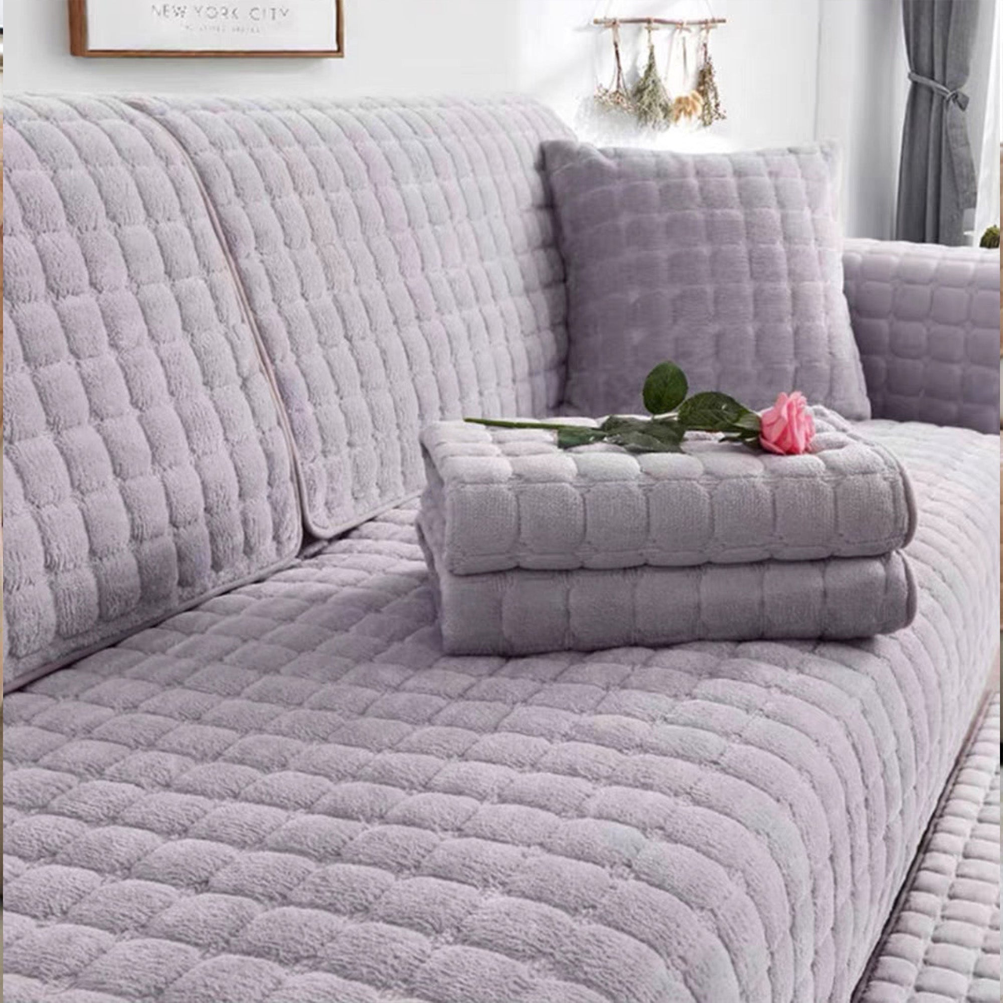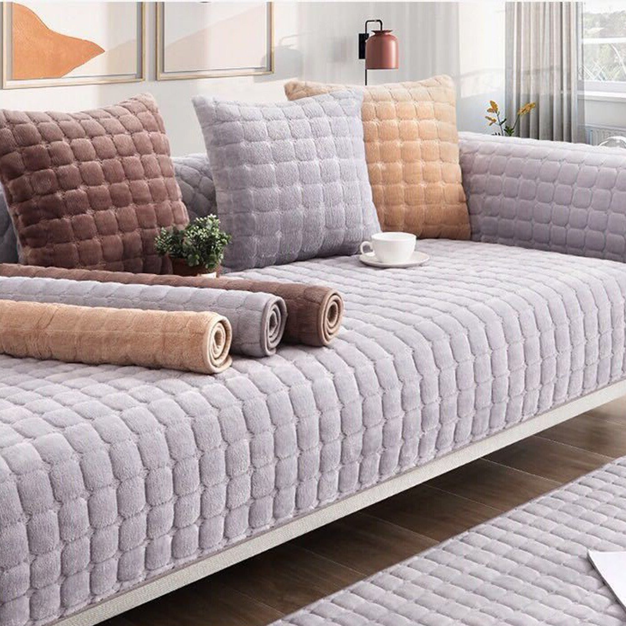Wir stellen unseren Biscuit Bliss Sofabezug vor — der ultimative Genuss für Ihren Wohnraum! Es ist aus luxuriösem Plüschstoff gefertigt und bietet eine unvergleichliche Weichheit. Es umhüllt Sie in puren Komfort und Luxus. Mit seinem warmen und dicken Design ist es, als würden Sie sich den ganzen Tag an Ihre Lieblingsdecke kuscheln. Außerdem können Sie sich von Haarproblemen verabschieden — unser sorgfältig ausgewähltes Material sorgt für einen sauberen und aufgeräumten Raum.