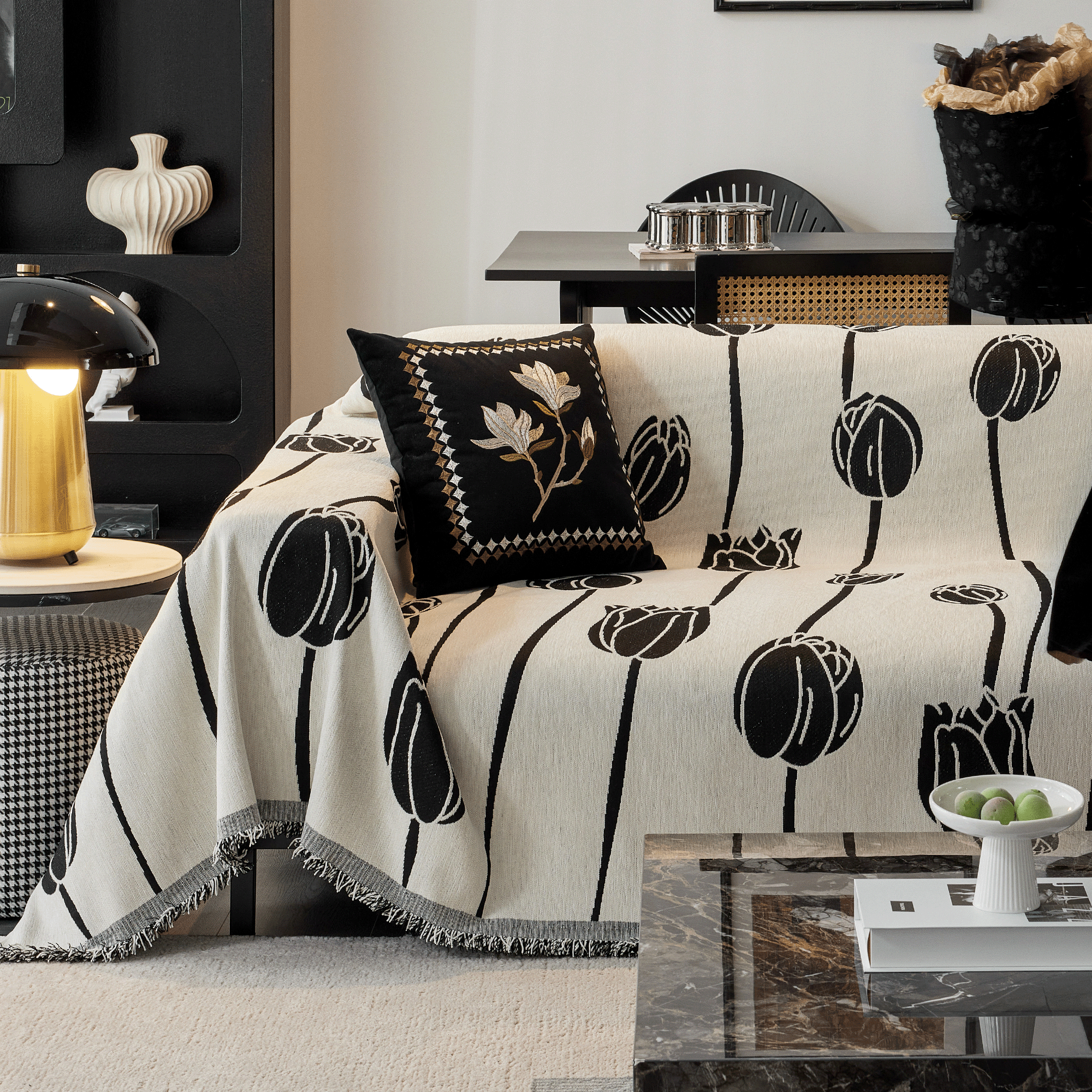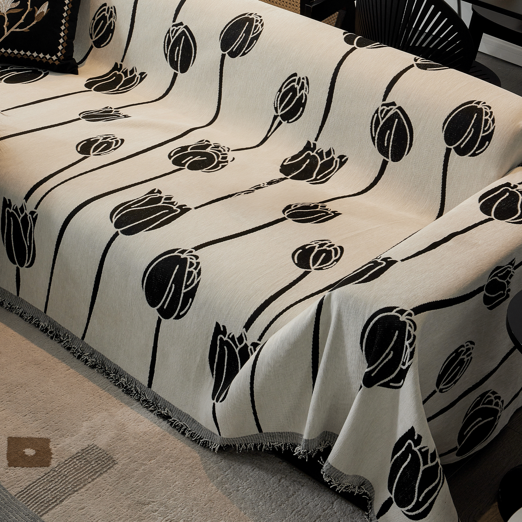 Sofabezug / Bequemer Wendebezug in schwarzem geometrischem Muster - Endverkauf