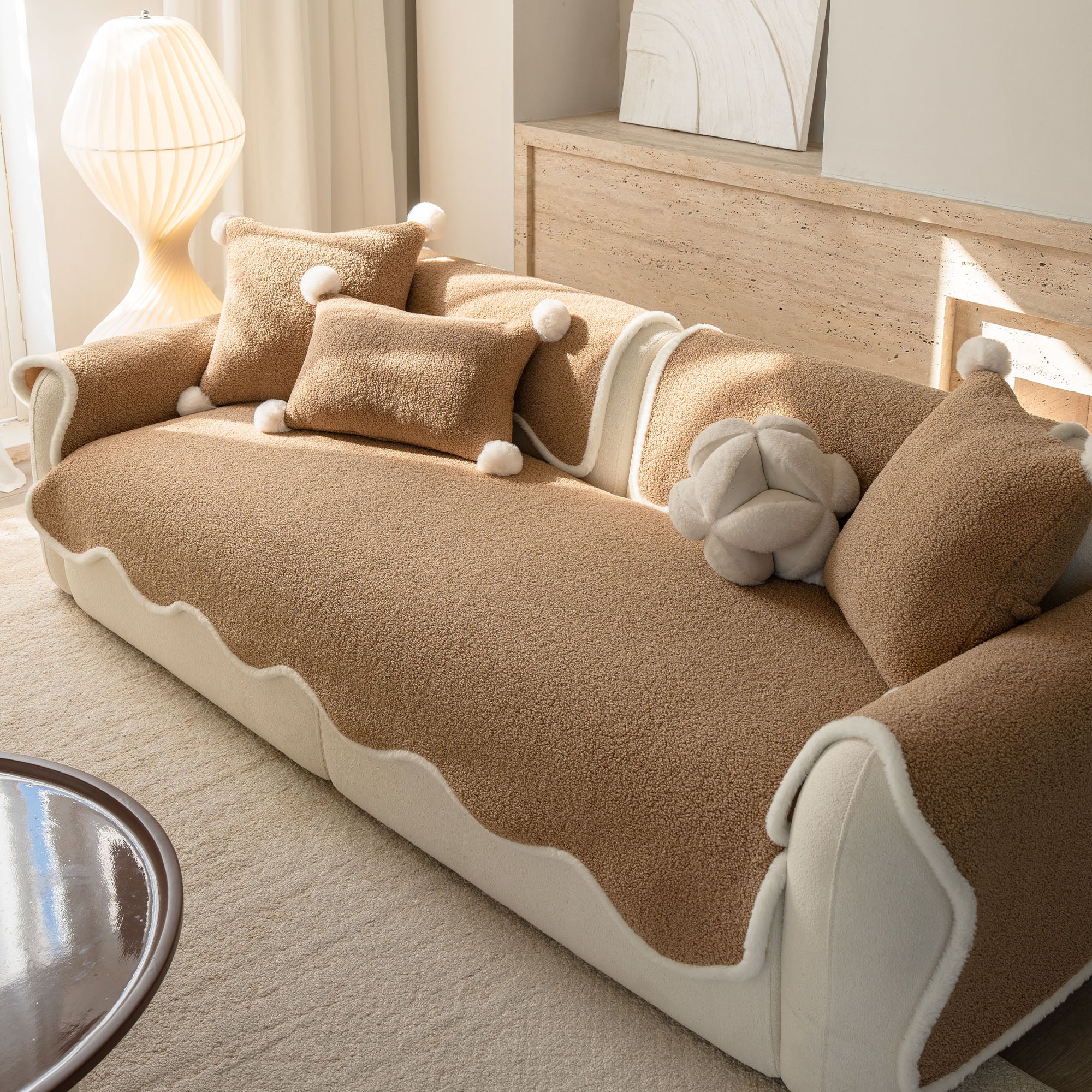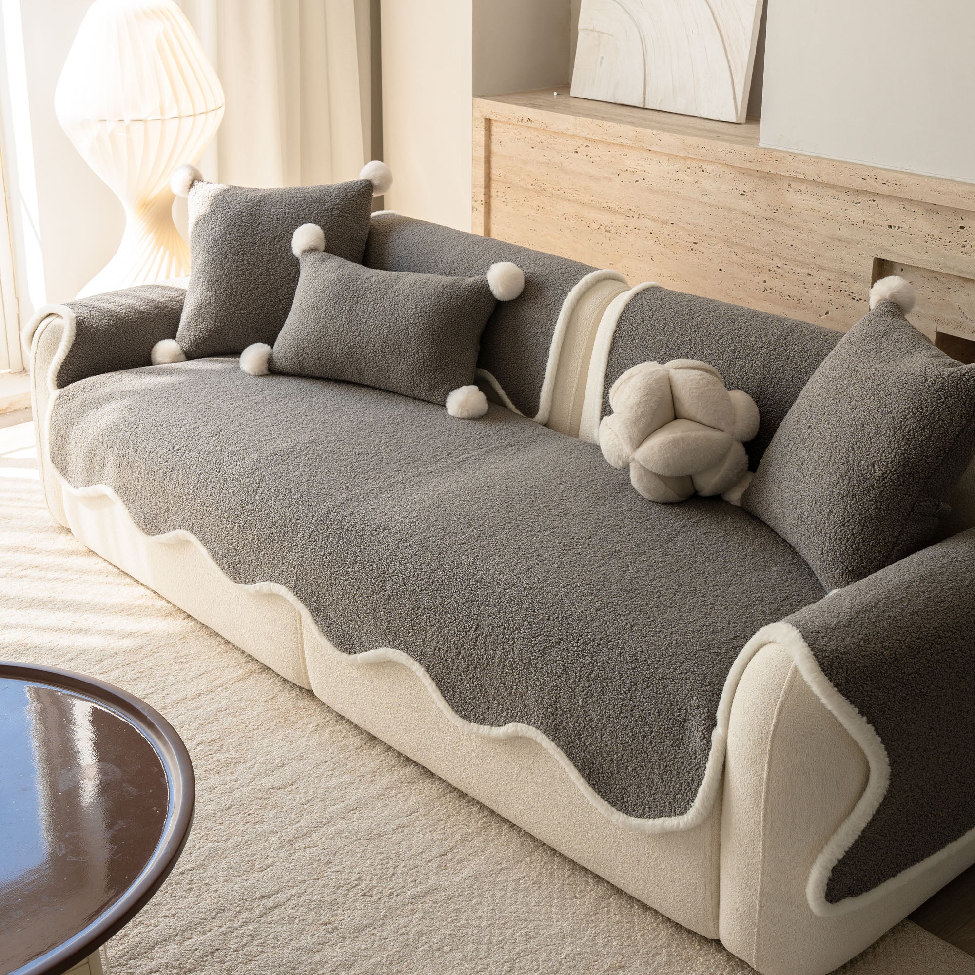 Gemütlicher, rutschfester Shearling-Sherpa-Sofabezug