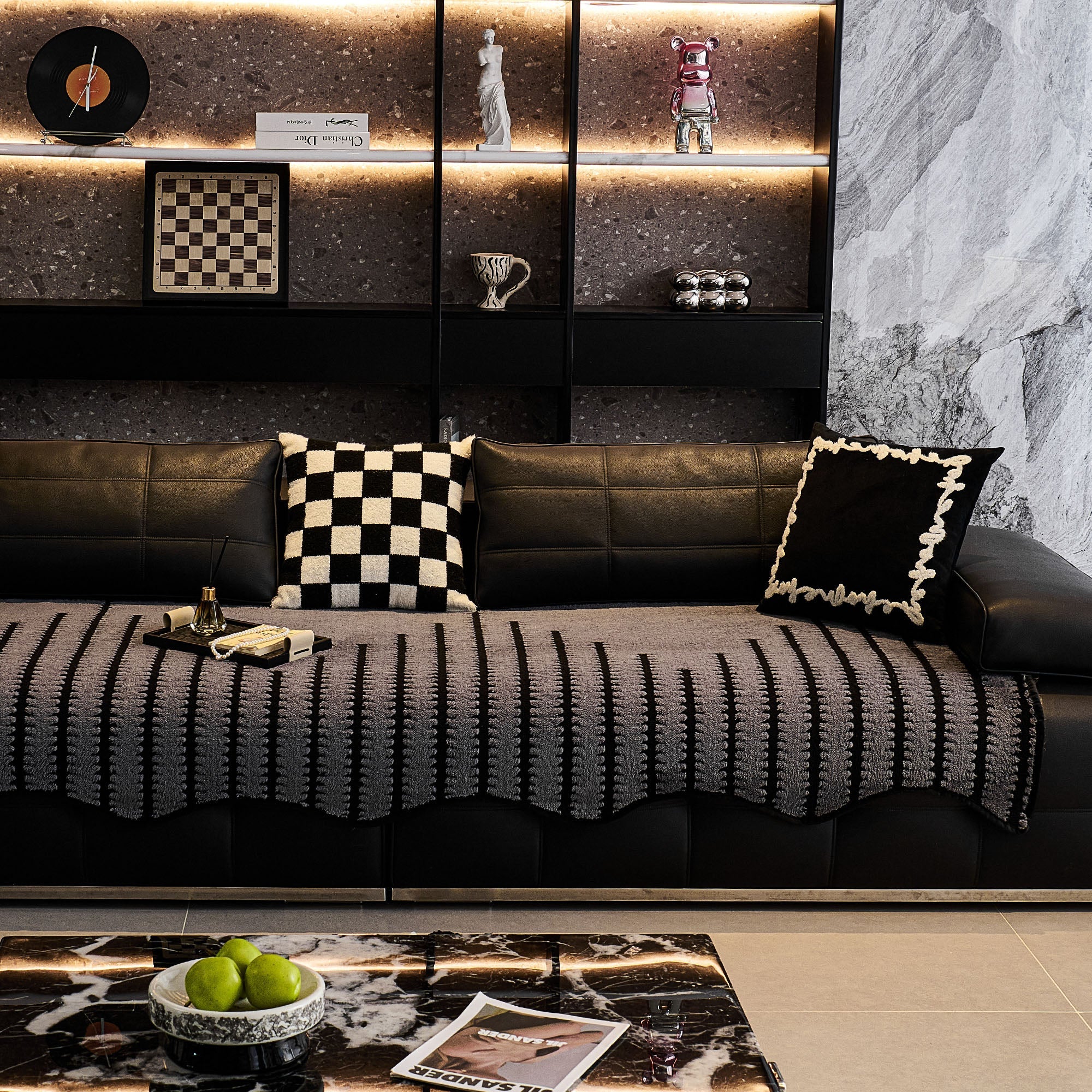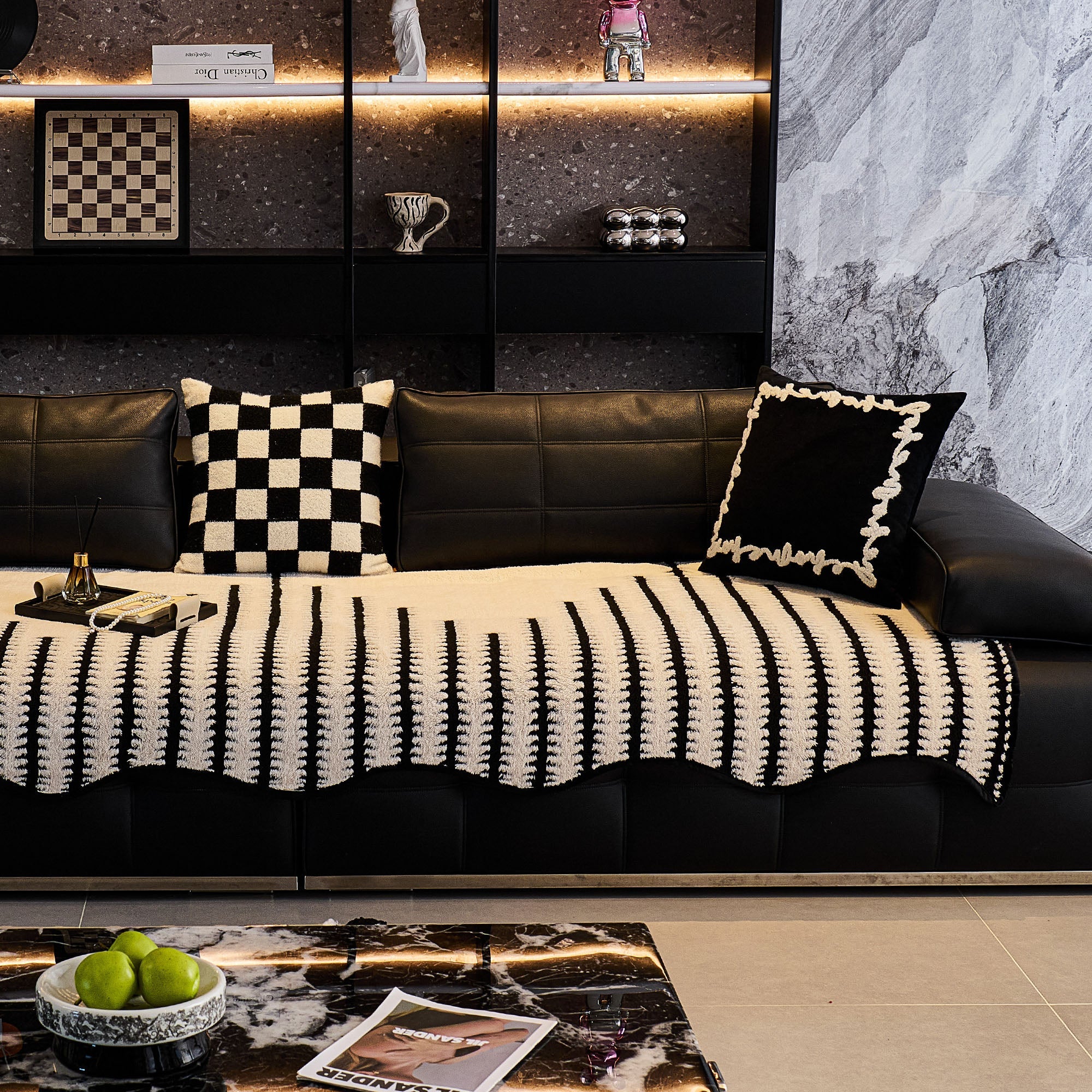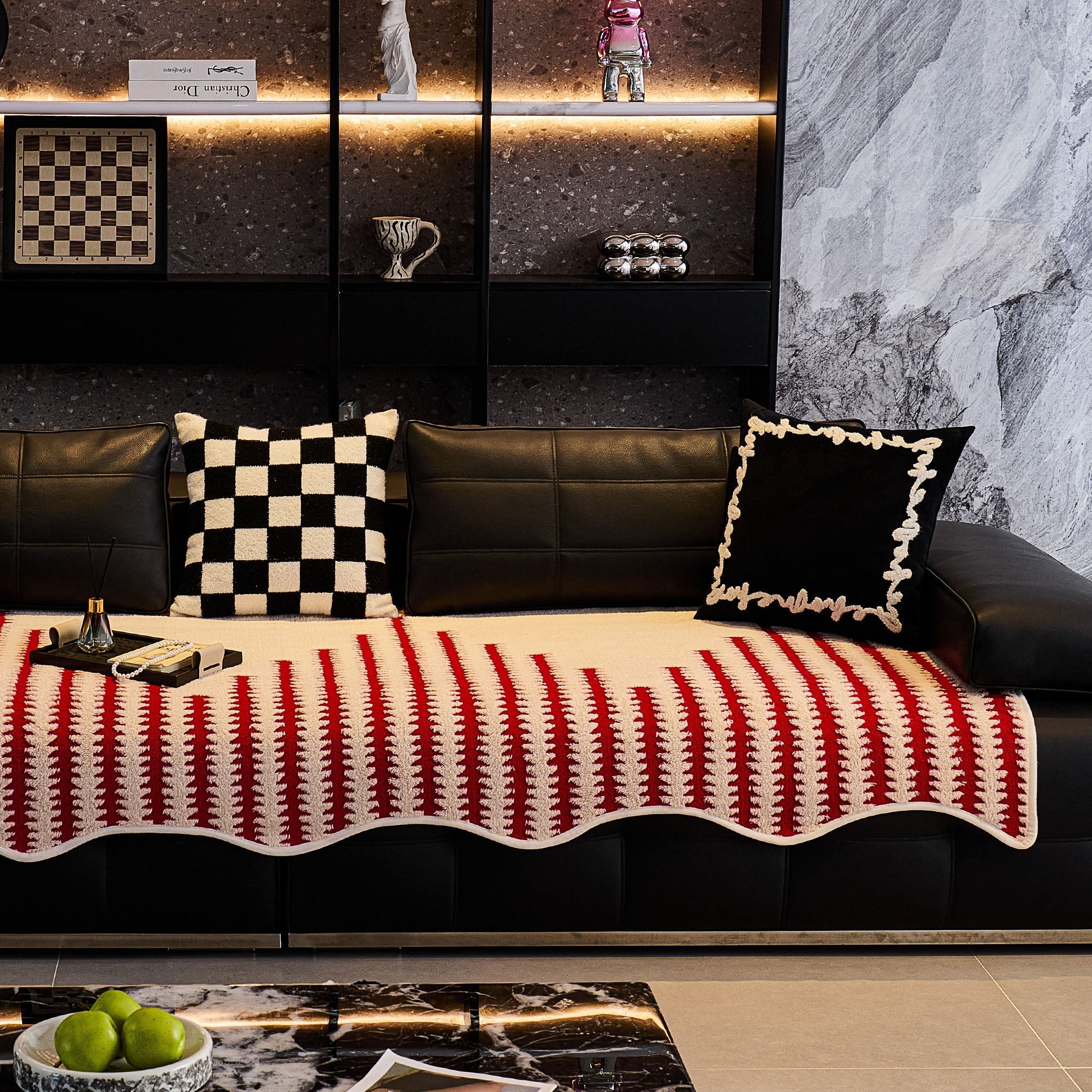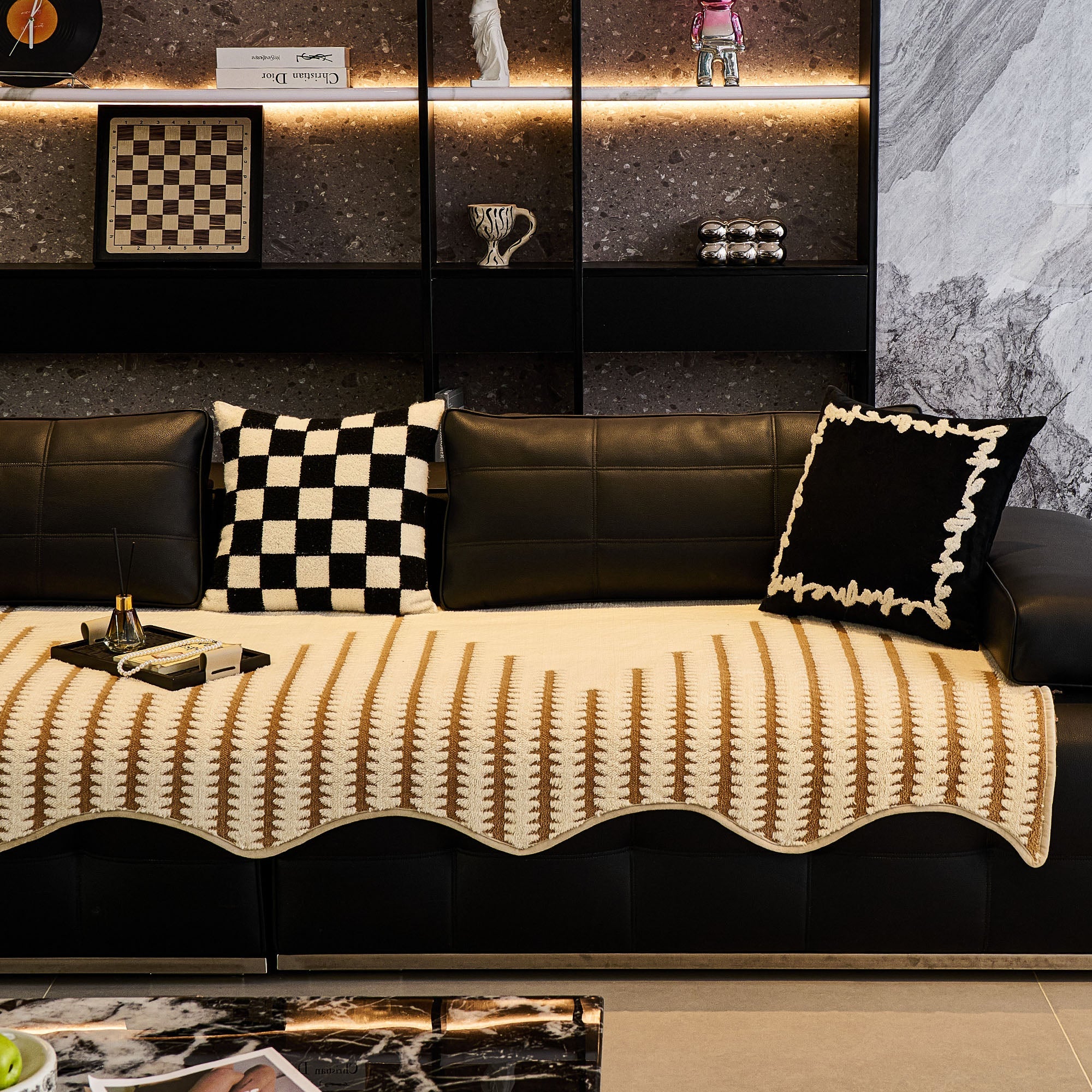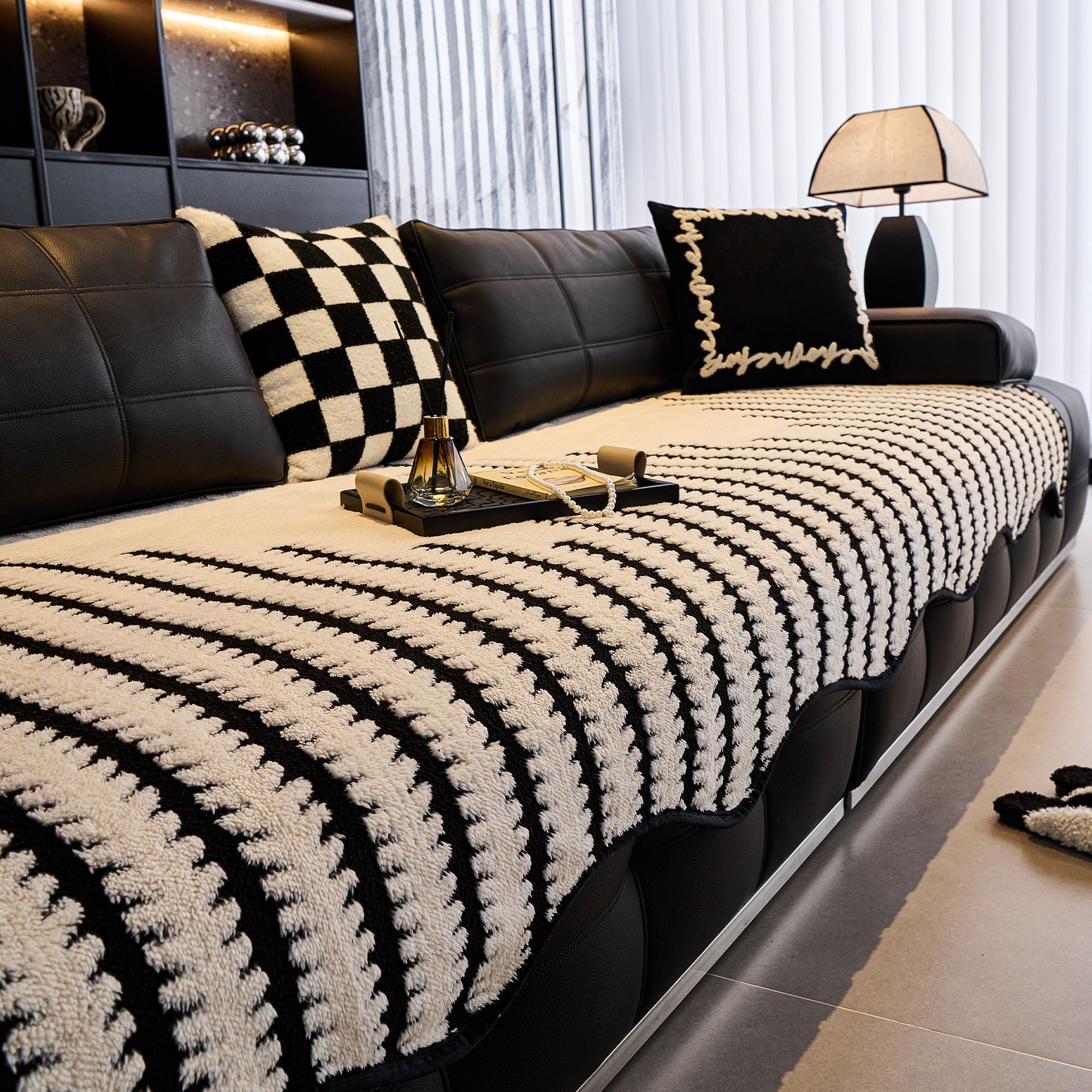Luxe Tuft Stripe Plüsch-Sofabezug, rutschfest