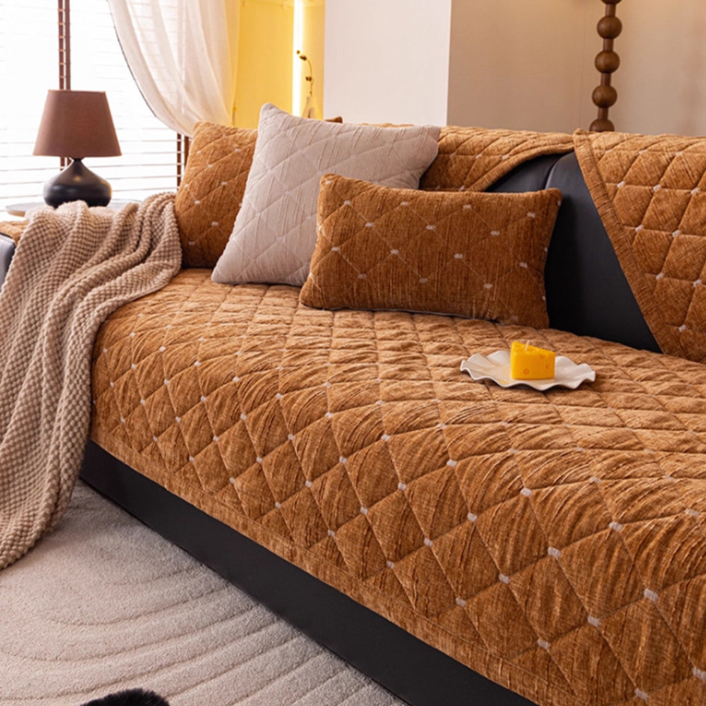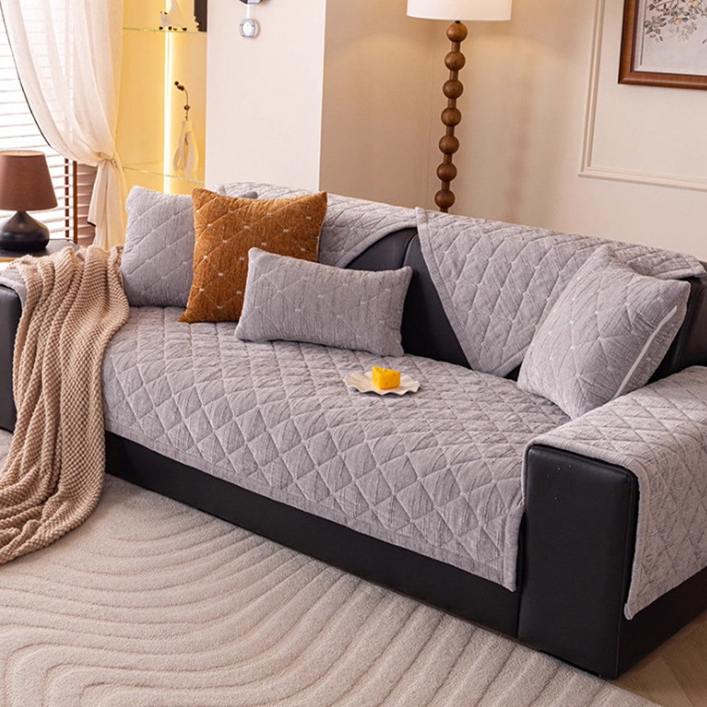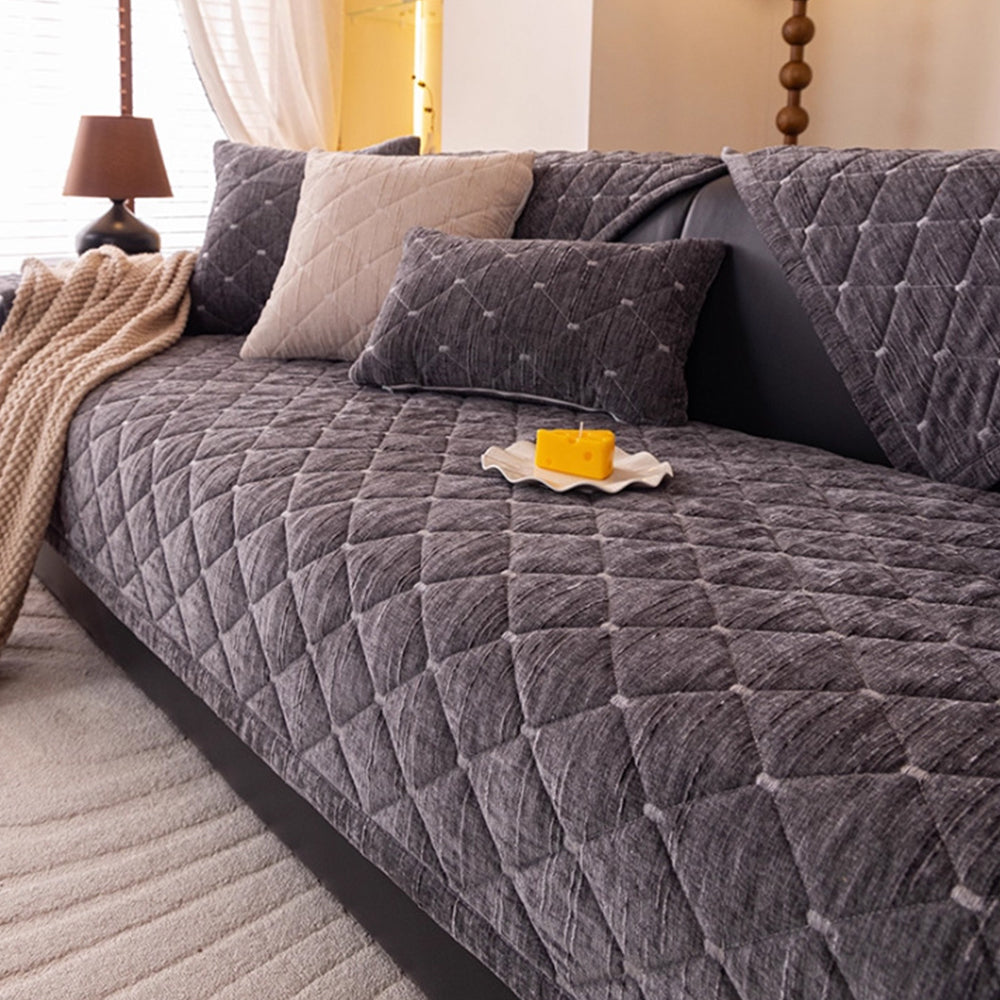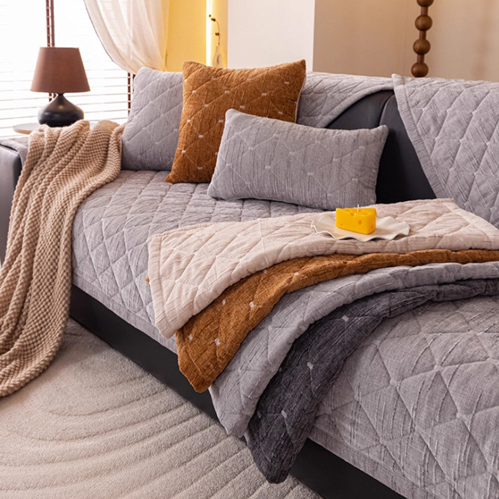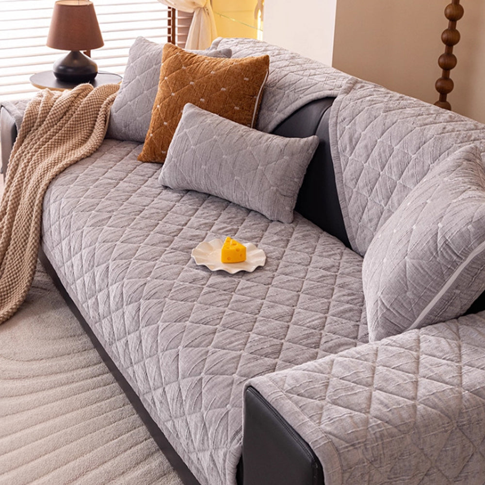 Moderner, gesteppter Luxus-Sofabezug aus Chenille mit rutschfester Oberfläche