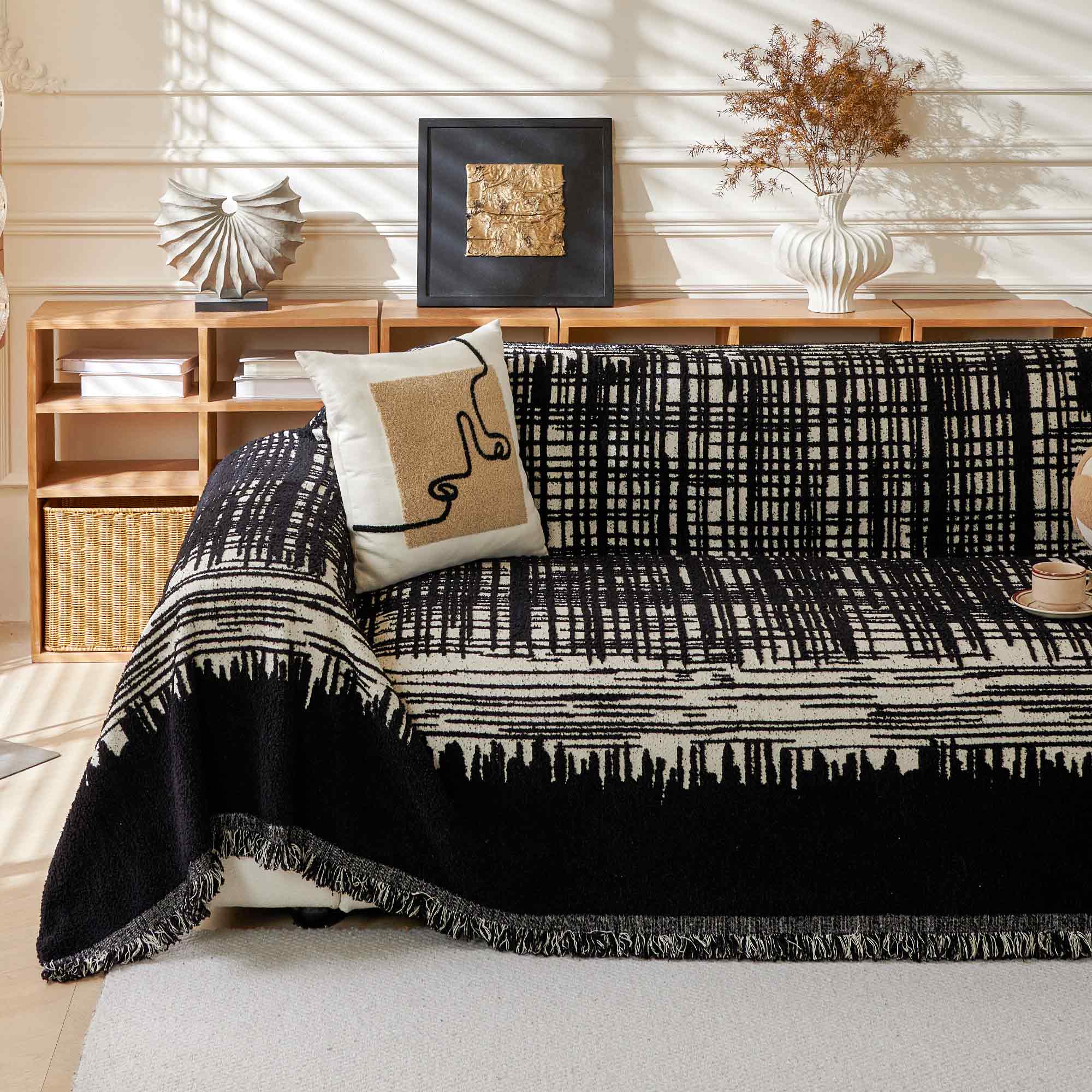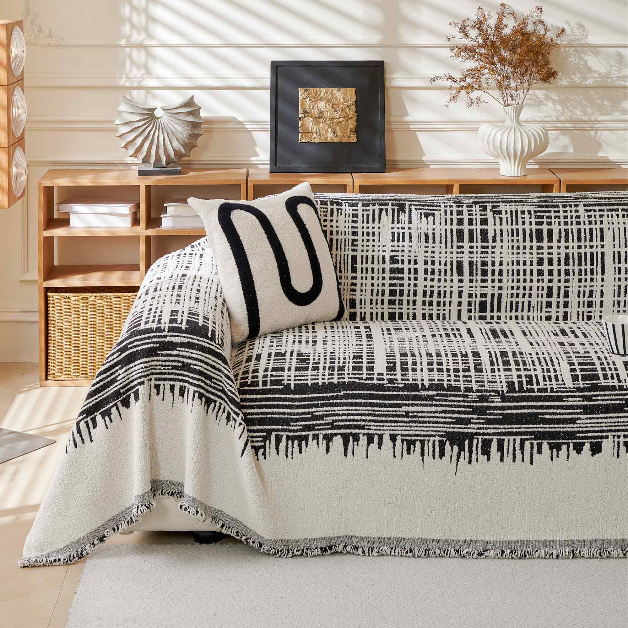 Sofabezug / Bequemer Wendebezug in schwarzem geometrischem Muster - Endverkauf