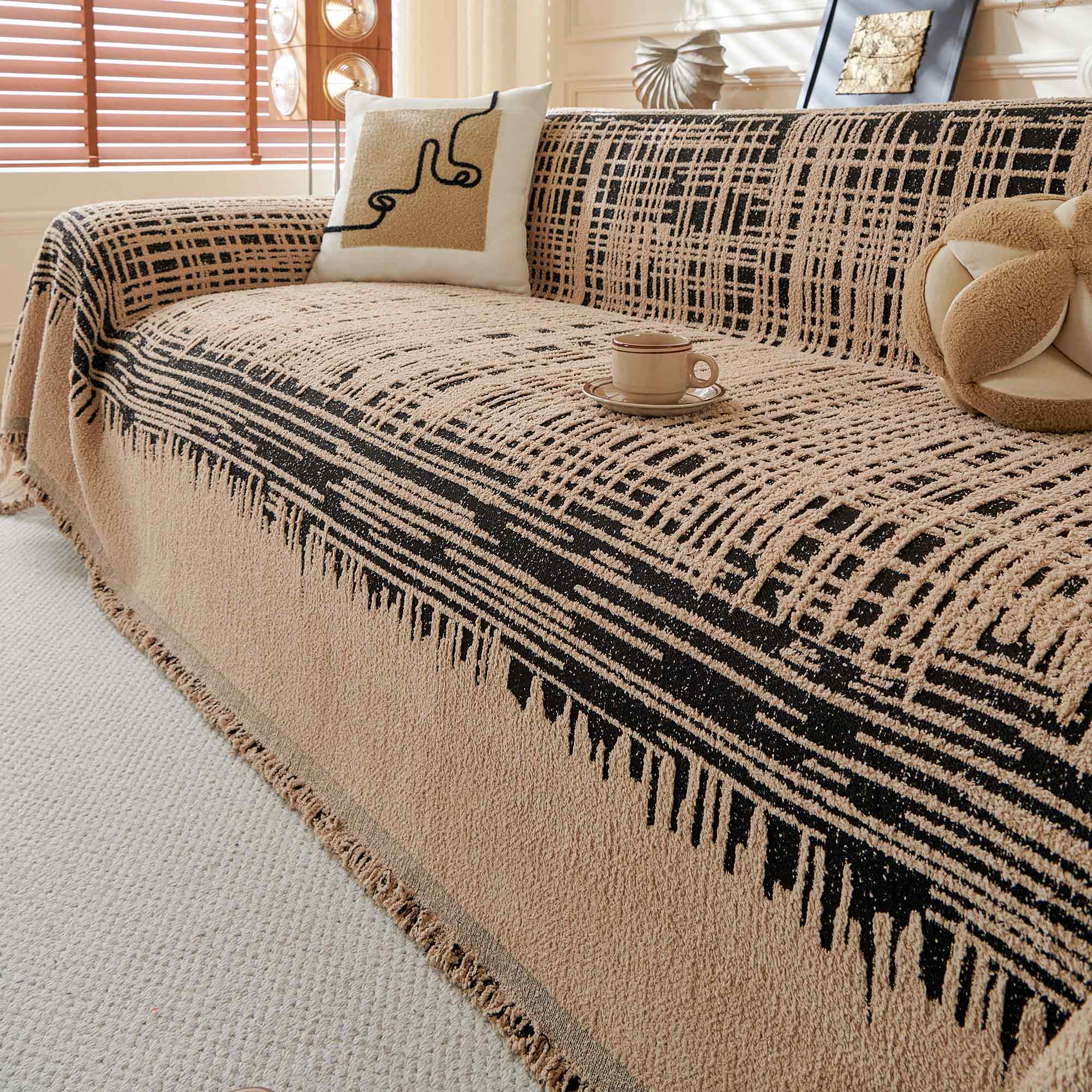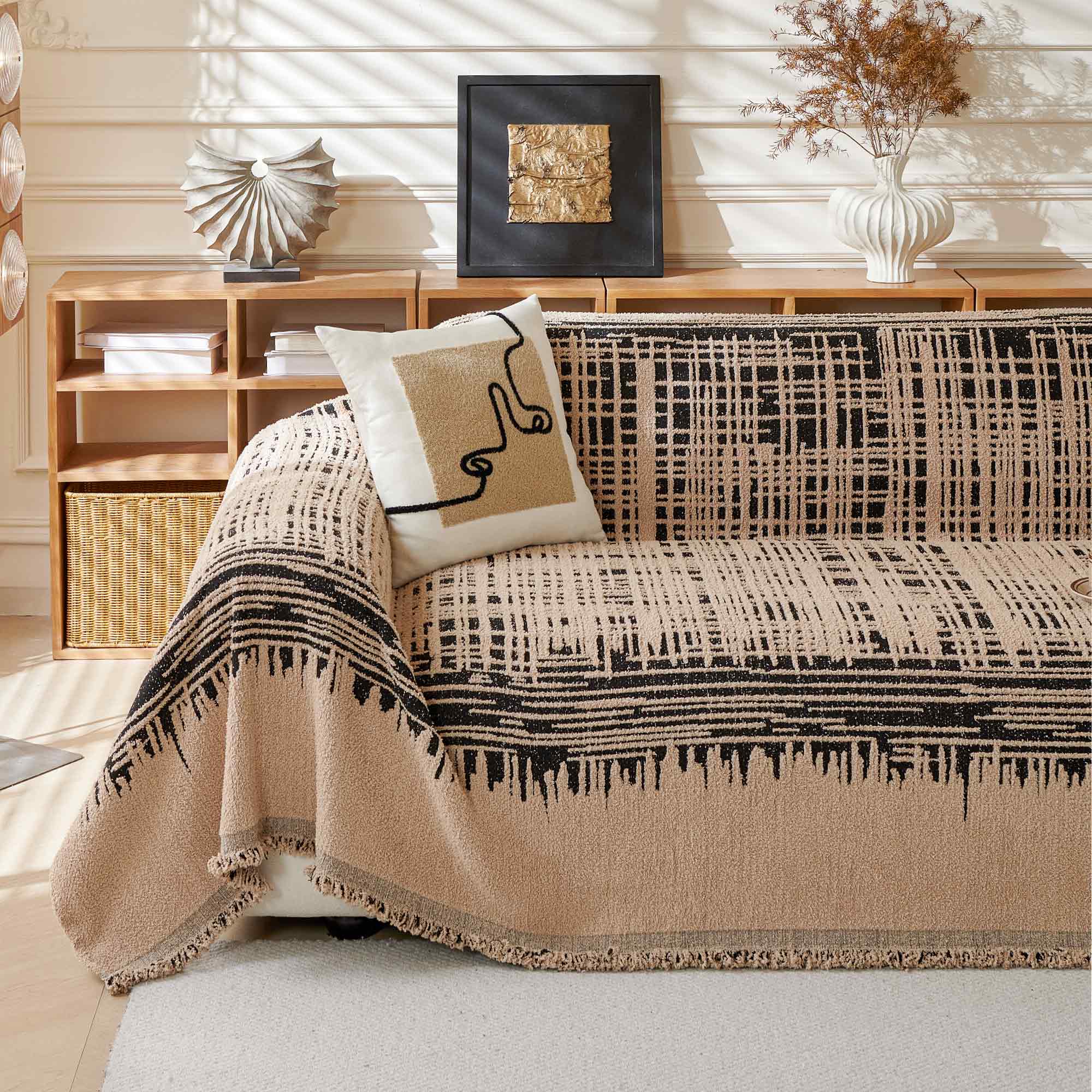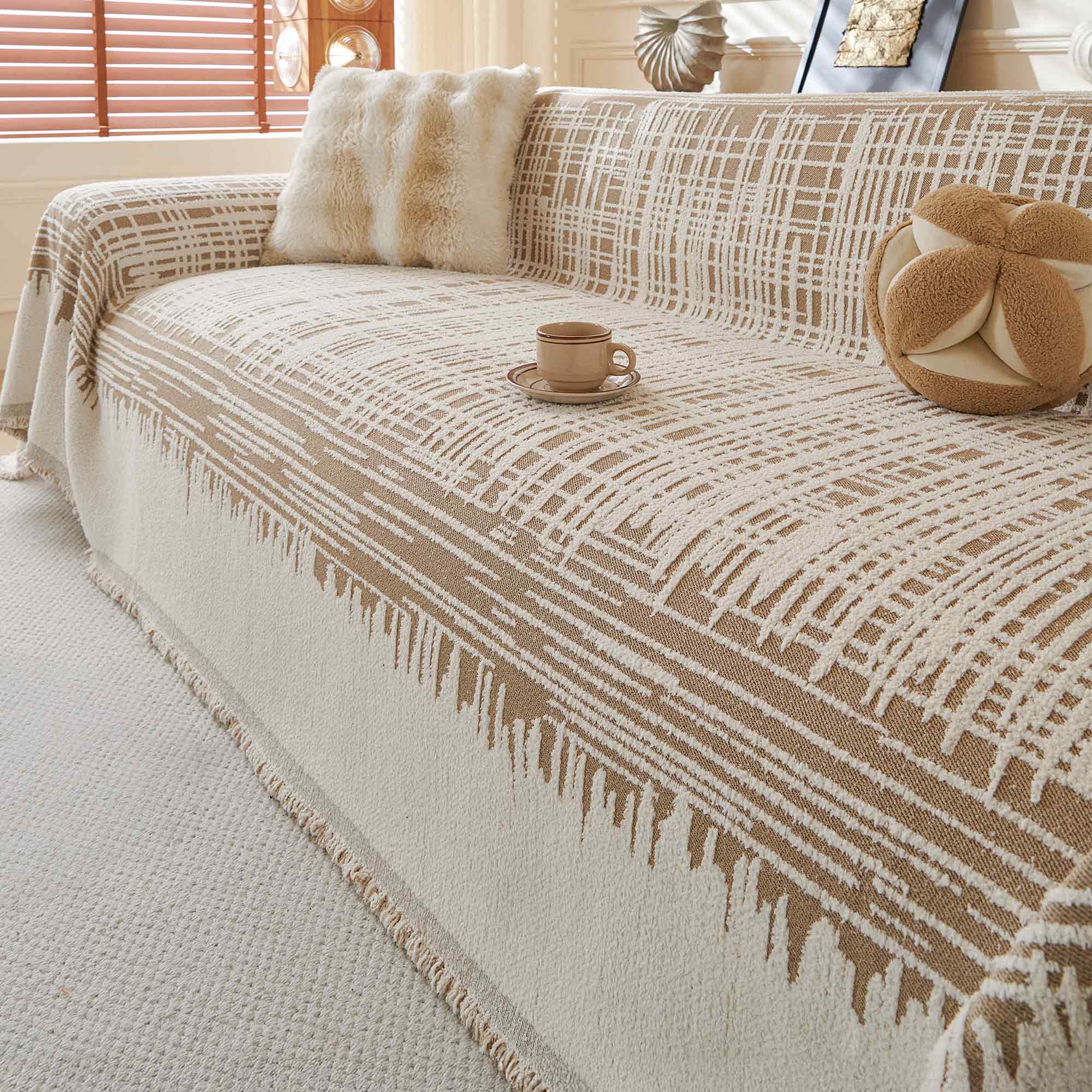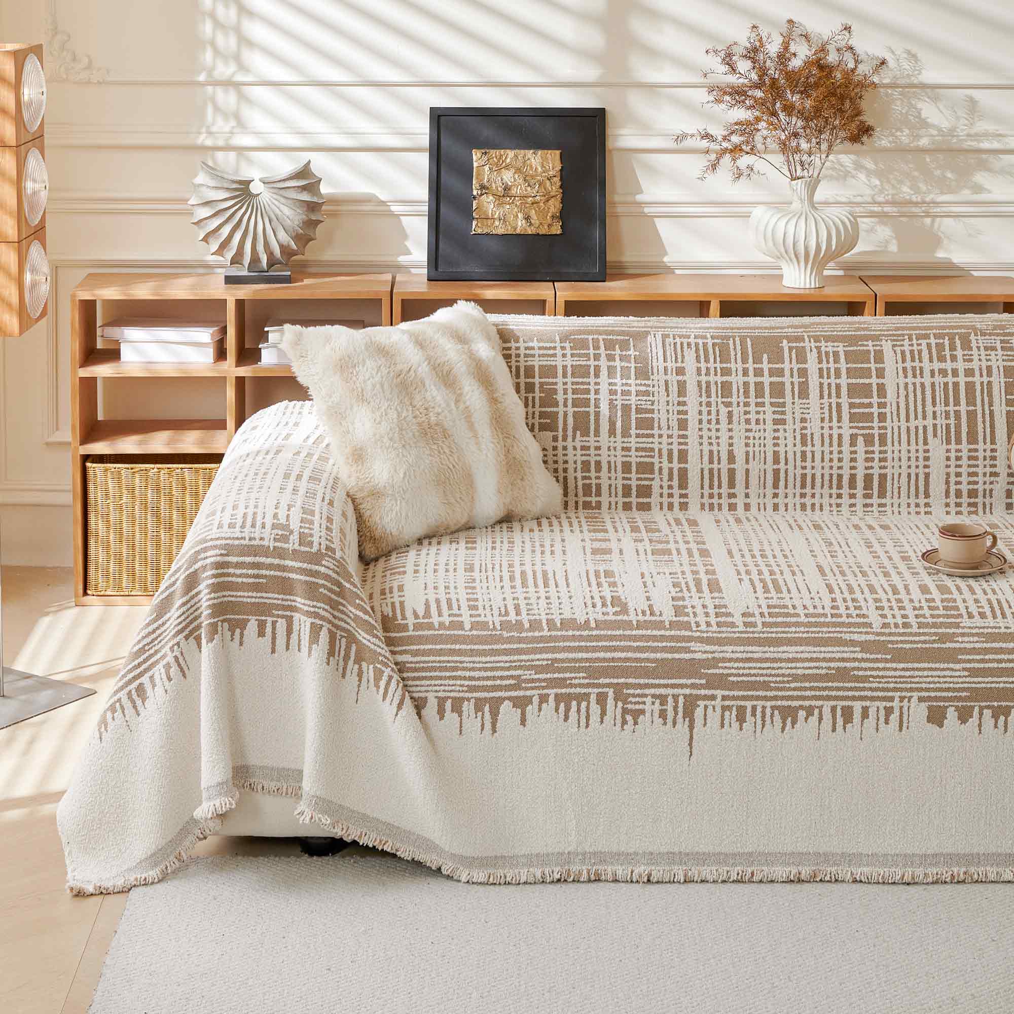 Auffälliges urbanes Gittermuster in Erdtönen, weich, haustierfreundlich, strapazierfähig, minimalistischer, problemloser Sofaschutz, vielseitig einsetzbar