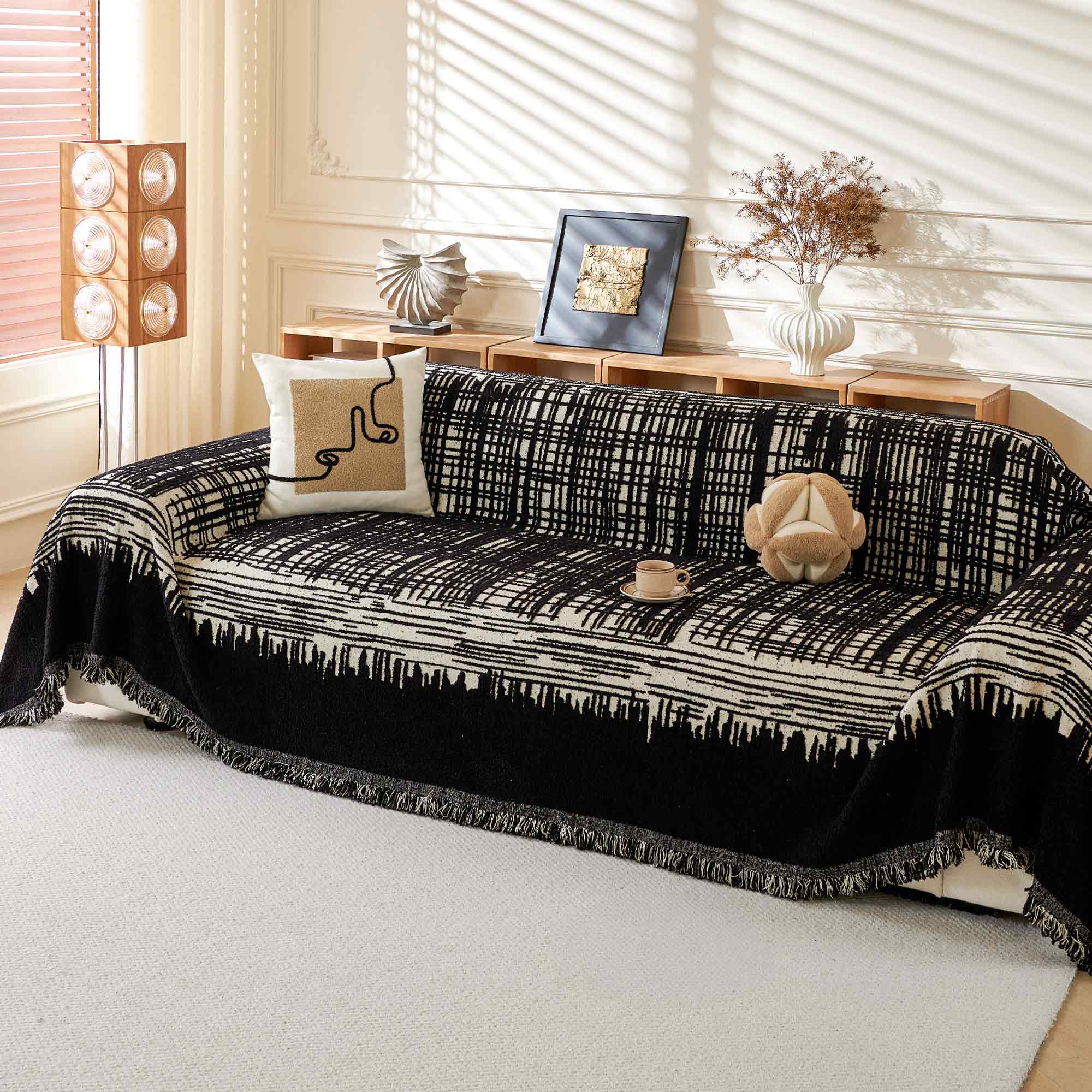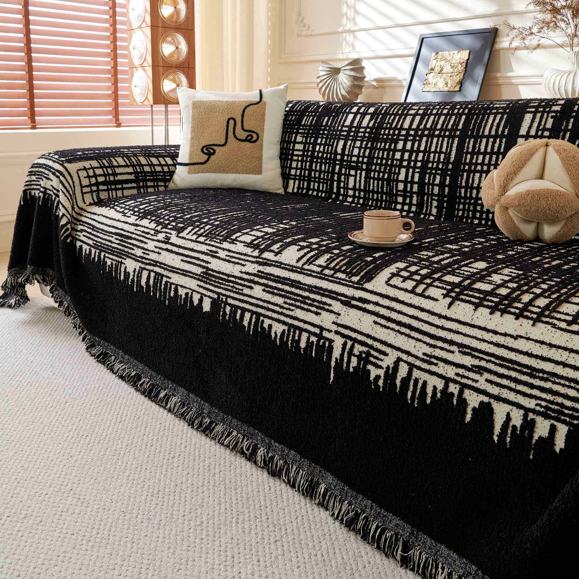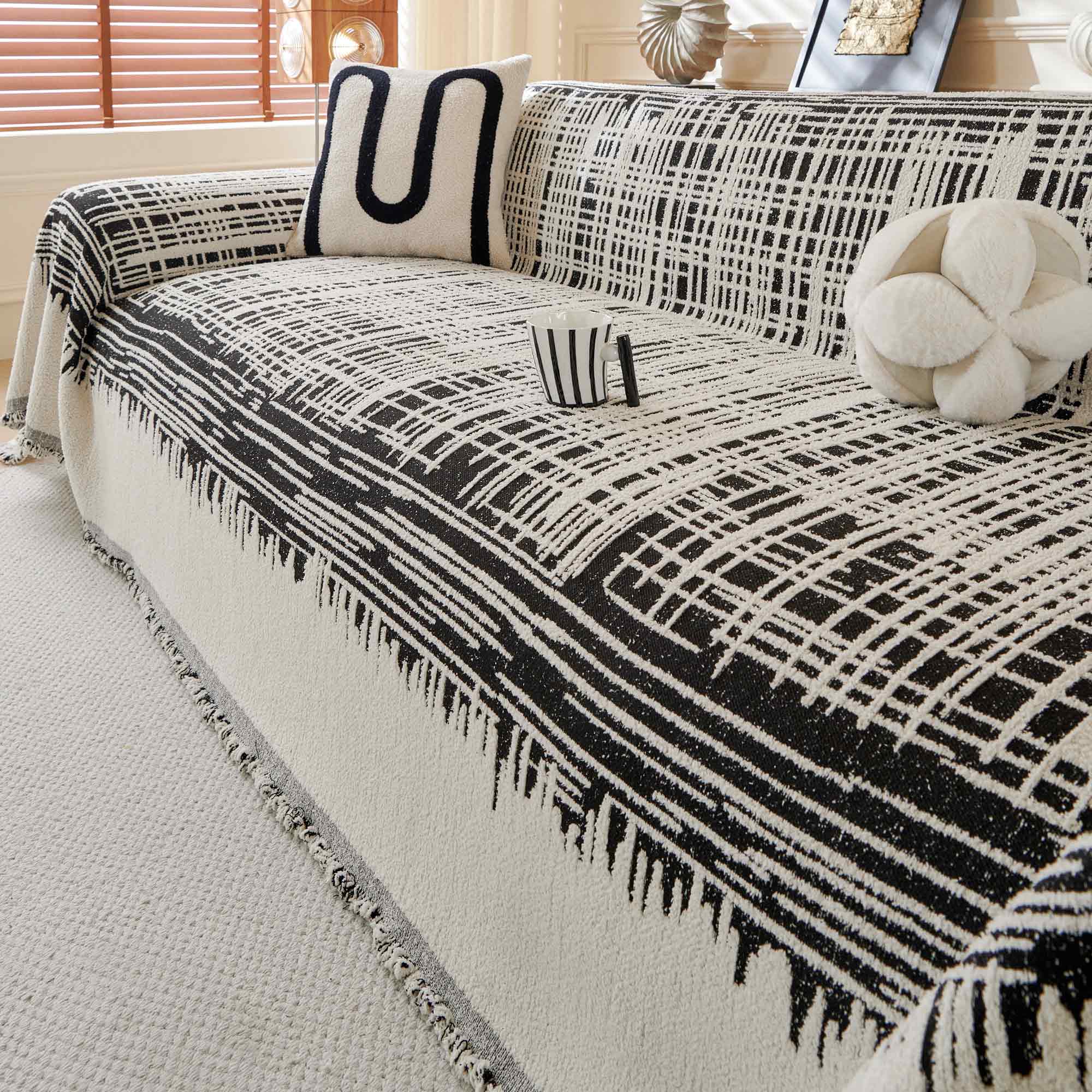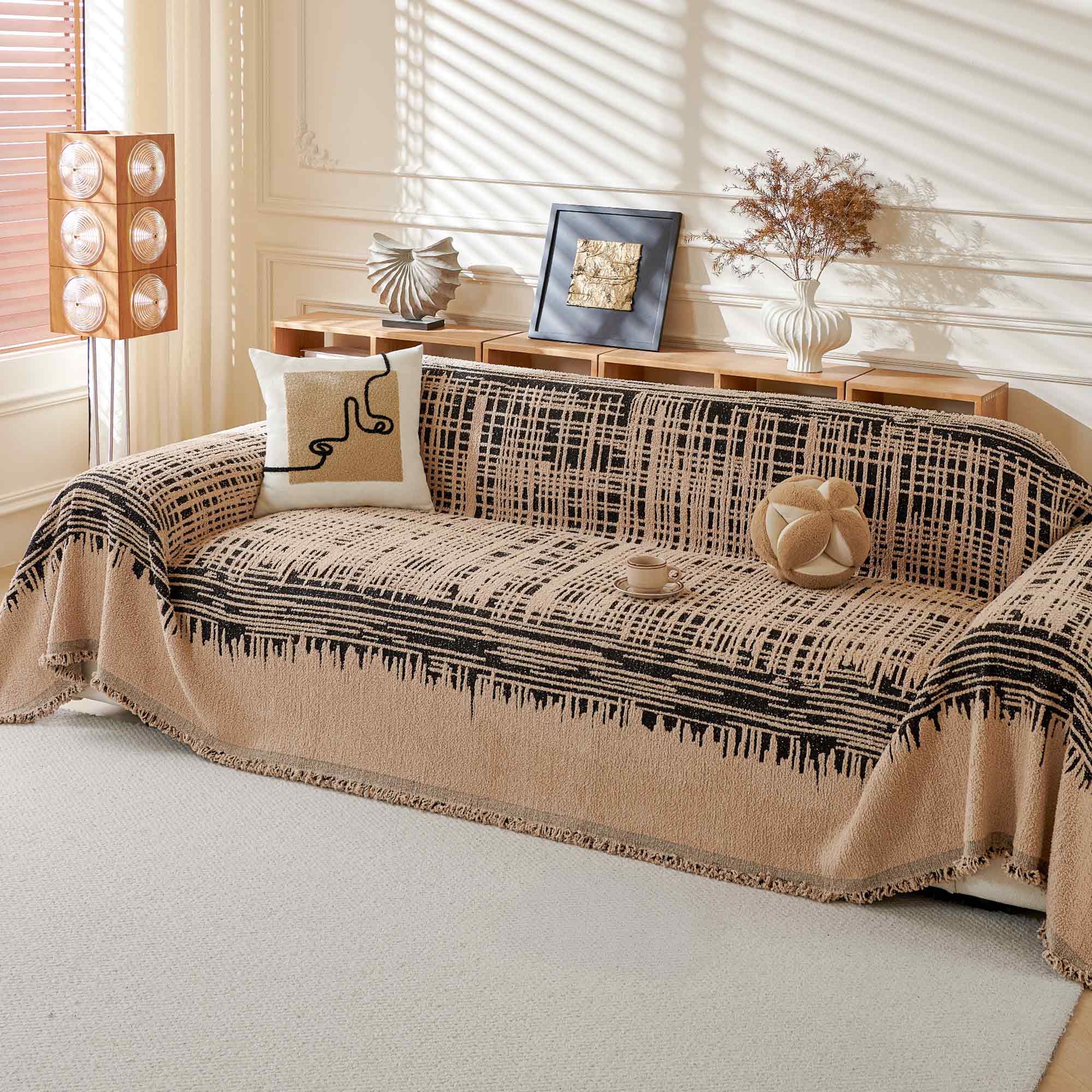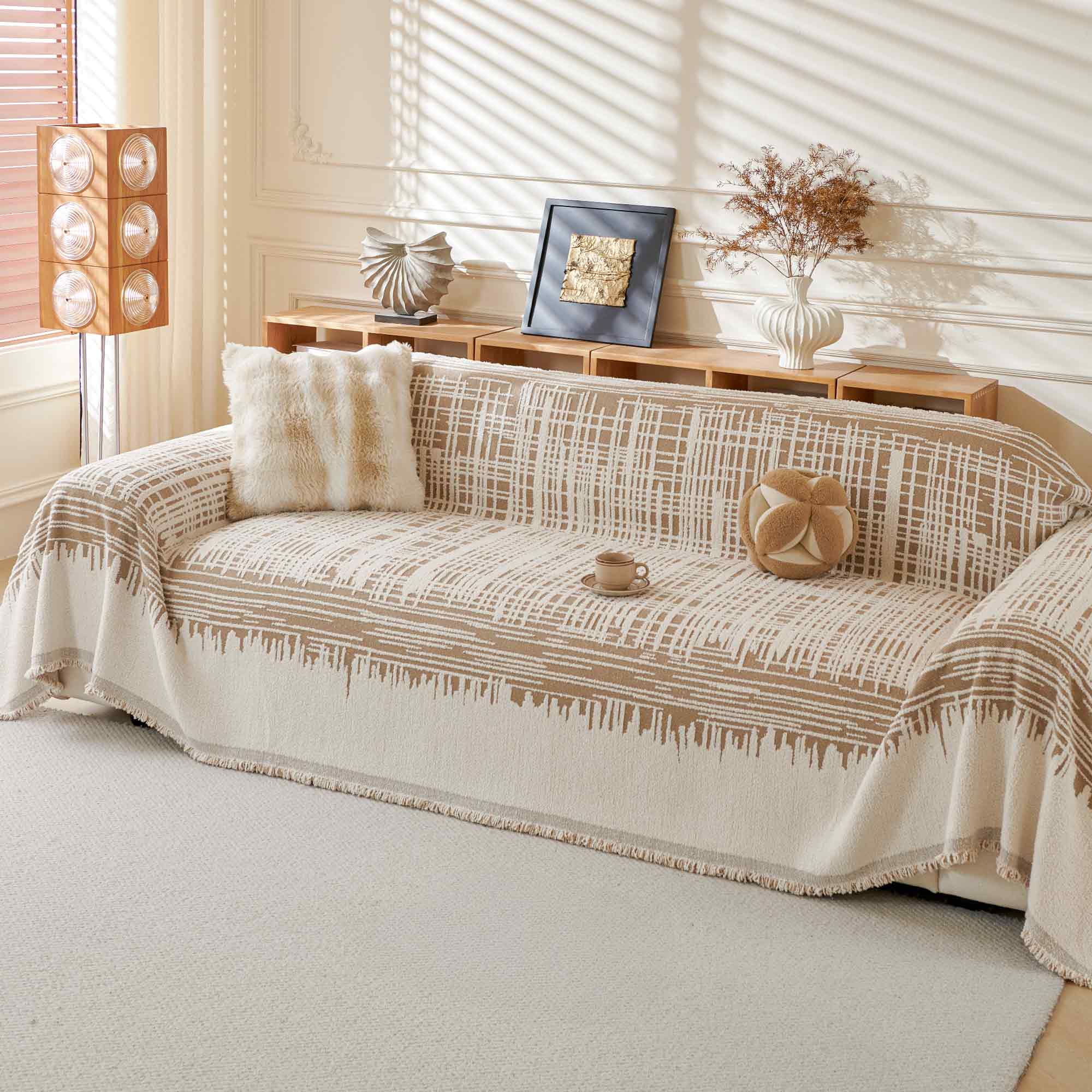 Auffälliges urbanes Gittermuster in Erdtönen, weich, haustierfreundlich, strapazierfähig, minimalistischer, problemloser Sofaschutz, vielseitig einsetzbar
