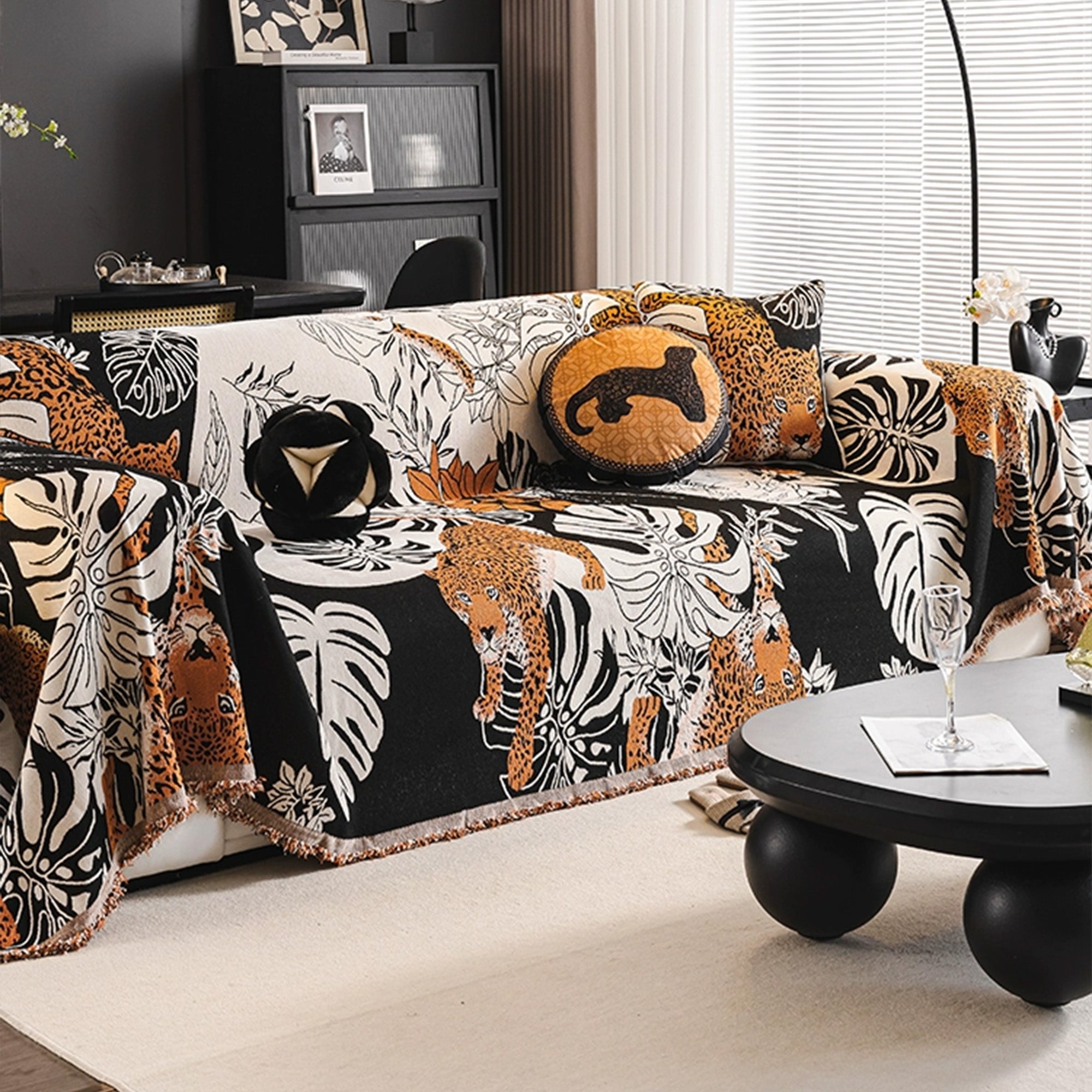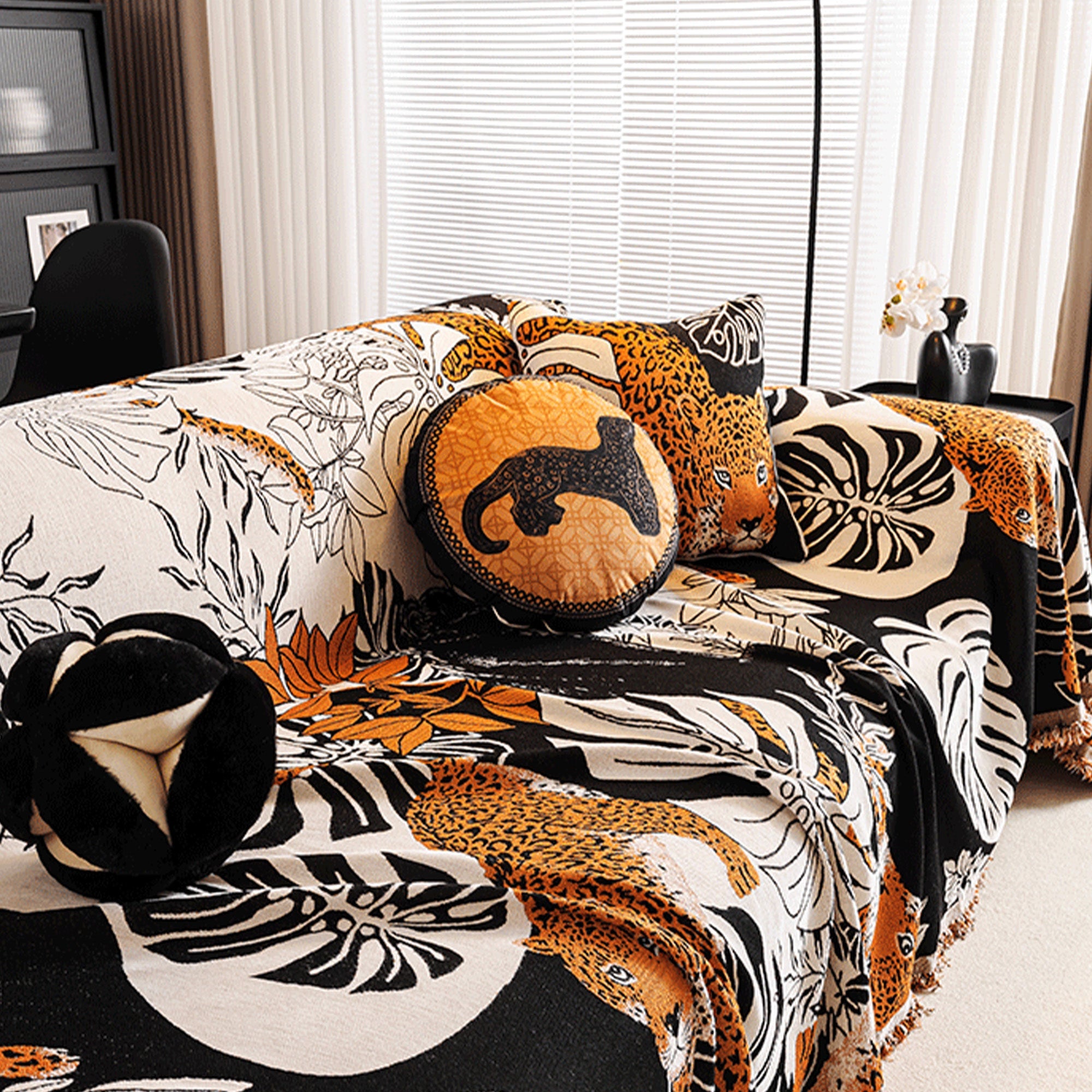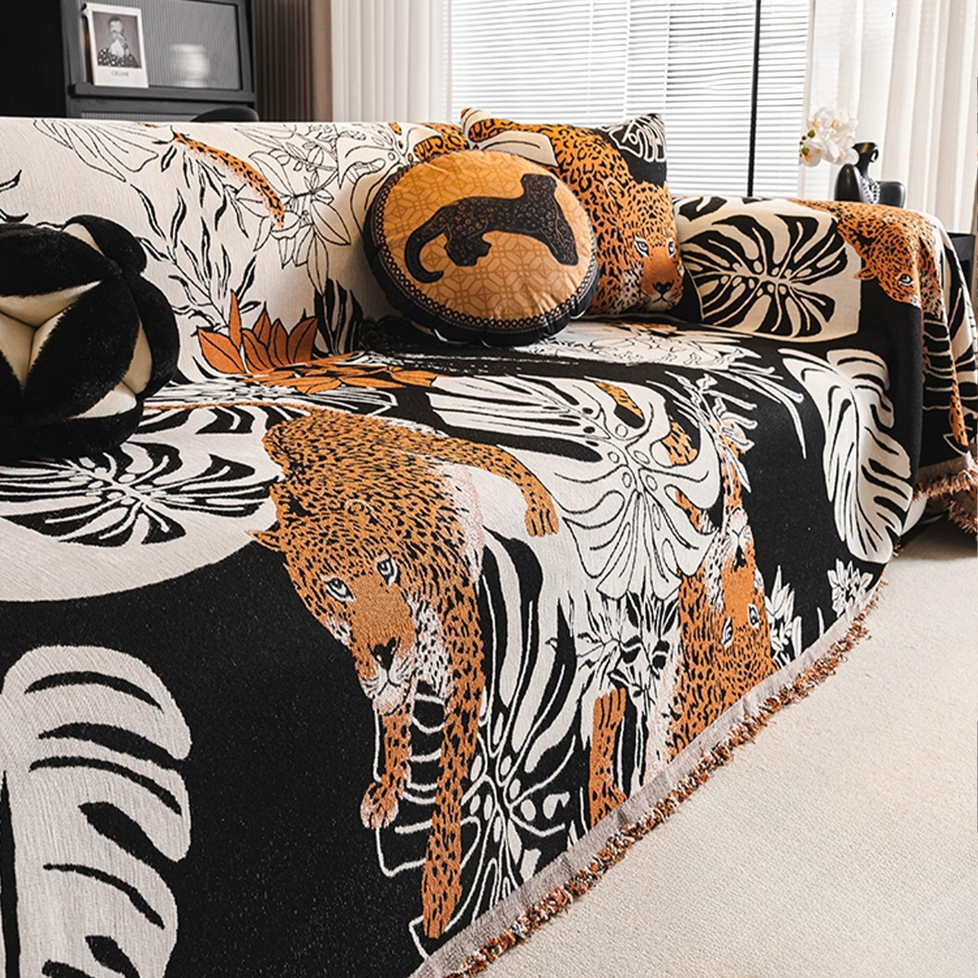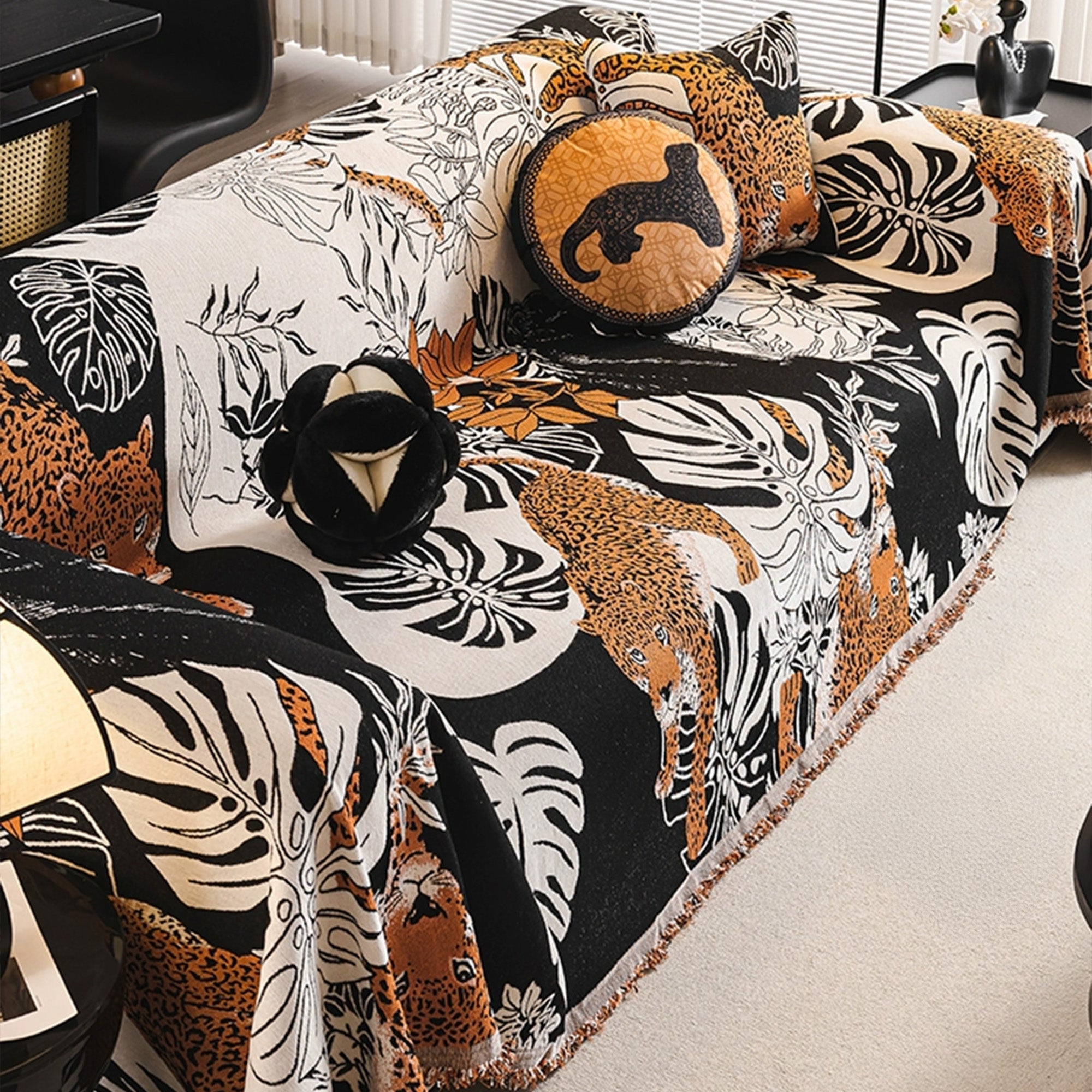 Kratzfester Sofabezug aus Chenille mit Dschungel-Leopardenmuster