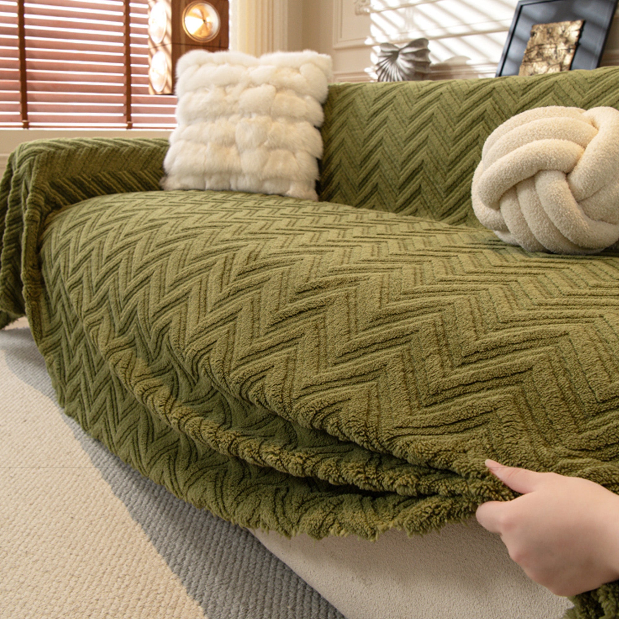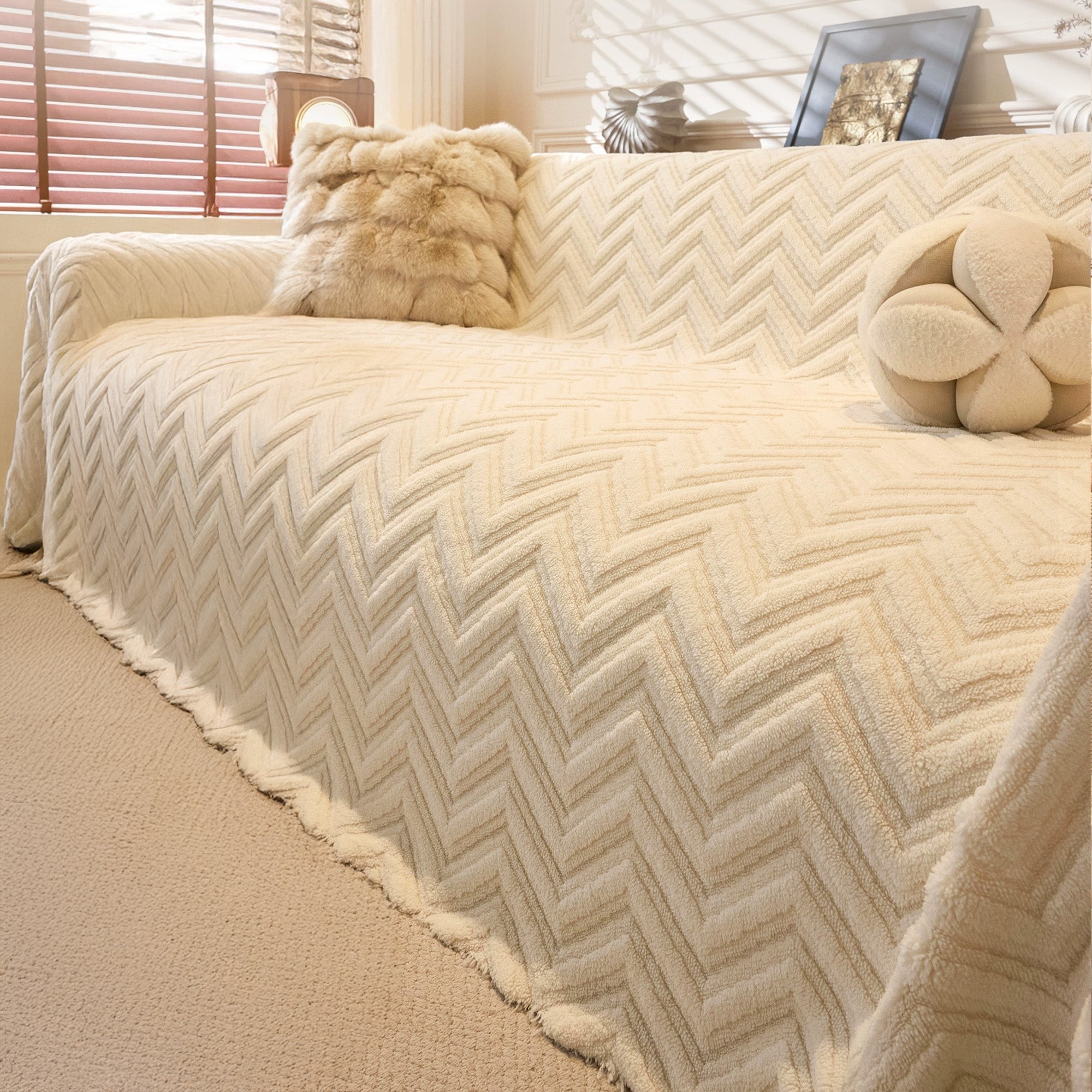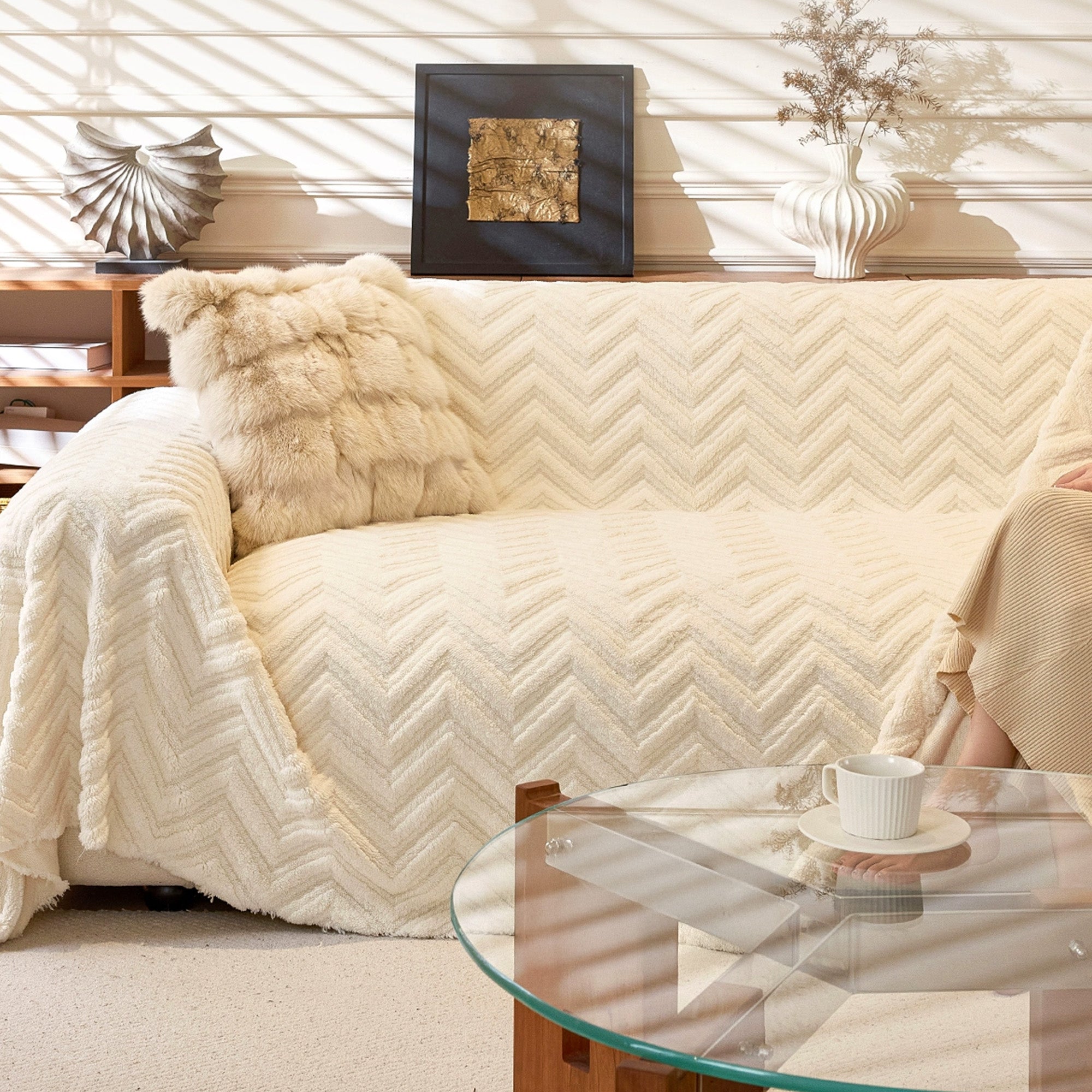 Plüschiger, rutschfester Sofabezug mit Fischgrätenmuster
