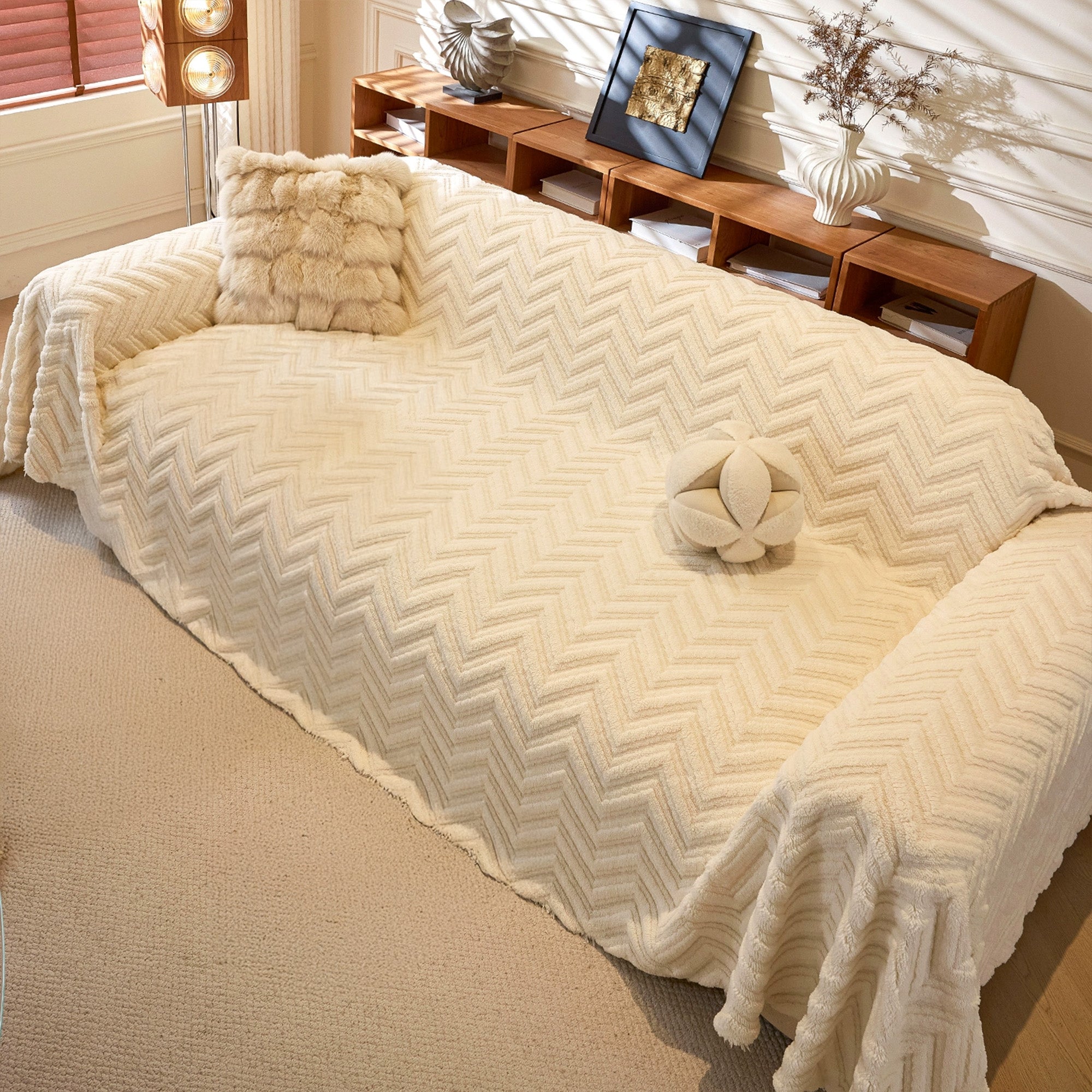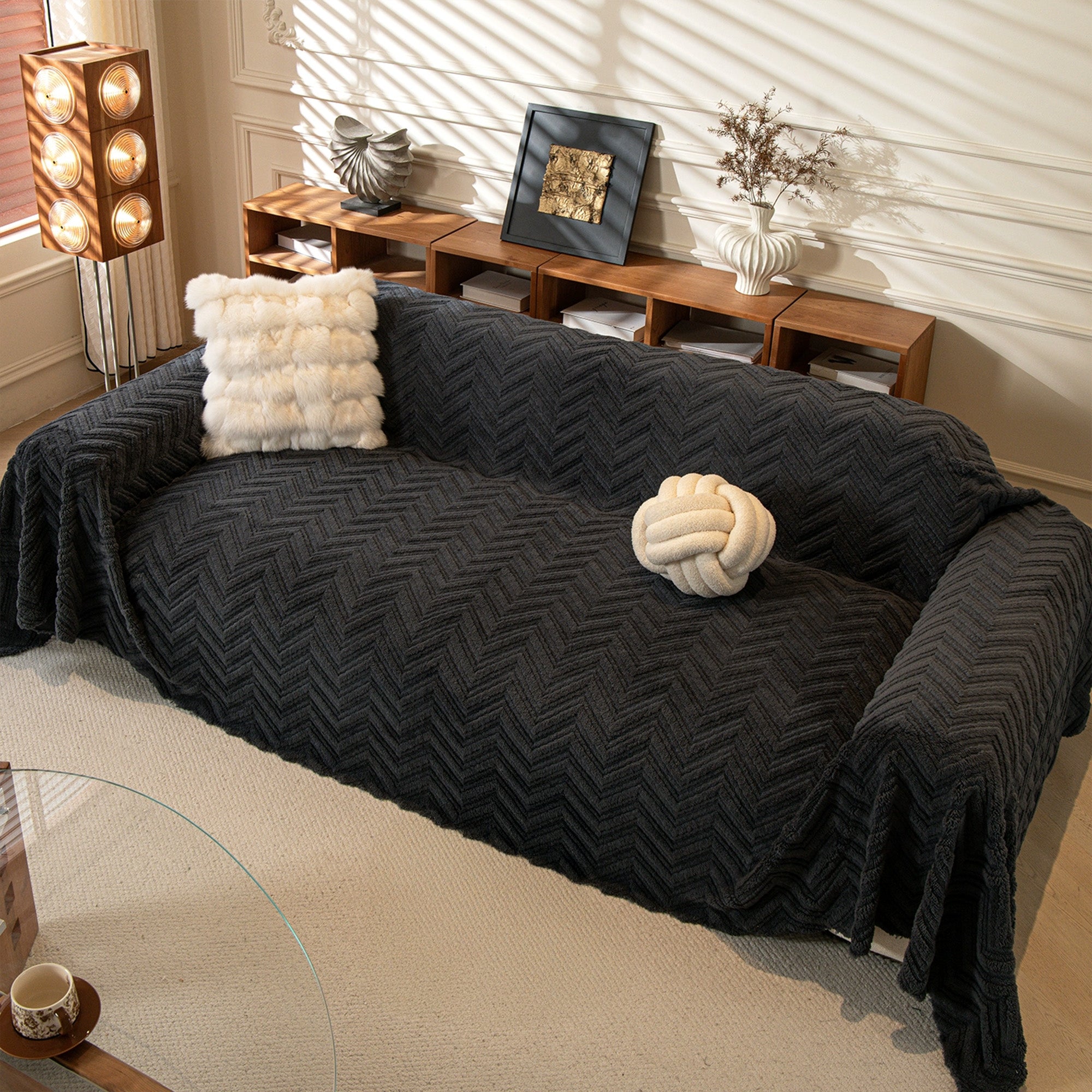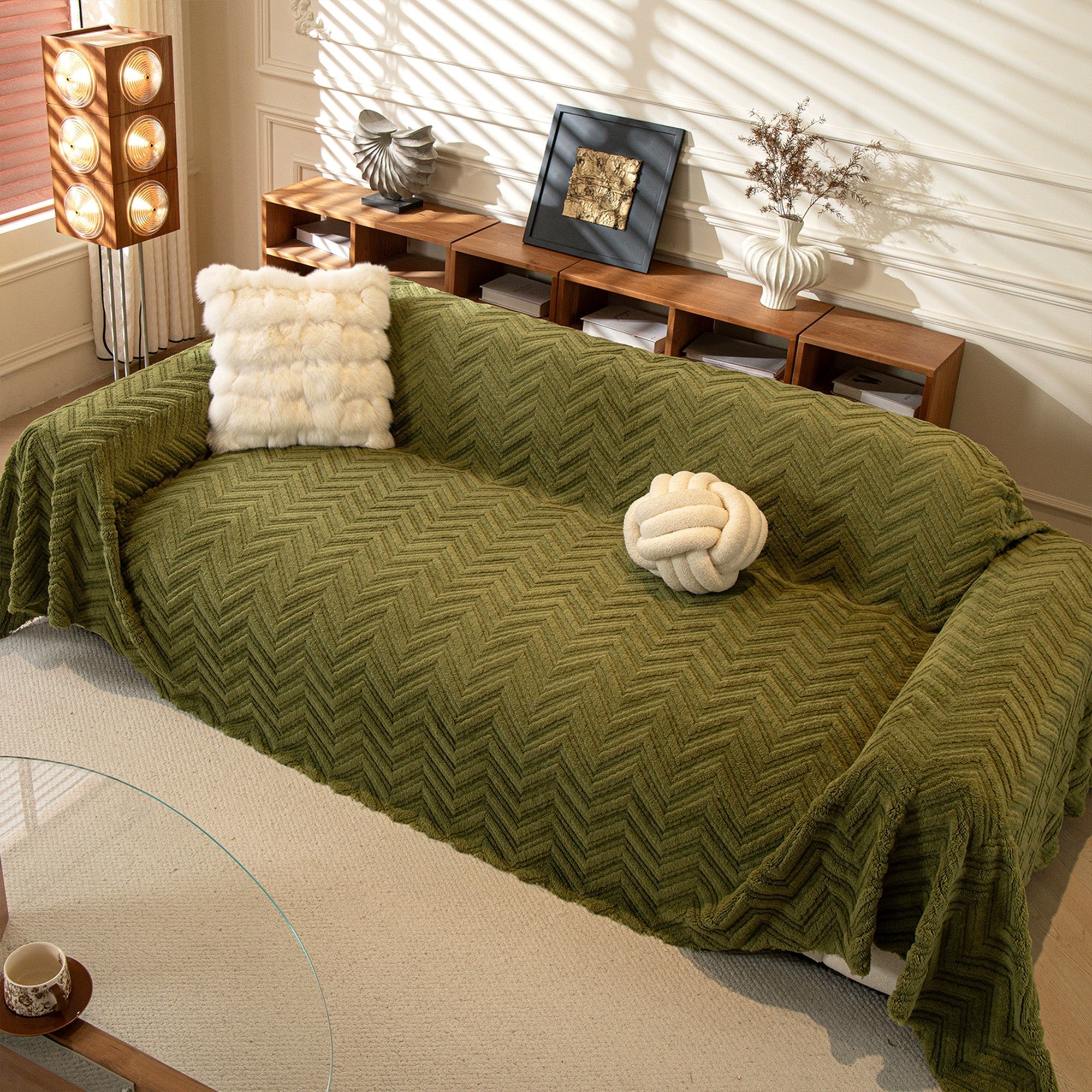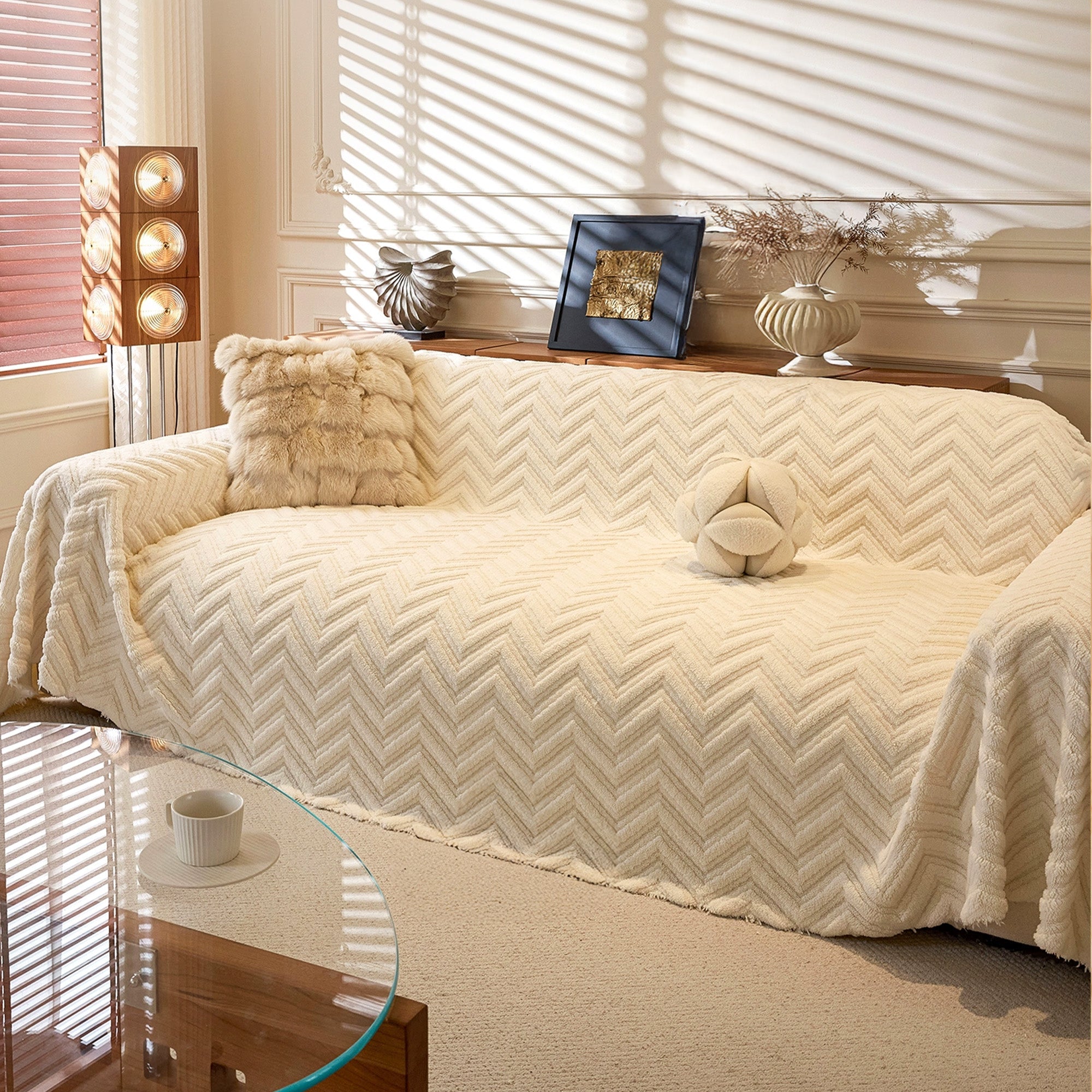 Plüschiger, rutschfester Sofabezug mit Fischgrätenmuster