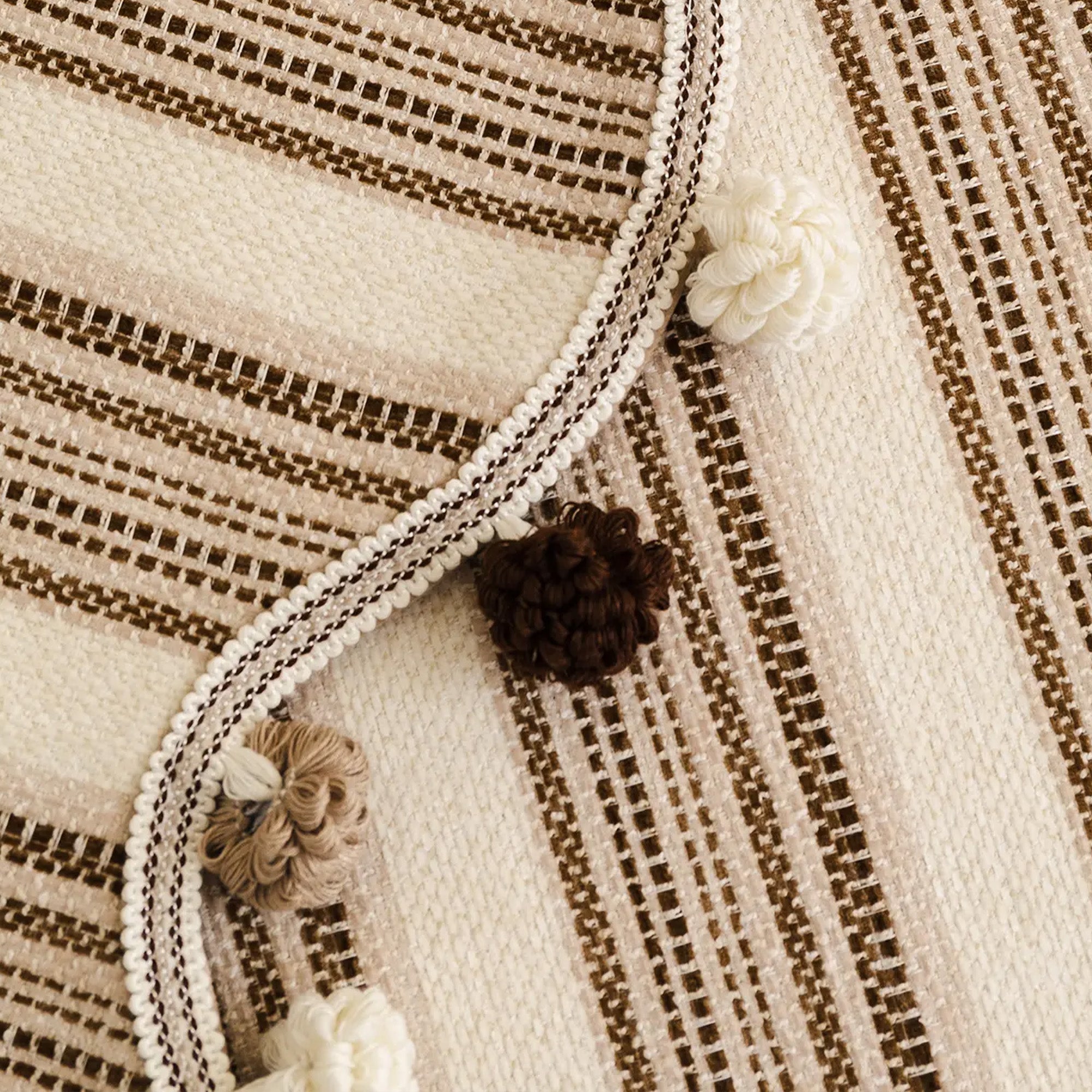 •Klassisches Streifenmuster mit dekorativem Bommelbesatz für einen gemütlichen, stylischen Look.
