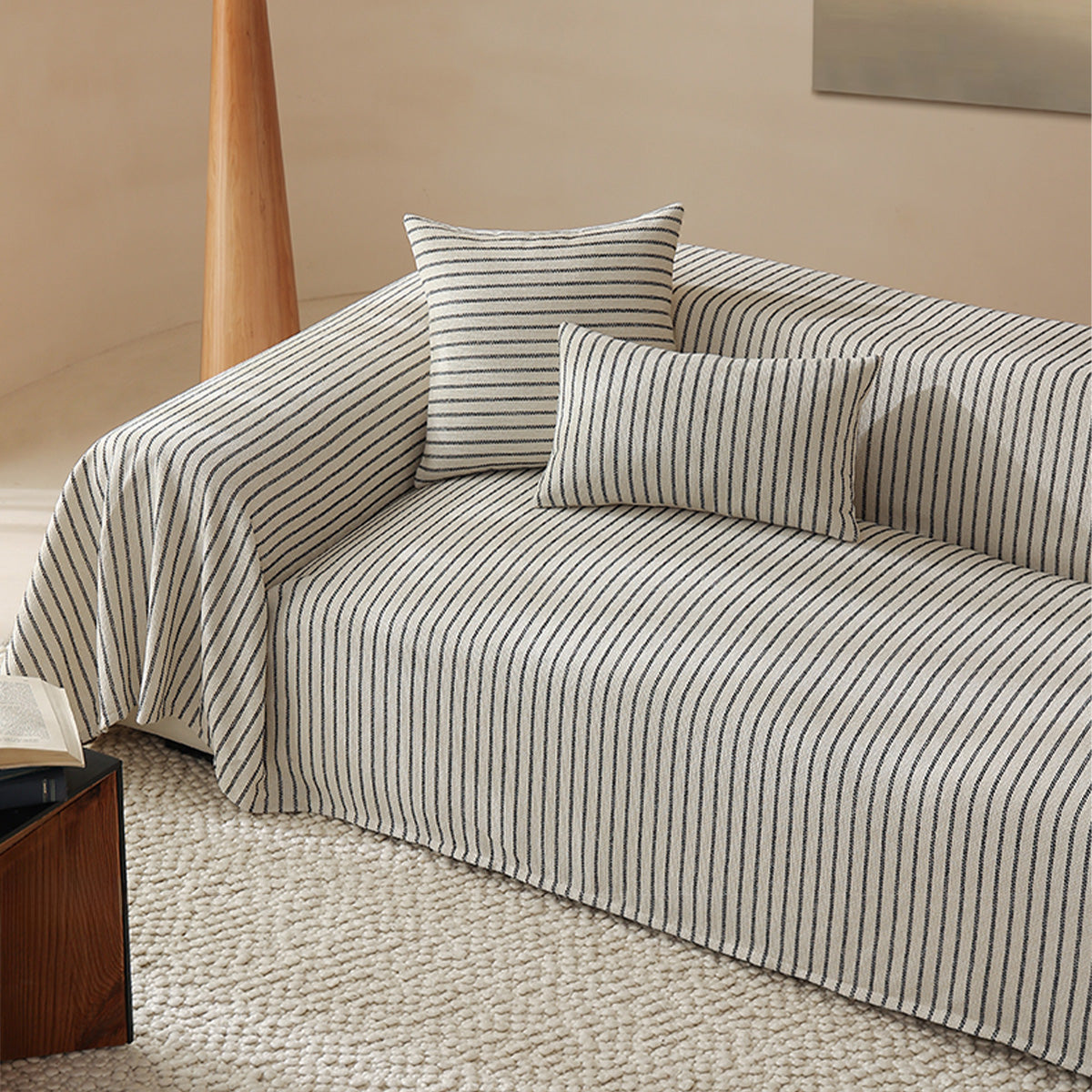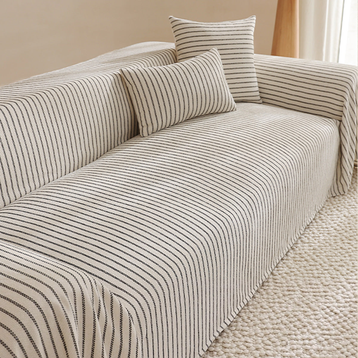 Klassischer, kratzfester Sofabezug in Leinenoptik mit Nadelstreifen