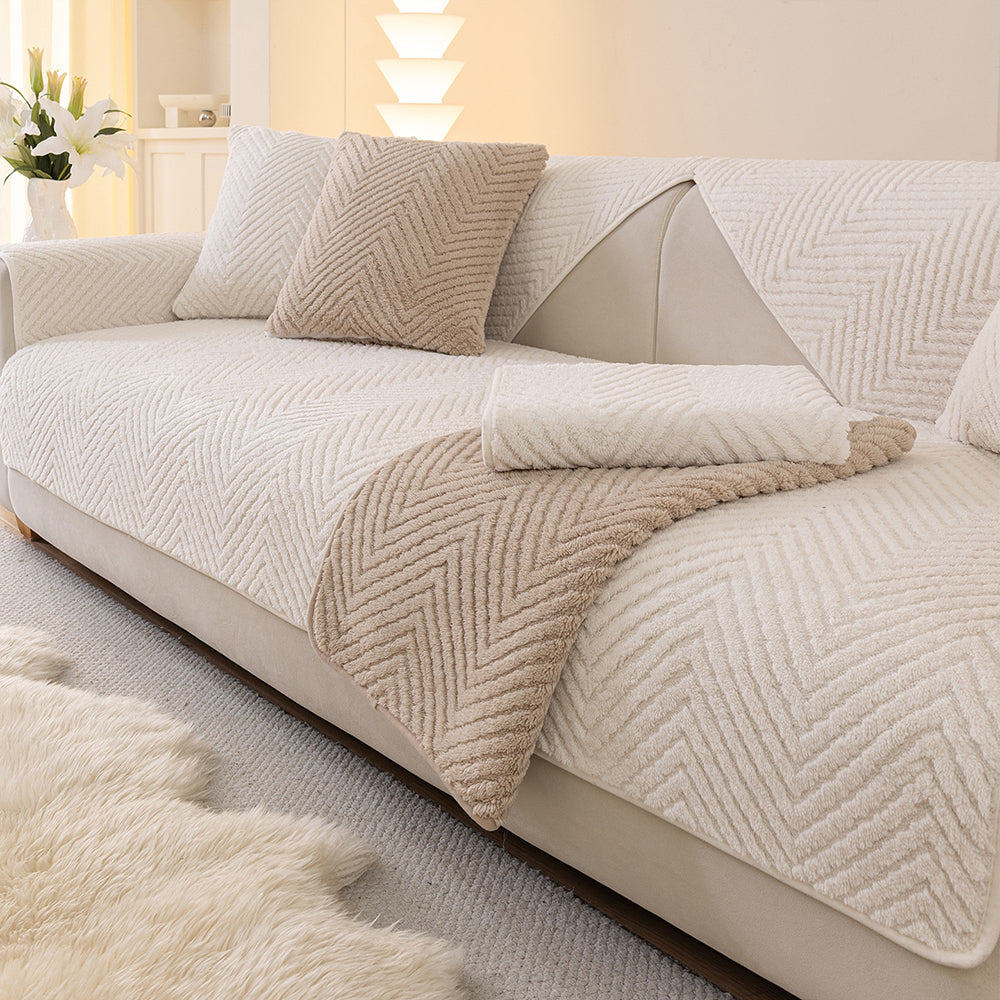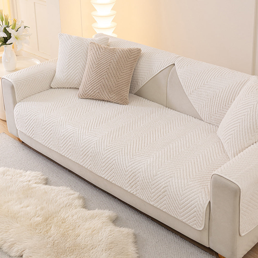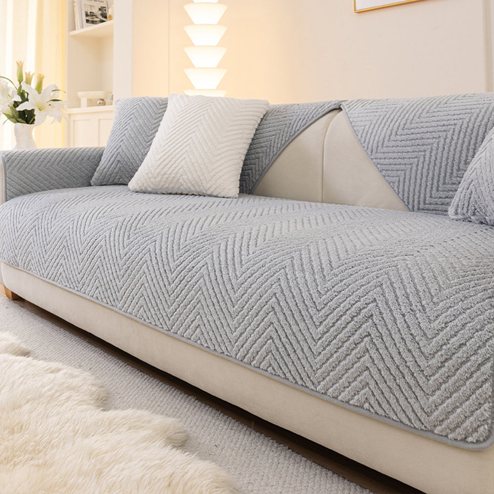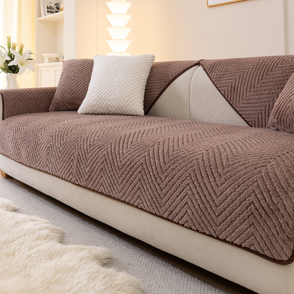 Fischgrät-Plüsch-Sofabezug mit rutschfester Oberfläche