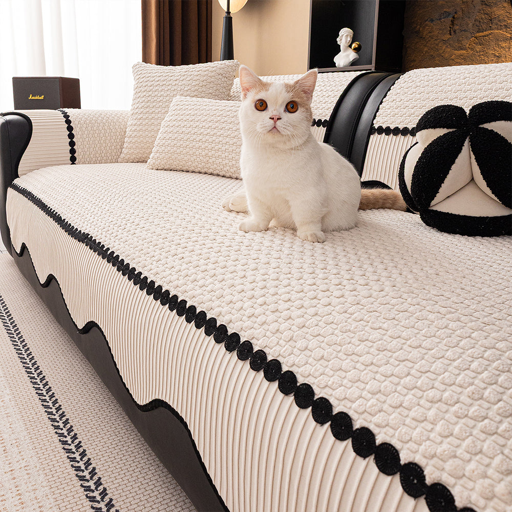 Verleihen Sie Ihrem Wohnzimmer mit unserem rutschfesten Sofabezug „Modern Corduroy Wave“ moderne Textur und Gemütlichkeit. Die luxuriöse, dicke Cord-Oberfläche mit elegantem Wellenrand vereint zeitgenössische Eleganz mit behaglichem Komfort. Die dezente Wabenstruktur sorgt für optische Tiefe, während die satten Farbtöne zu jeder modernen oder klassischen Einrichtung passen. Gefertigt aus hochwertigem Cordstoff, bietet der Bezug ein weiches und dennoch strapazierfähiges Tragegefühl – perfekt für Herbst und Winter. Die rutschfeste Unterseite garantiert sicheren Halt und macht ihn ideal für Haushalte mit Kindern oder Haustieren.