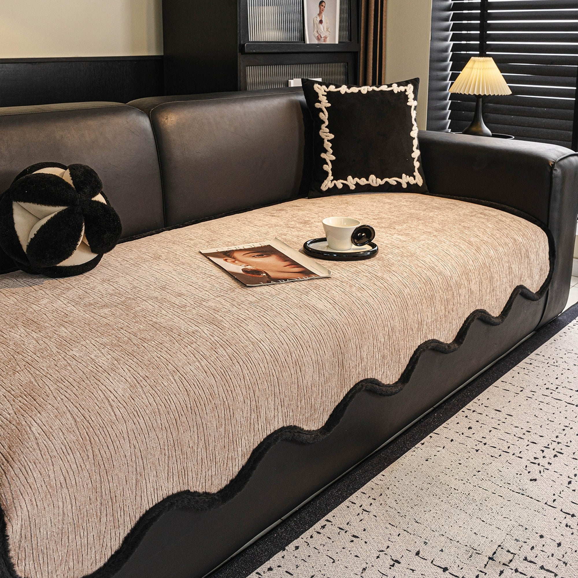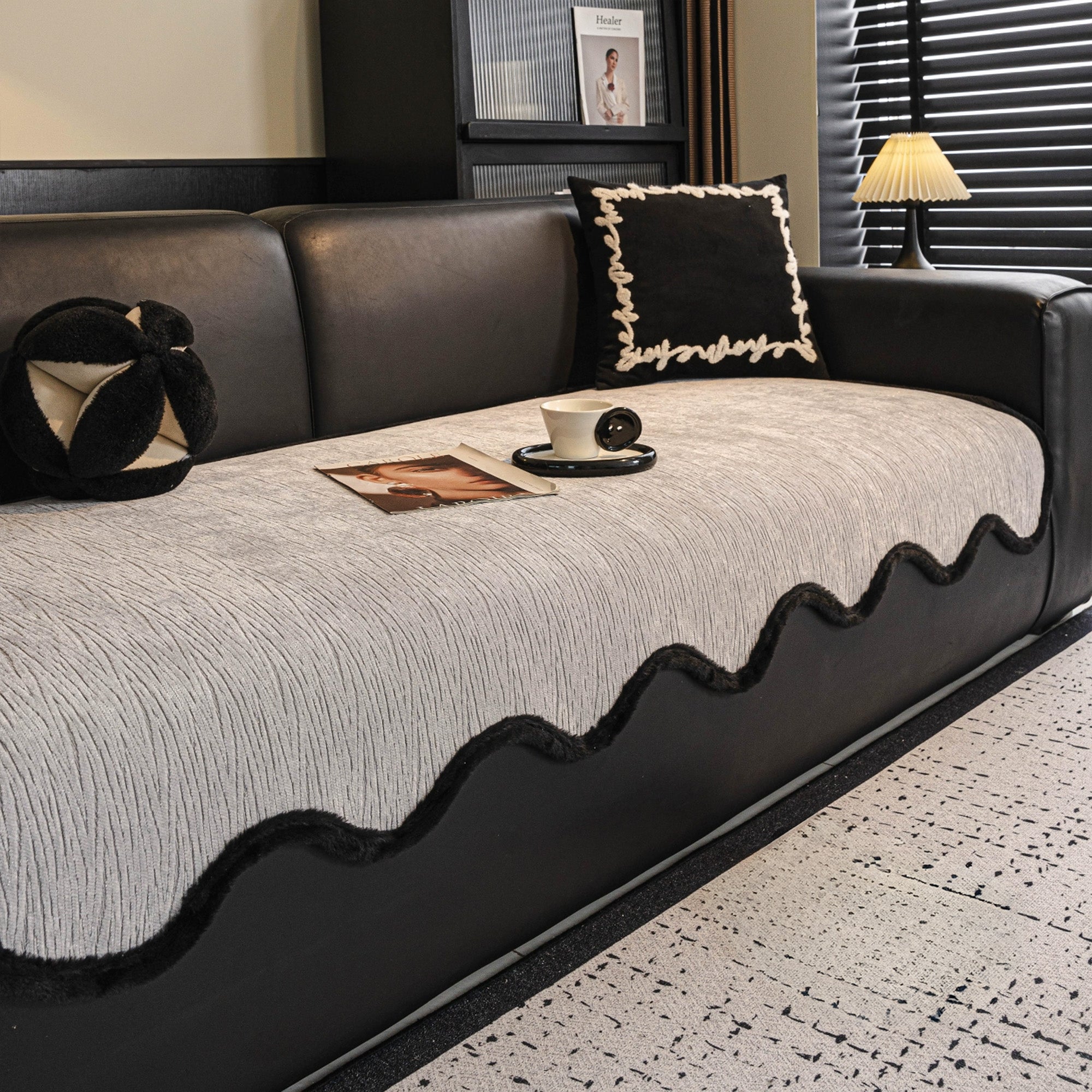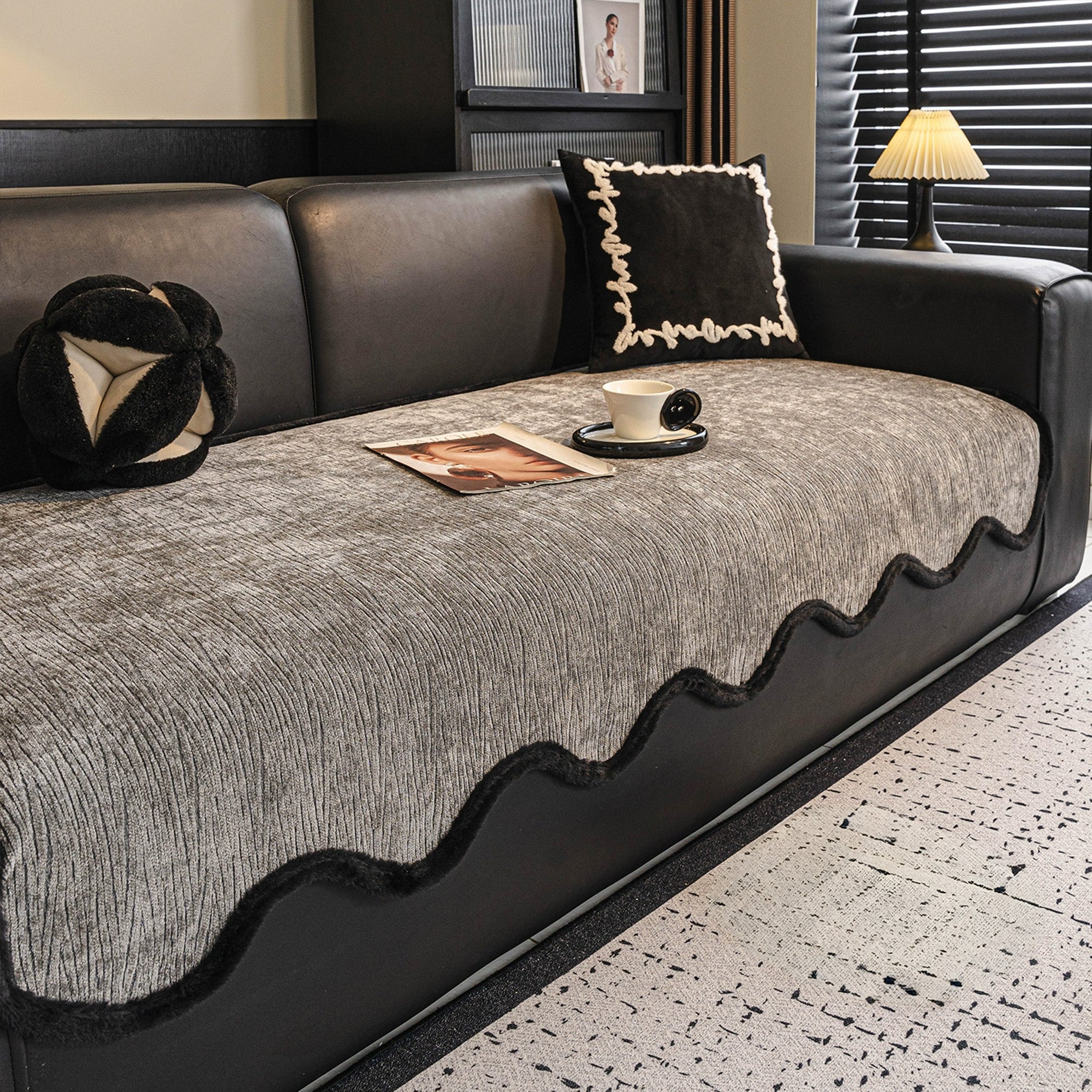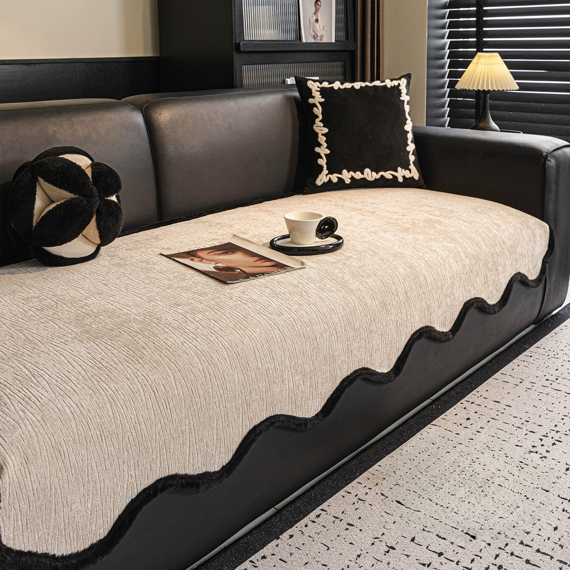 Werten Sie Ihren Wohnraum mit dem rutschfesten Sofabezug Modern Wave Chenille auf – eine perfekte Kombination aus Stil, Haltbarkeit und Schutz. Mit seiner luxuriösen Wellenstruktur und der kräftigen schwarzen Kante verleiht dieser Bezug Ihrem Sofa zeitgenössische Eleganz und bietet gleichzeitig zuverlässige Alltagstauglichkeit.