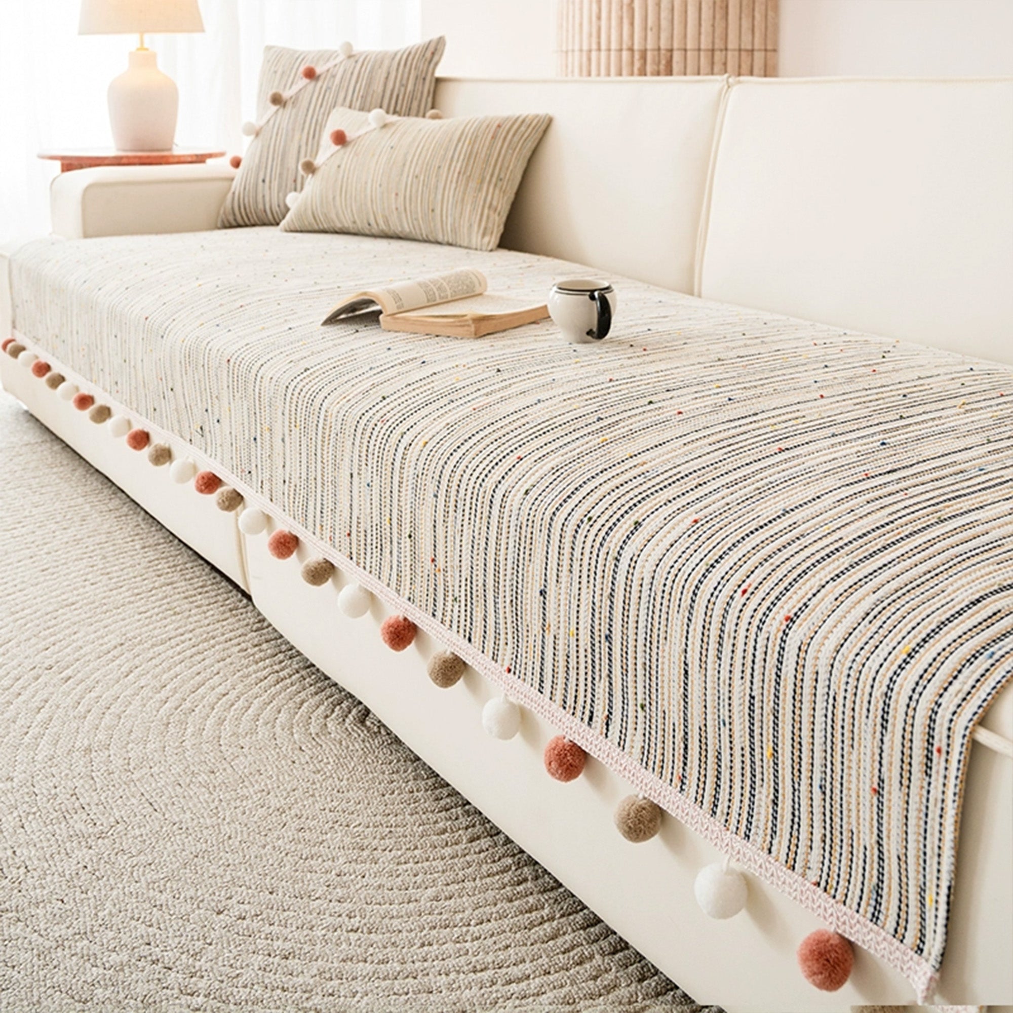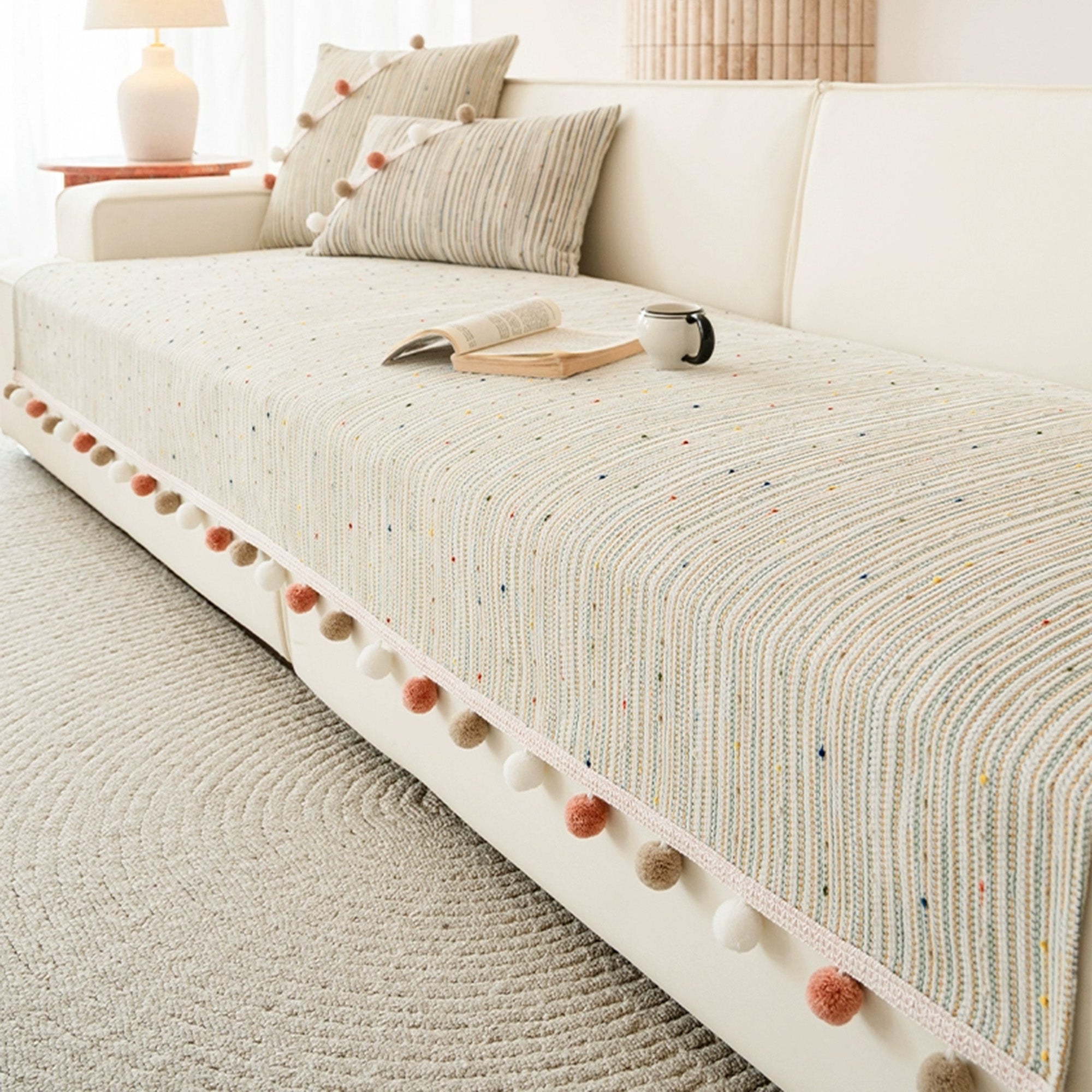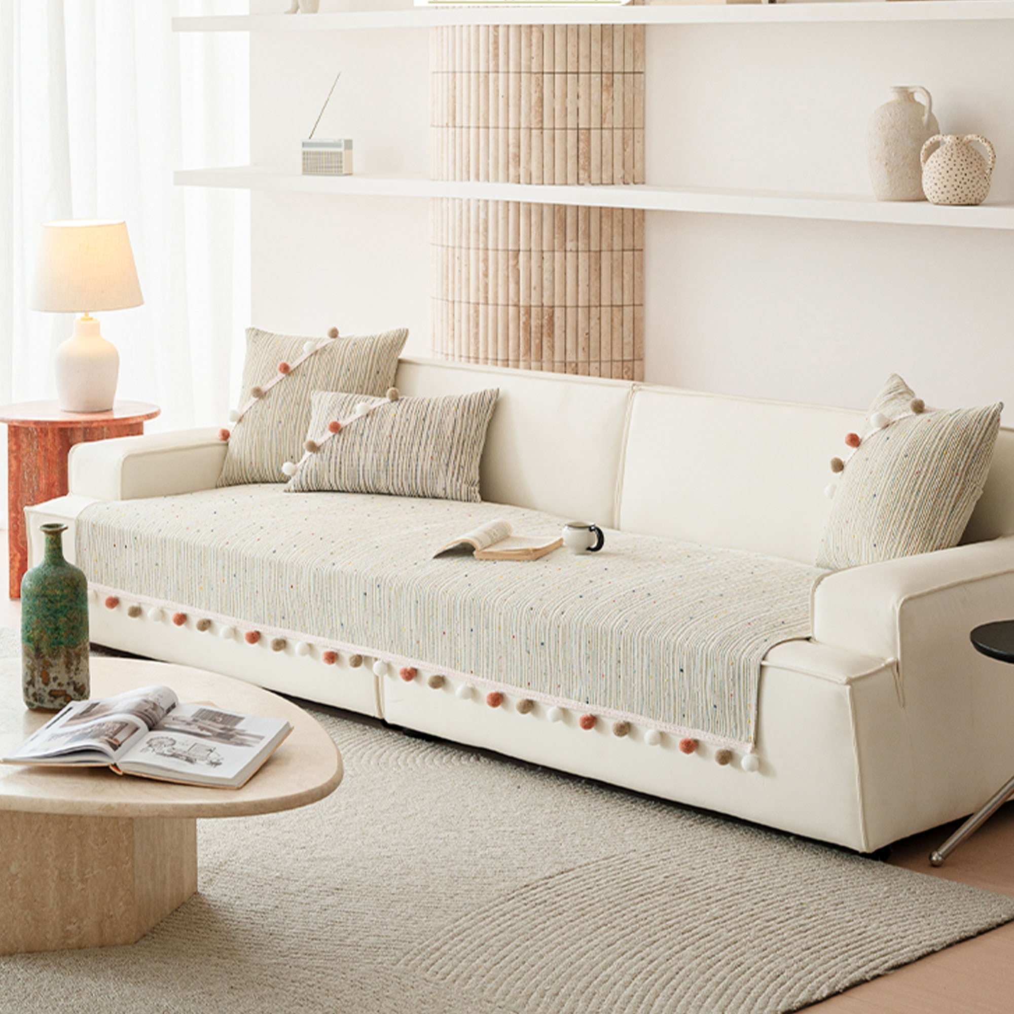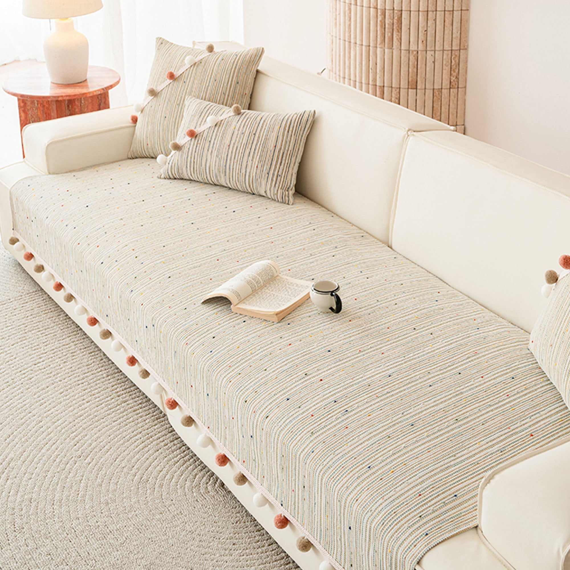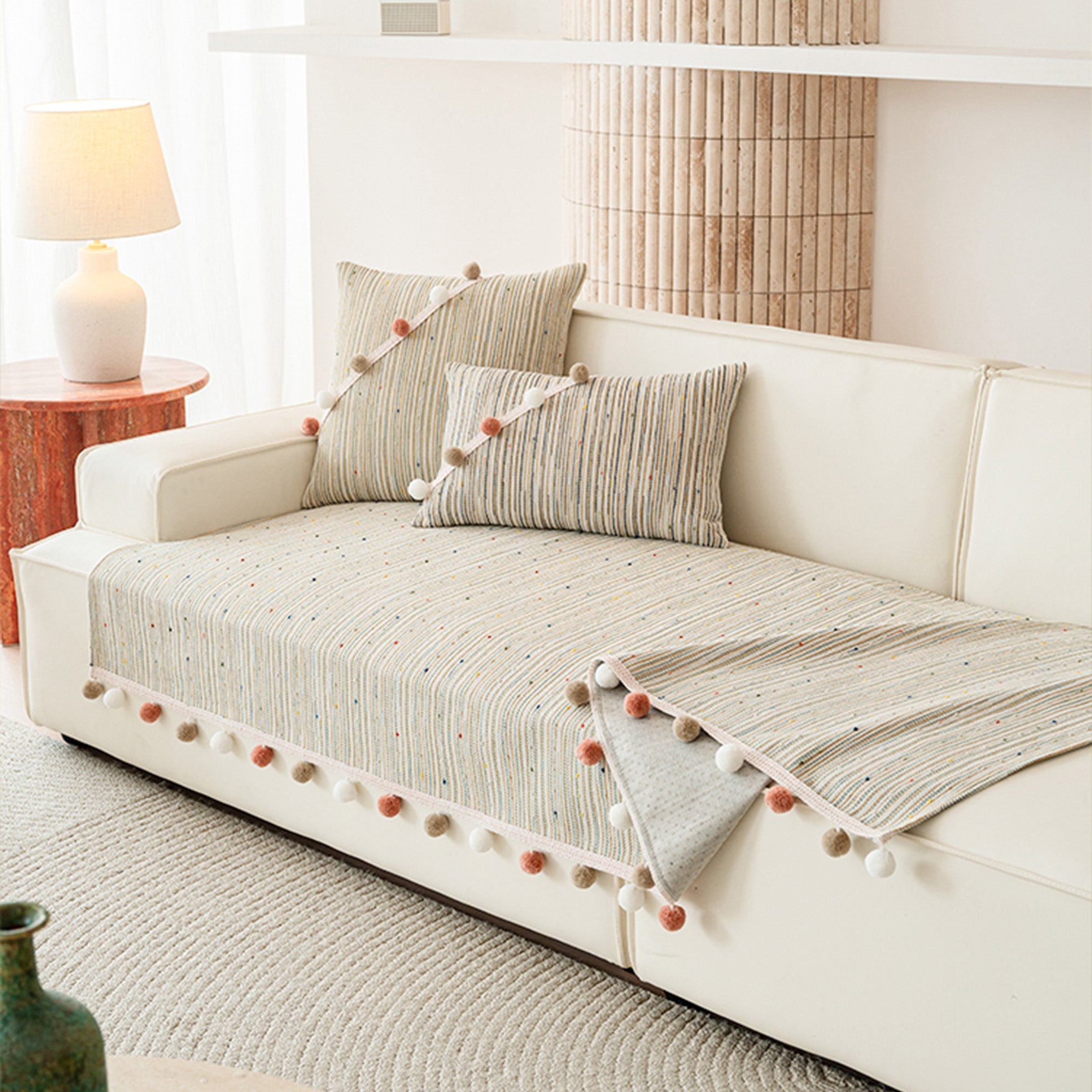 Verleihen Sie Ihrem Zuhause mit unserem rutschfesten Sofabezug Playful Dots Chenille einen Hauch verspielter Eleganz und gemütlichen Komfort. Mit dezent gepunkteter Textur und farbenfrohem Bommelrand bringt dieser Bezug Fröhlichkeit und Charme in jeden Raum und sorgt gleichzeitig für Eleganz. Hergestellt aus strapazierfähigem, haustierfreundlichem Chenille-Stoff, wertet er nicht nur Ihre Einrichtung auf, sondern bietet auch zuverlässigen Schutz vor täglicher Abnutzung, Kratzern und Tierhaaren.