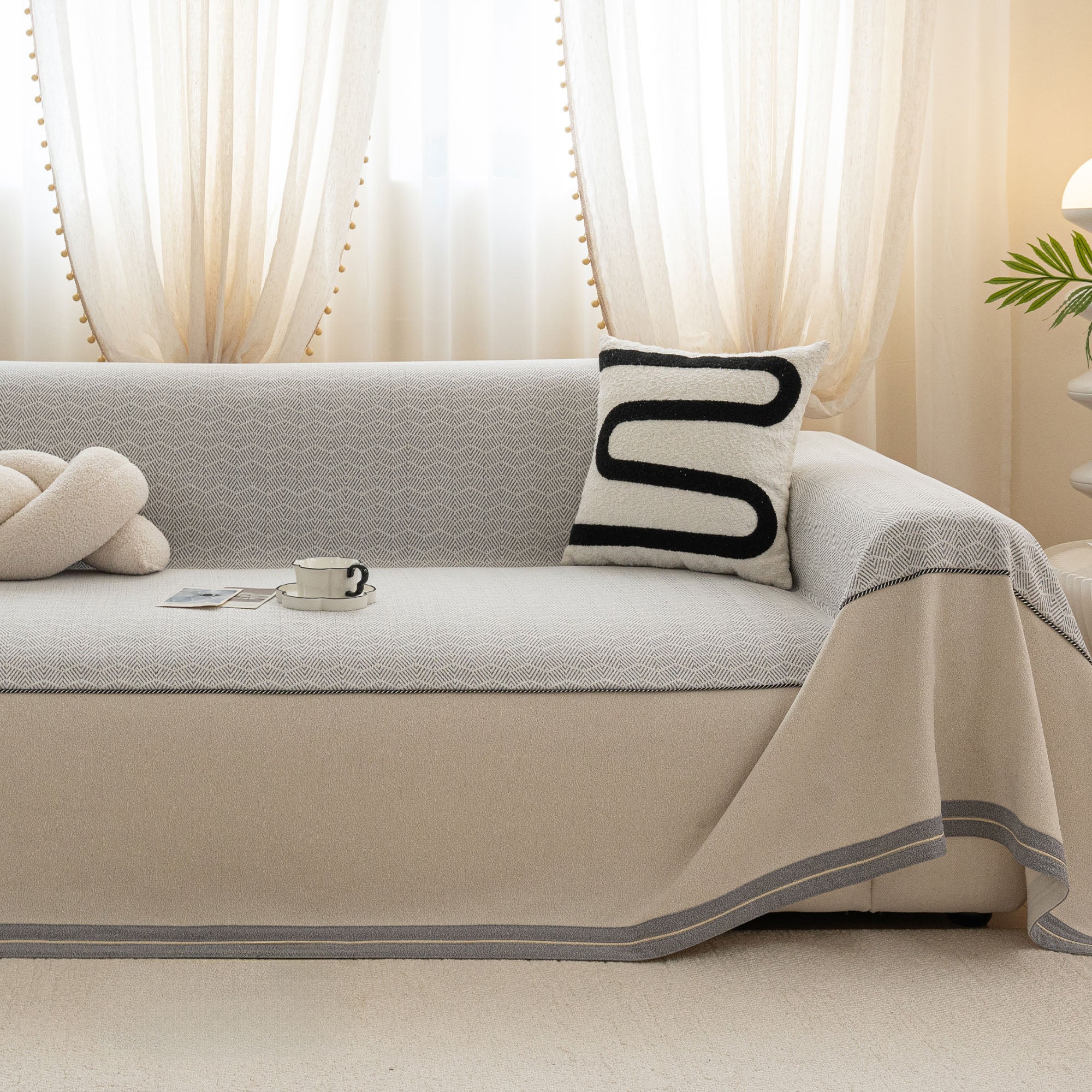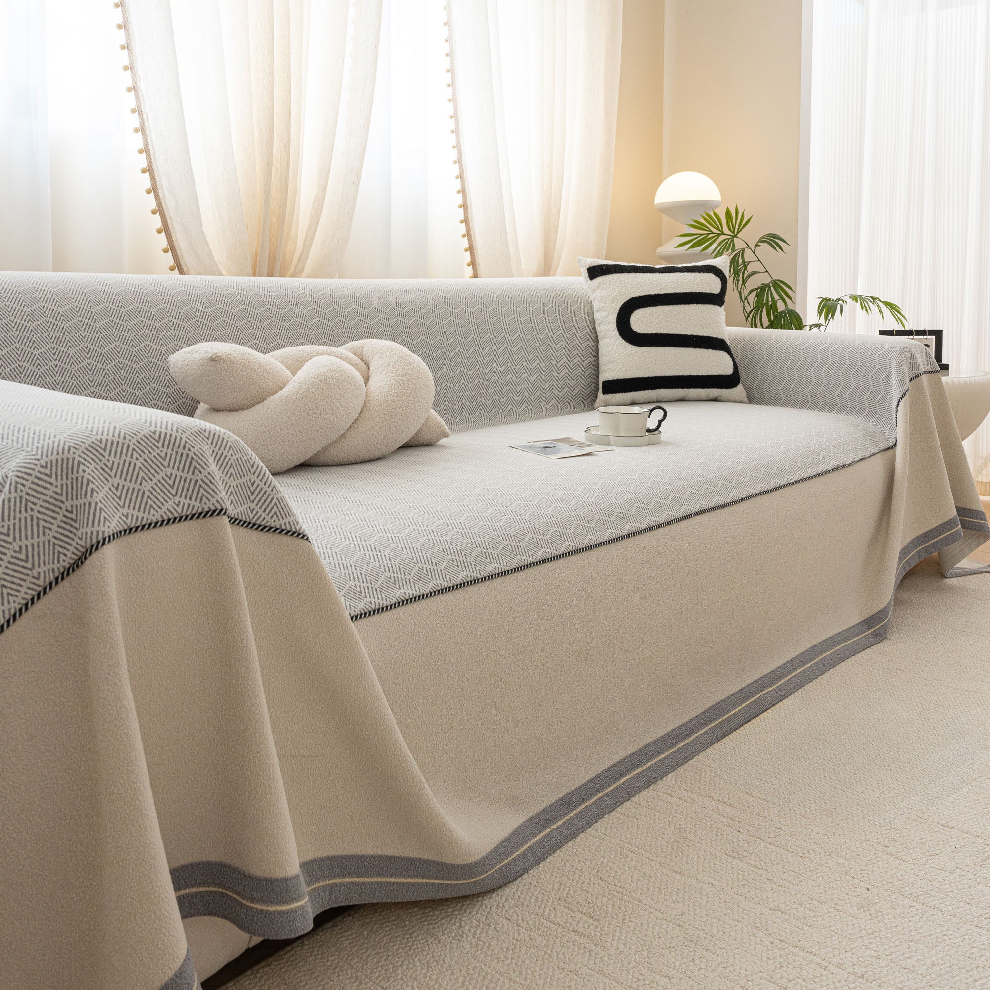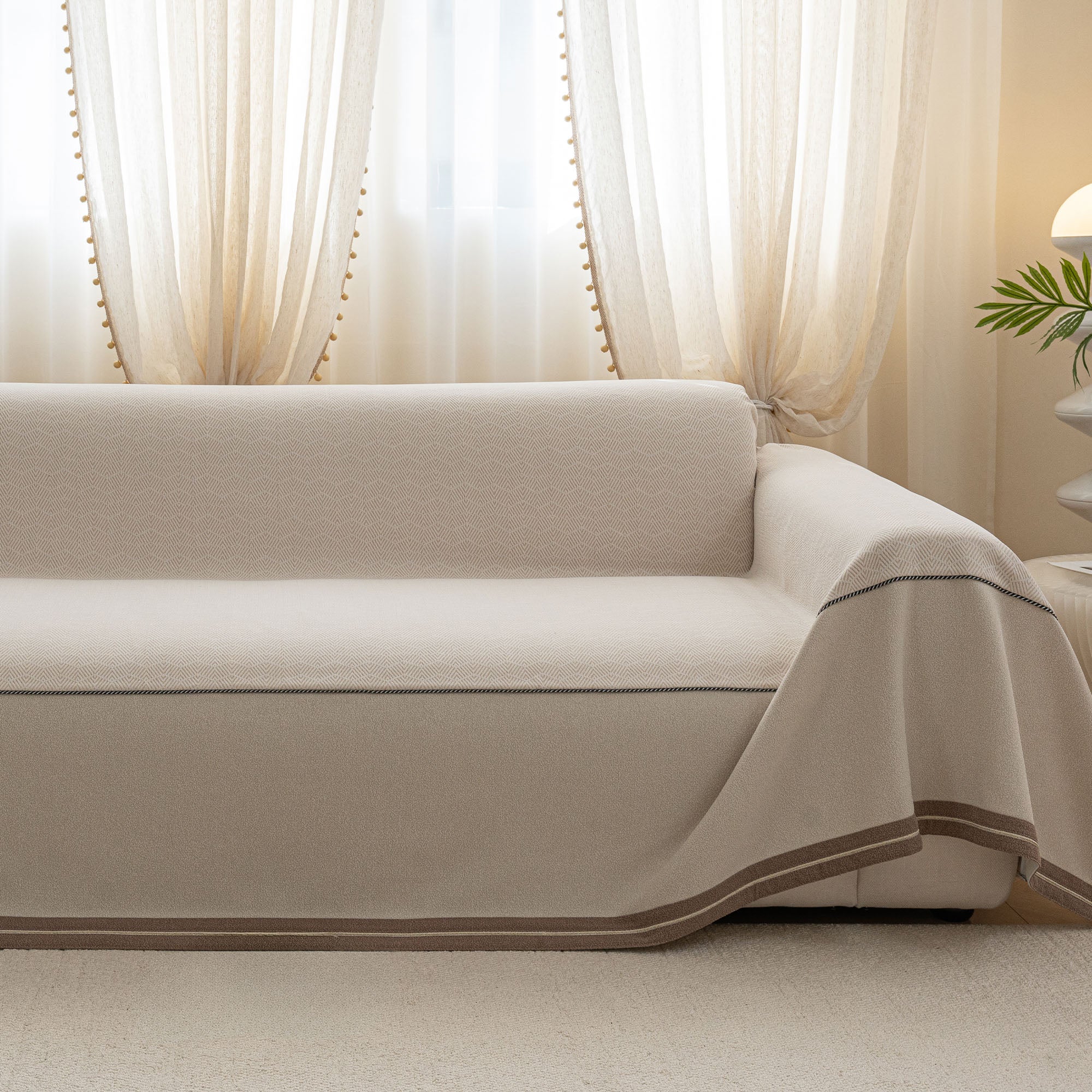 Edler, kratzfester Sofabezug aus Chenille mit Fischgrätenmuster