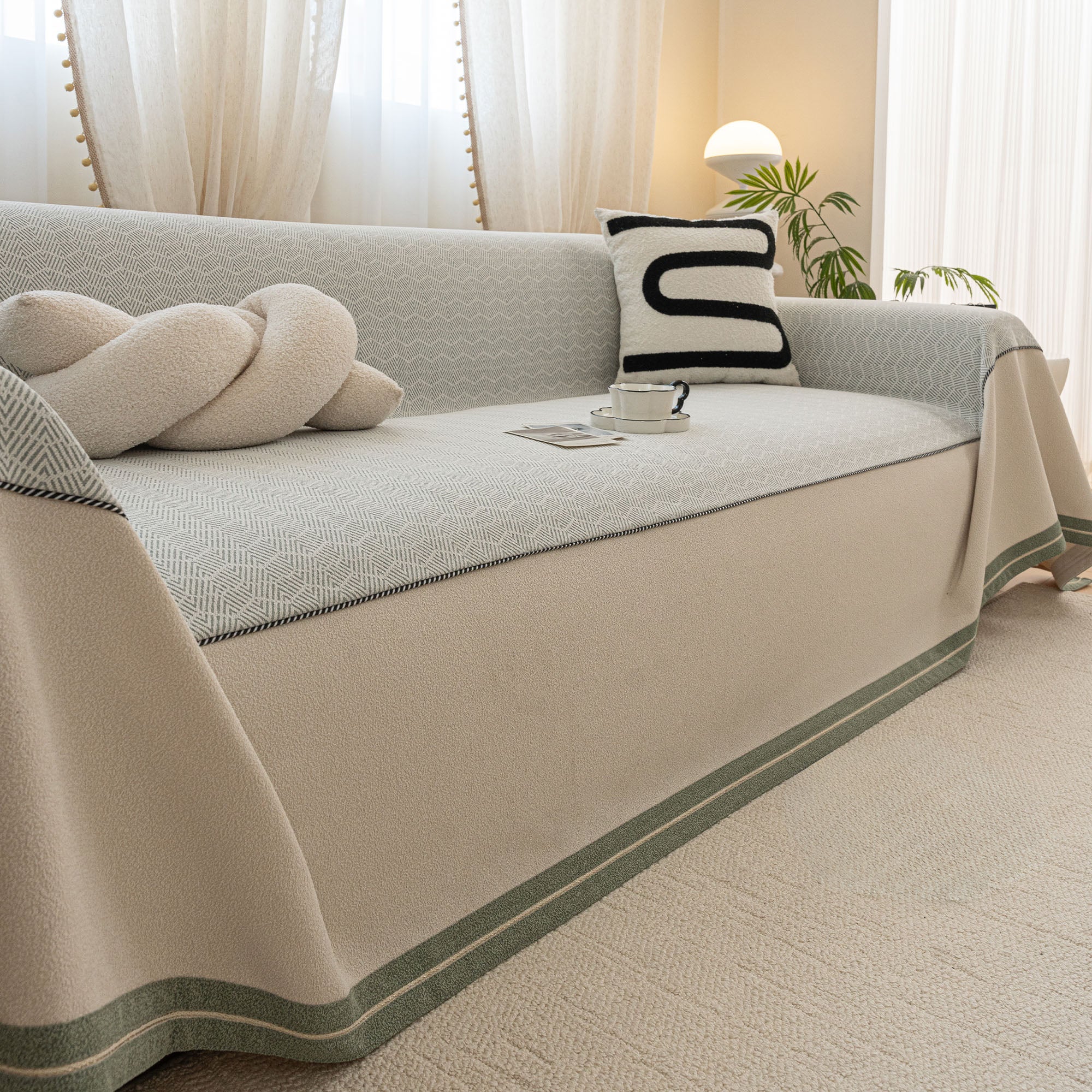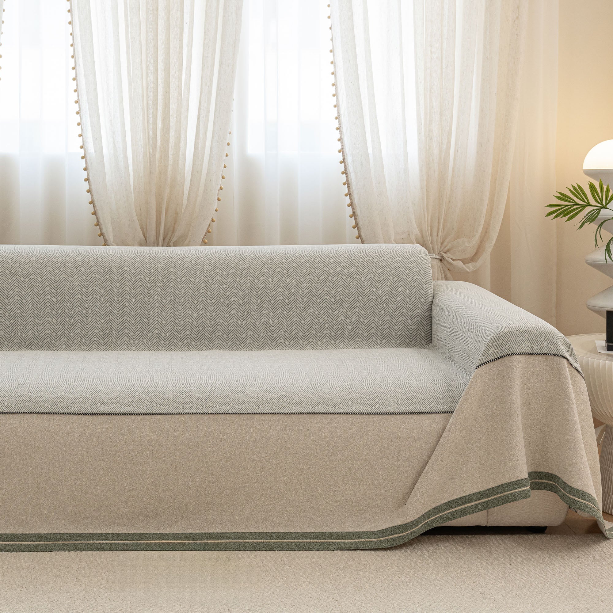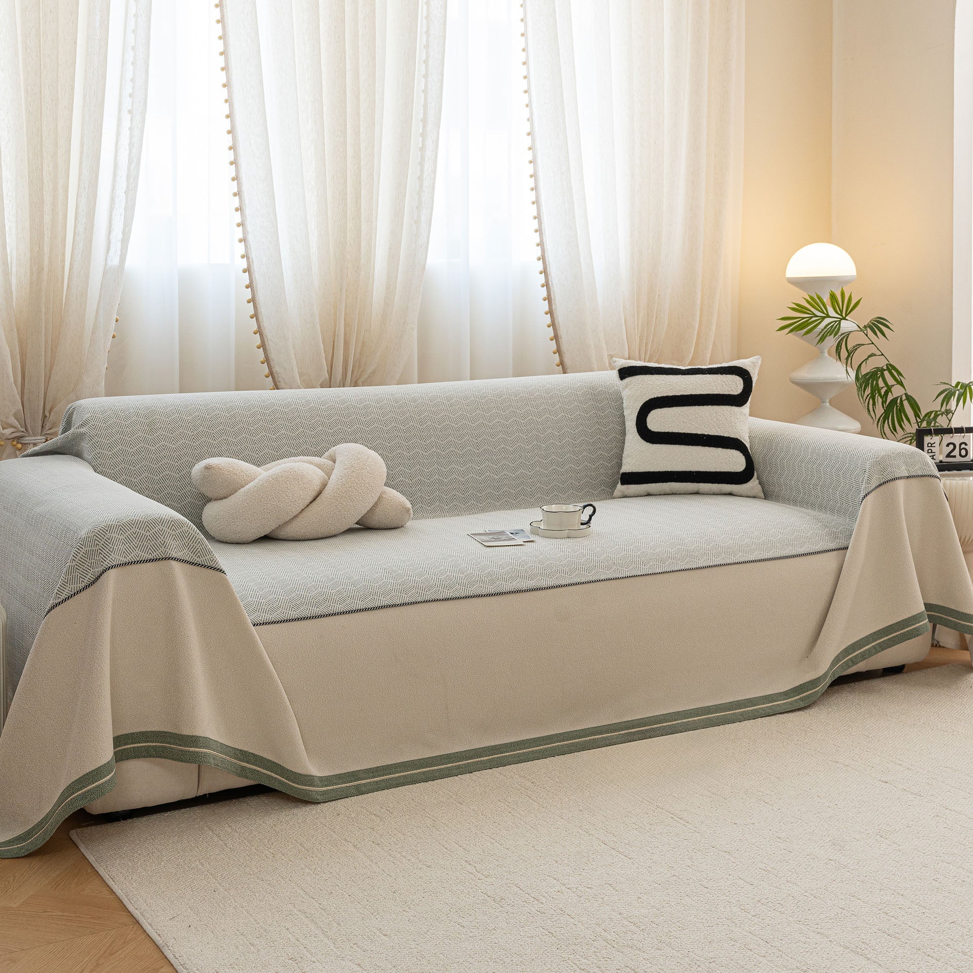 Edler, kratzfester Sofabezug aus Chenille mit Fischgrätenmuster