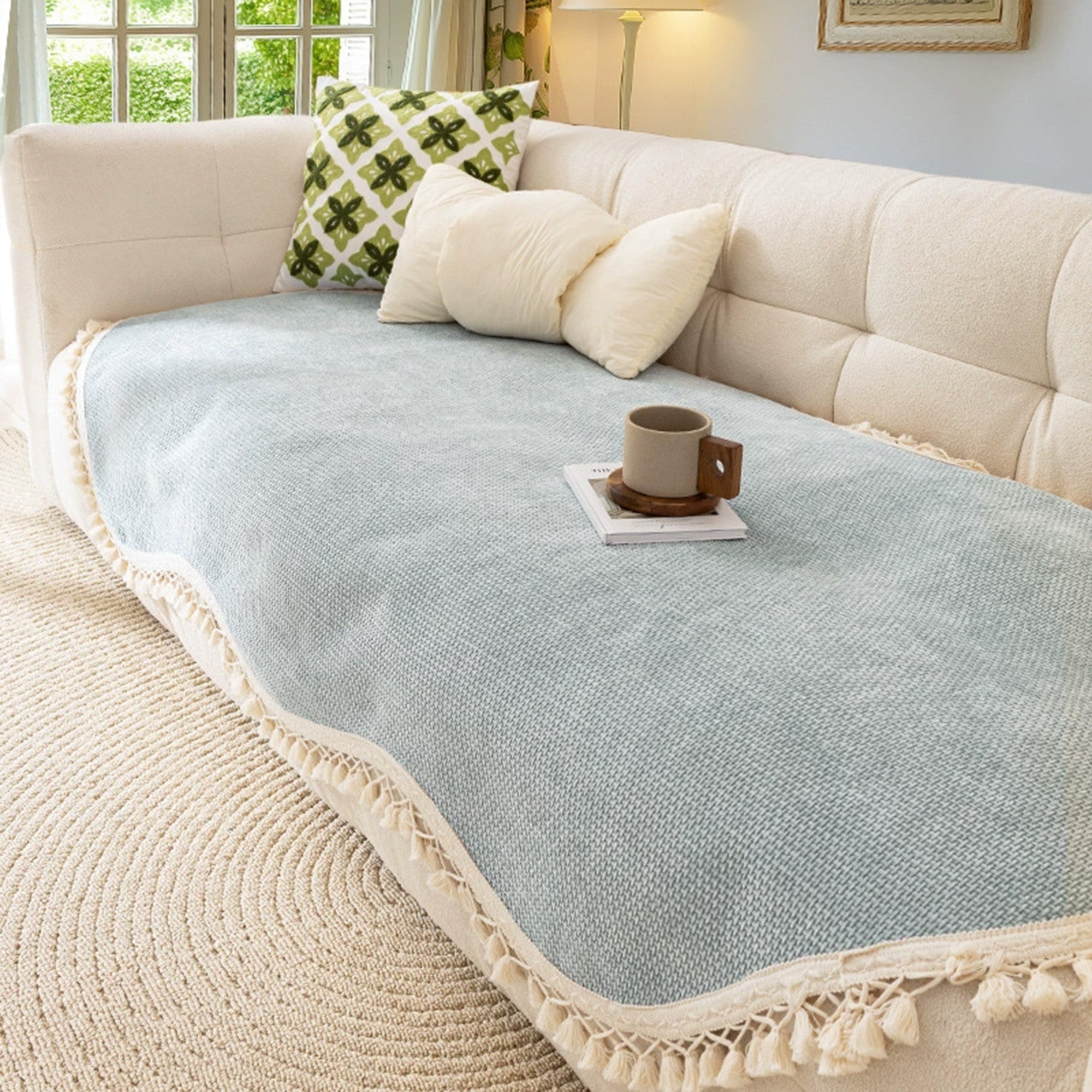Bringen Sie Eleganz und Komfort in Ihren Wohnraum mit dem rutschfesten Sofabezug Tassel Grace Chenille. Mit seiner weichen Chenille-Textur und den verspielten Quastenrändern verleiht dieser Bezug Ihrer Einrichtung Wärme und Charme. Die rutschfeste Rückseite sorgt für sicheren Halt, während der strapazierfähige, haustierfreundliche Stoff vor Kratzern, Spritzern und Abnutzung schützt. Perfekt, um Ihr Zuhause stilvoll und praktisch zugleich zu gestalten.