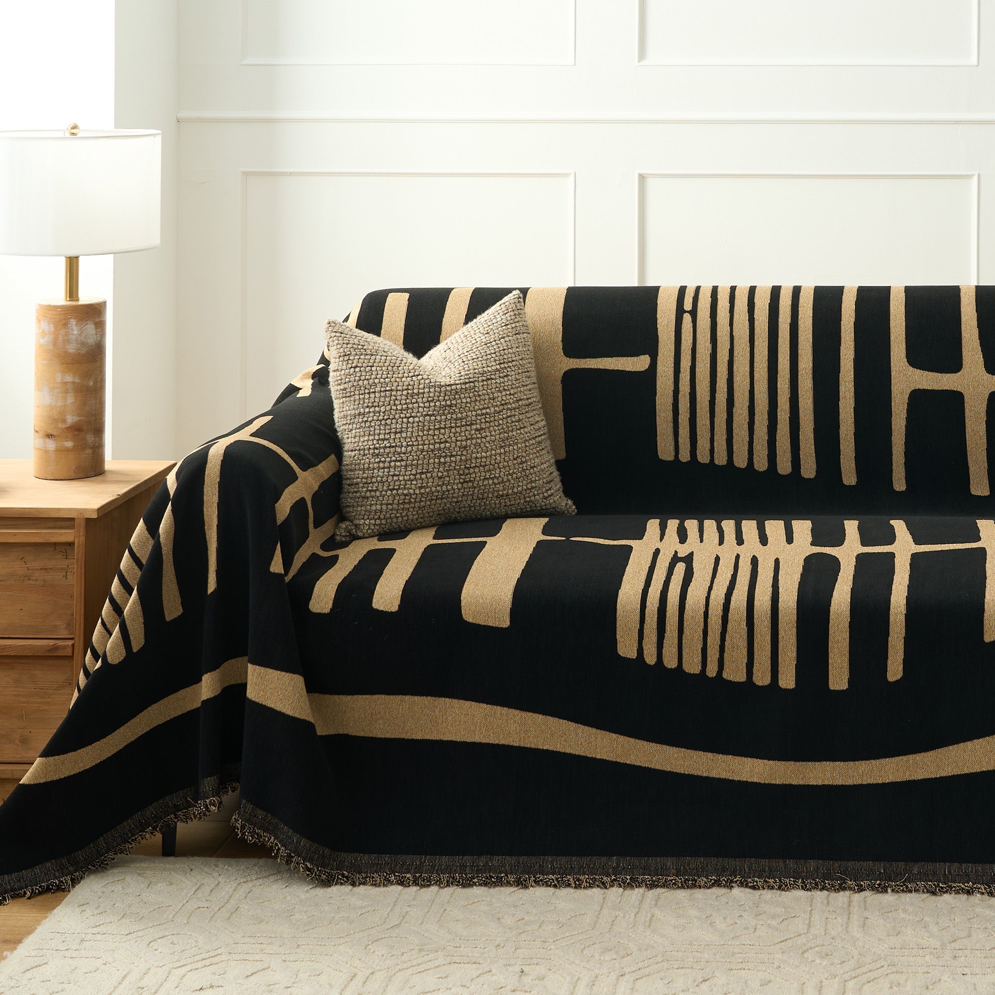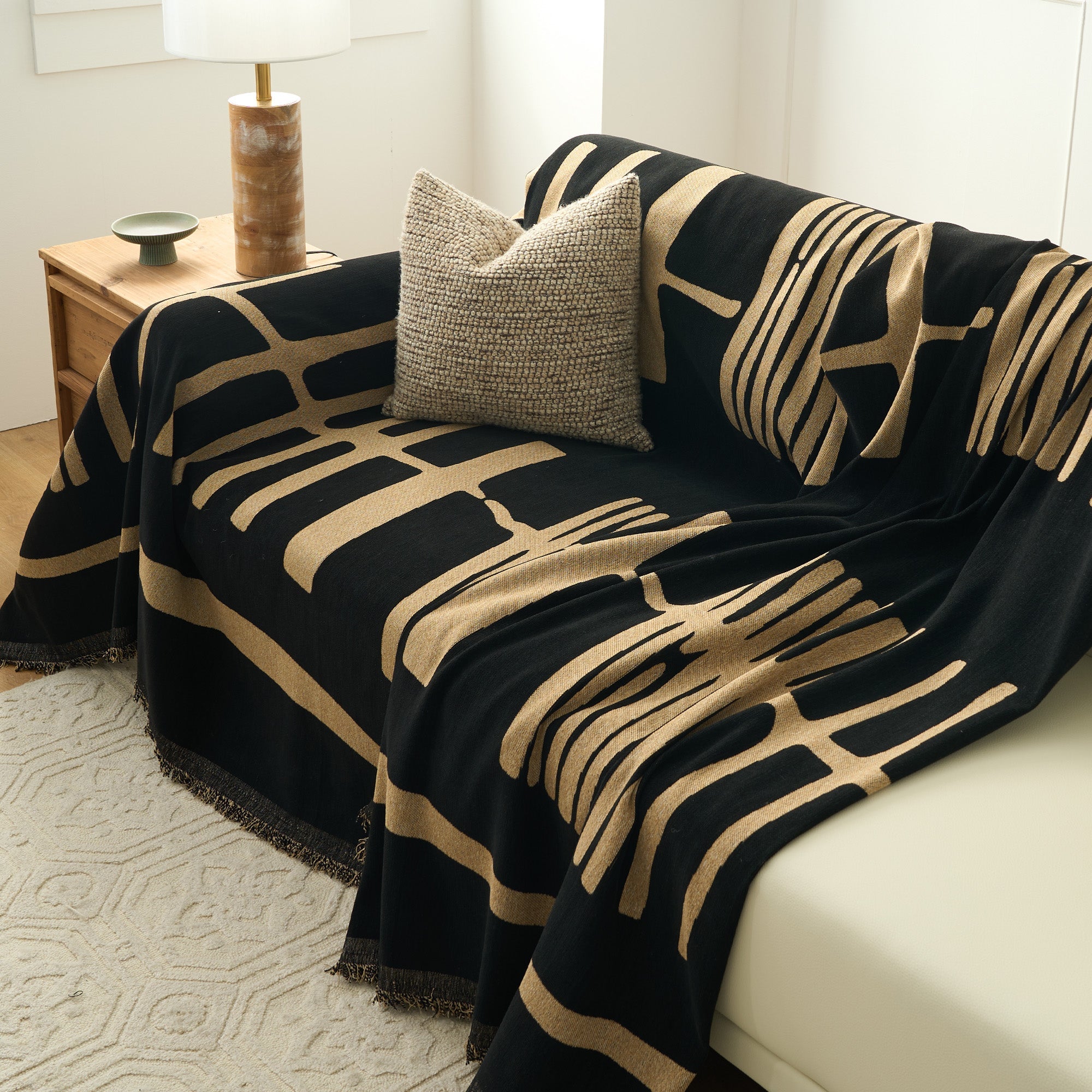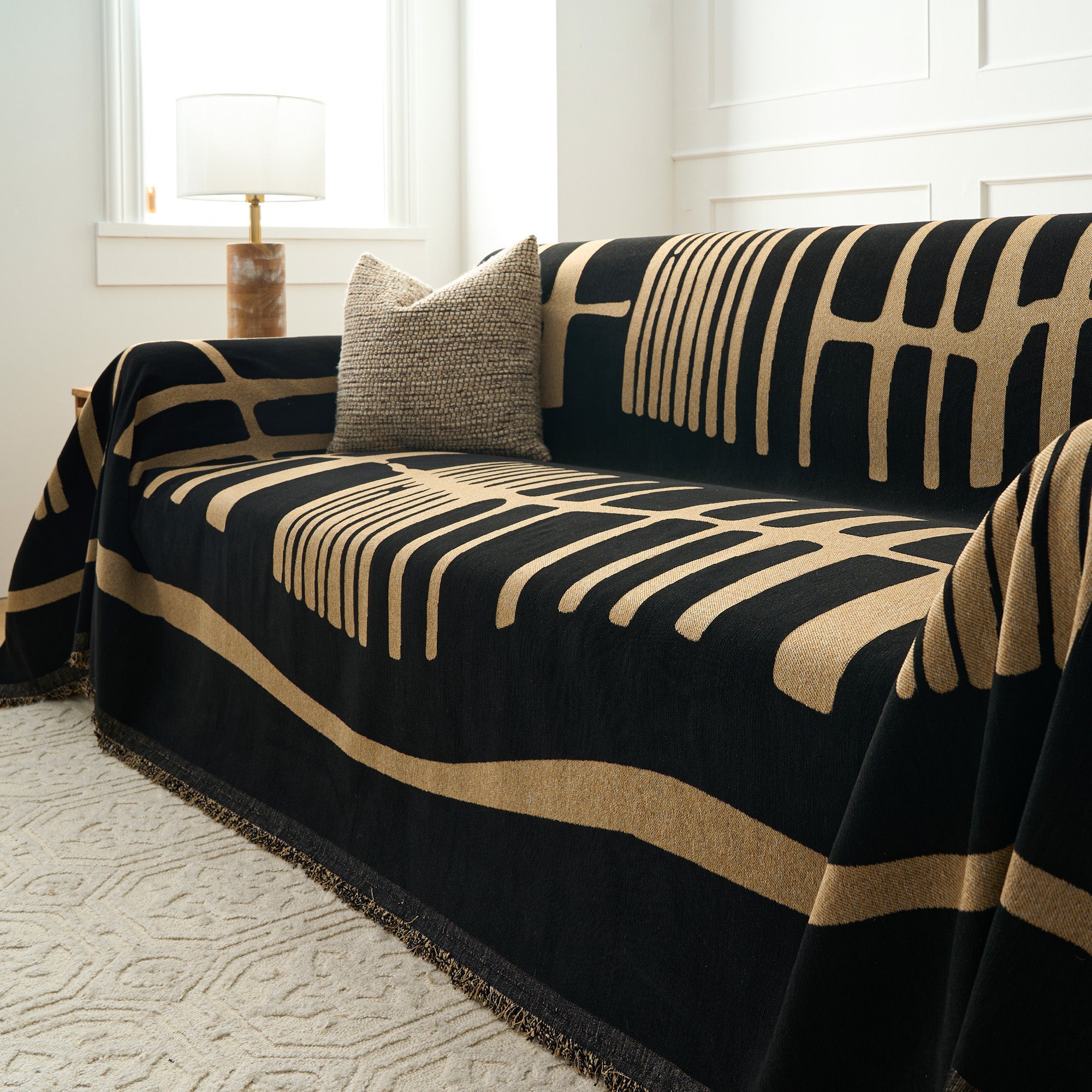 Sofabezug / Bequemer Wendebezug in schwarzem geometrischem Muster - Endverkauf