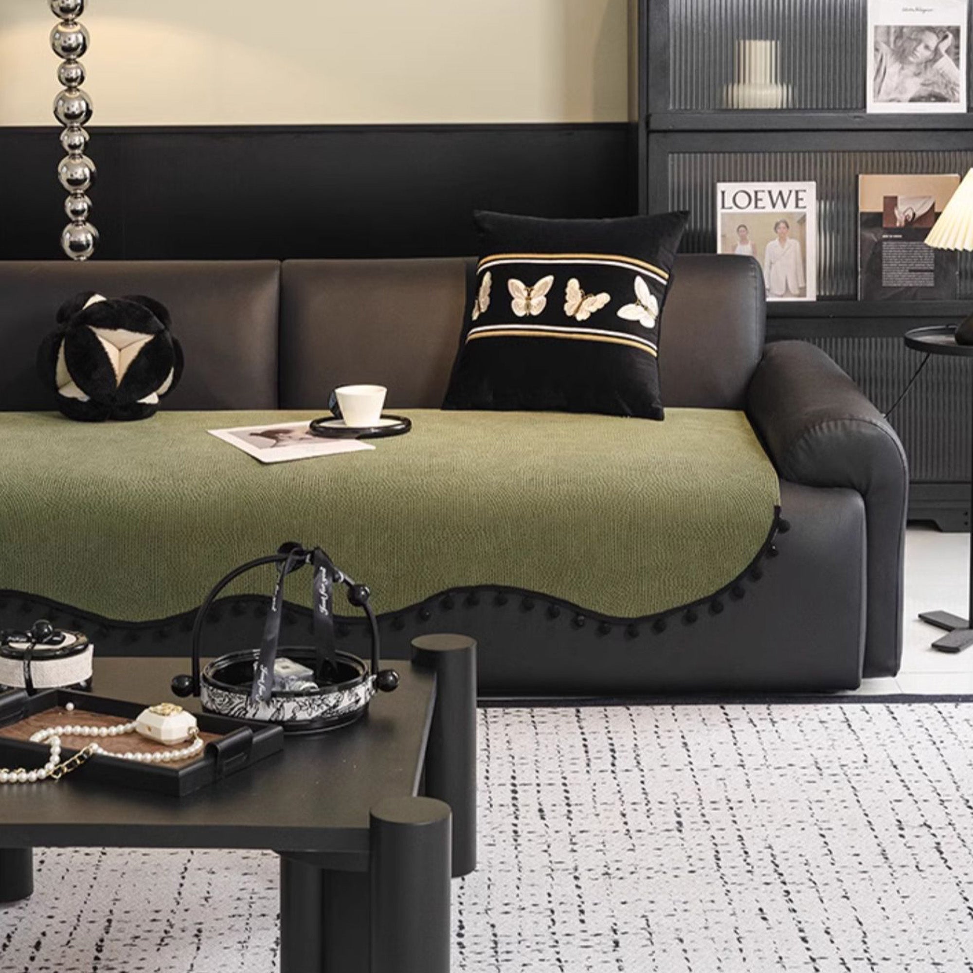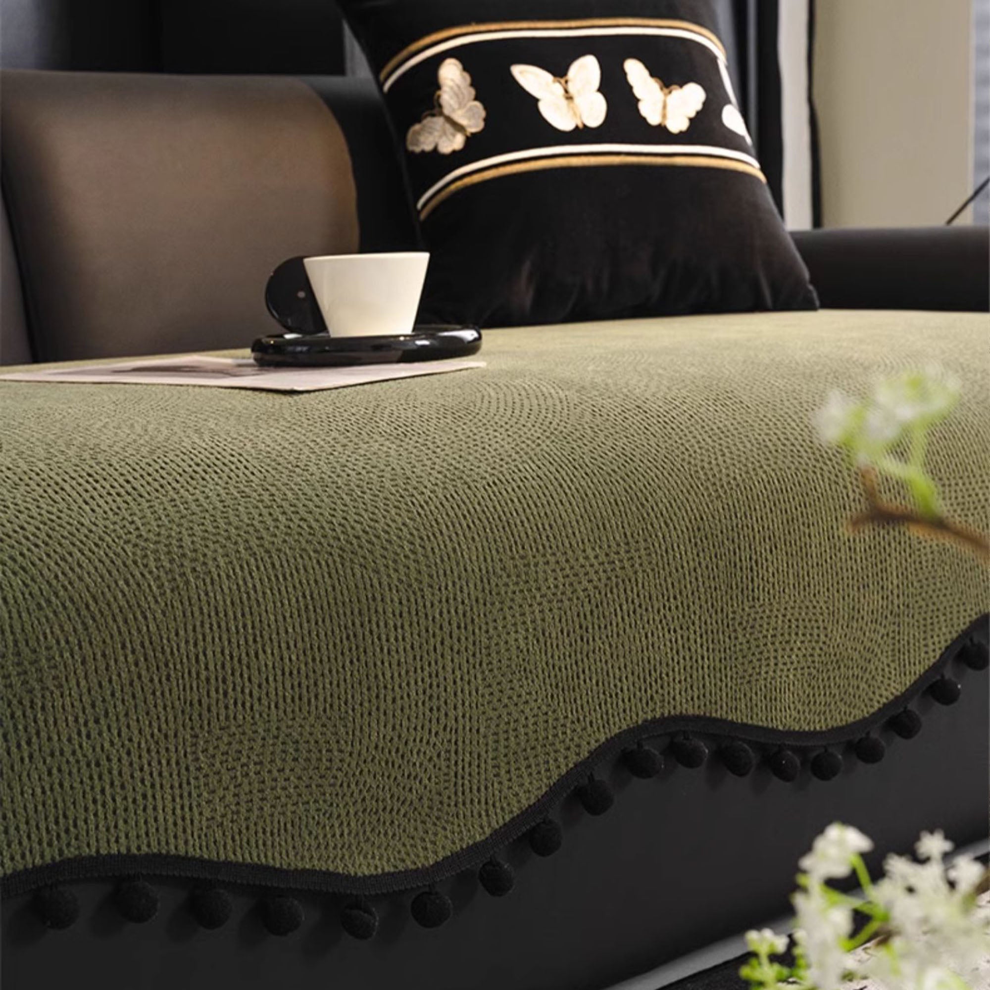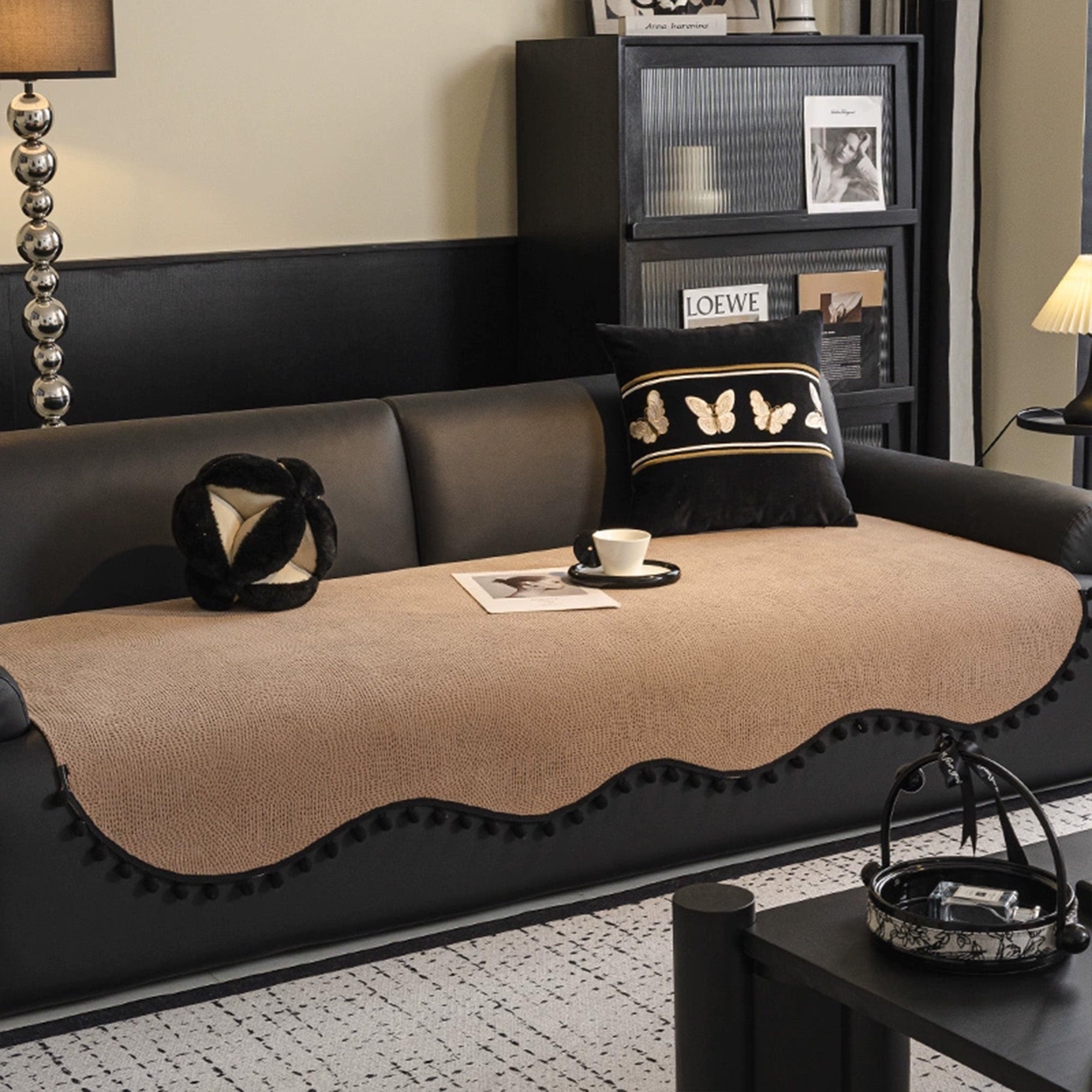 Bringen Sie zeitlosen Charme und Komfort in Ihr Zuhause mit unserem rutschfesten Sofabezug „Vintage Charm Chenille“. Mit seinen eleganten gewellten Kanten und dem verspielten Bommelbesatz verleiht dieser Bezug jedem Wohnraum ein einzigartiges Retro-Flair.