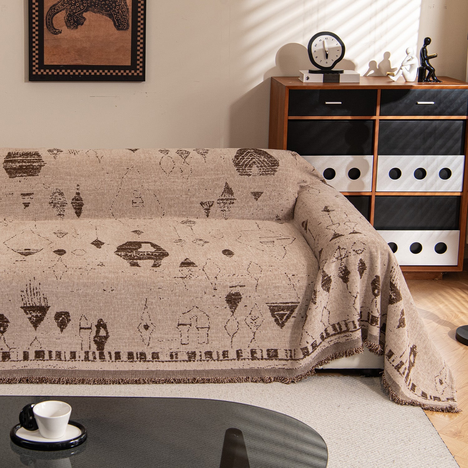 Die aufwendige geometrische Struktur sorgt für optische Akzente und fügt sich nahtlos in moderne, Retro- oder minimalistische Einrichtungsstile ein. Der Bezug ist pflegeleicht, langlebig und schützt Ihr Sofa zuverlässig vor Beschädigungen.