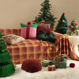 Sofabezug aus Plüschstoff mit 3D-Weihnachtsbaummuster und kuscheliger konkav-konvexer Textur