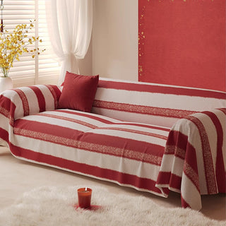 Klassischer weihnachtlicher rot-weiß gestreifter Sofabezug für eine gemütliche Urlaubsstimmung