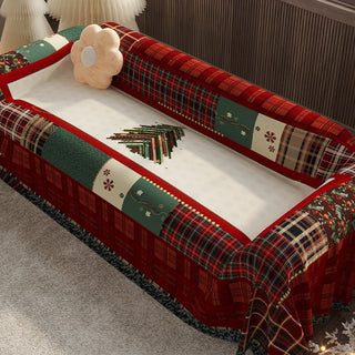 Kuscheliger weihnachtlicher Patchwork-Sofabezug schützt Möbel und verschönert Ihre Urlaubseinrichtung
