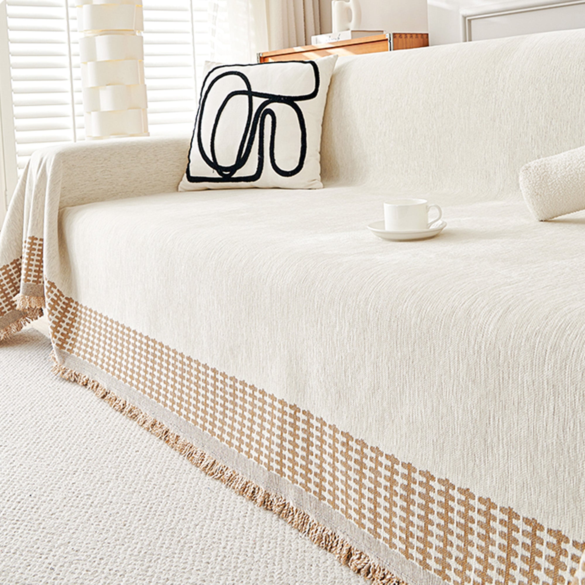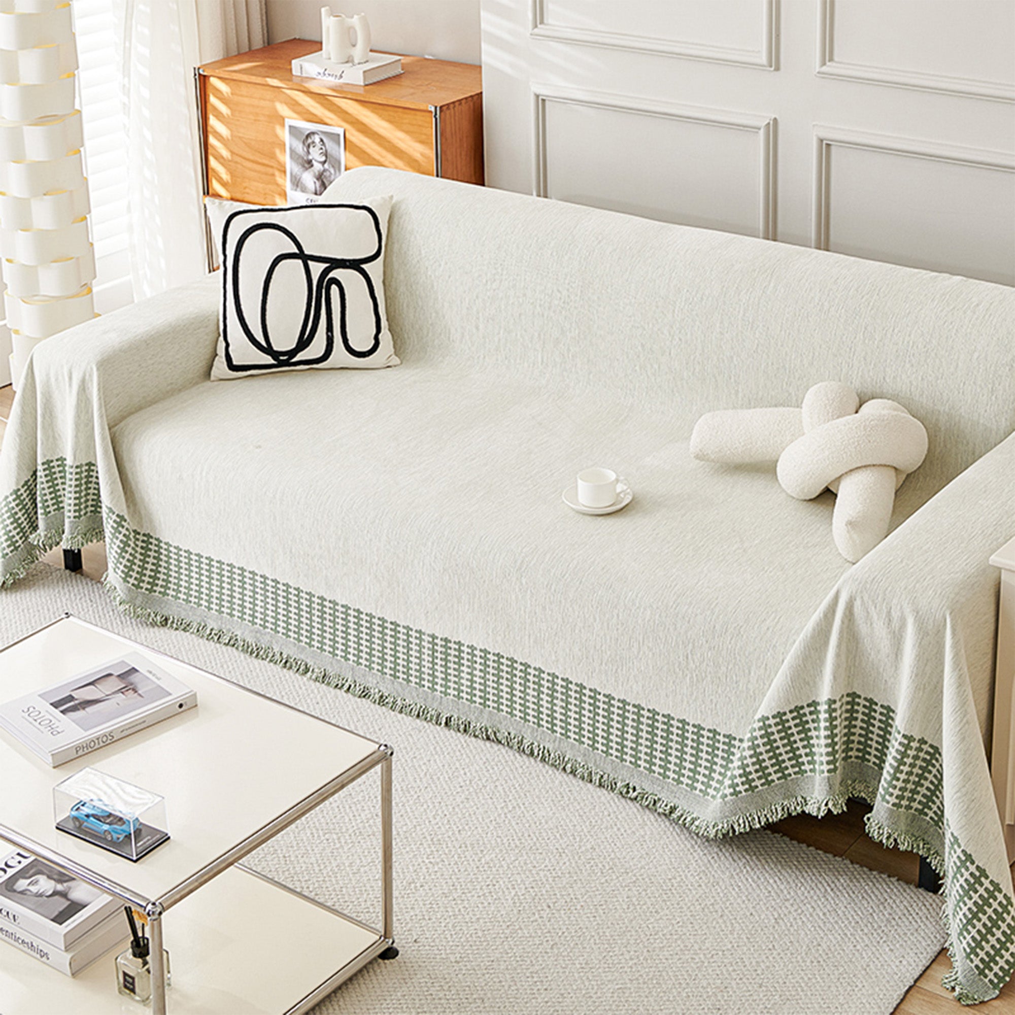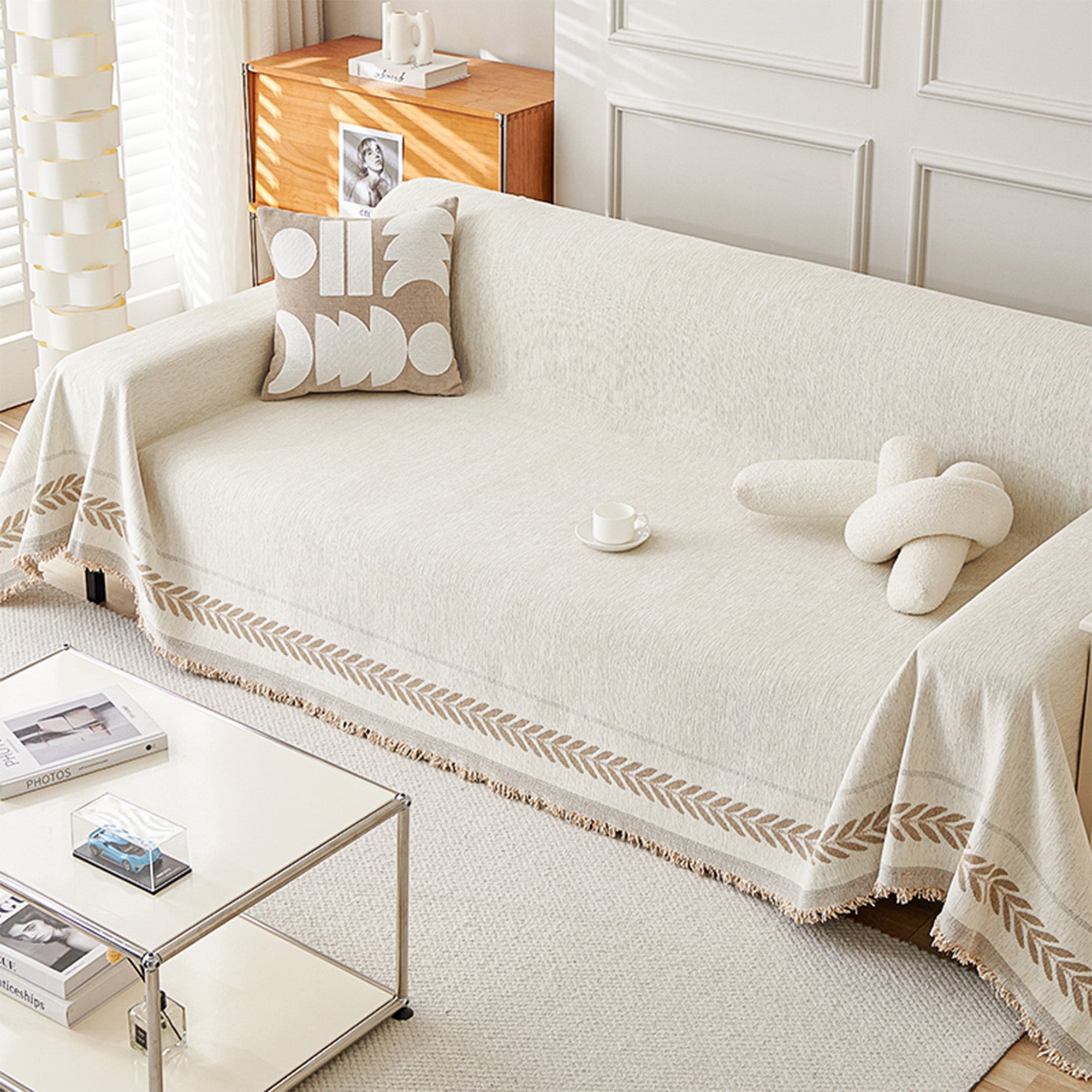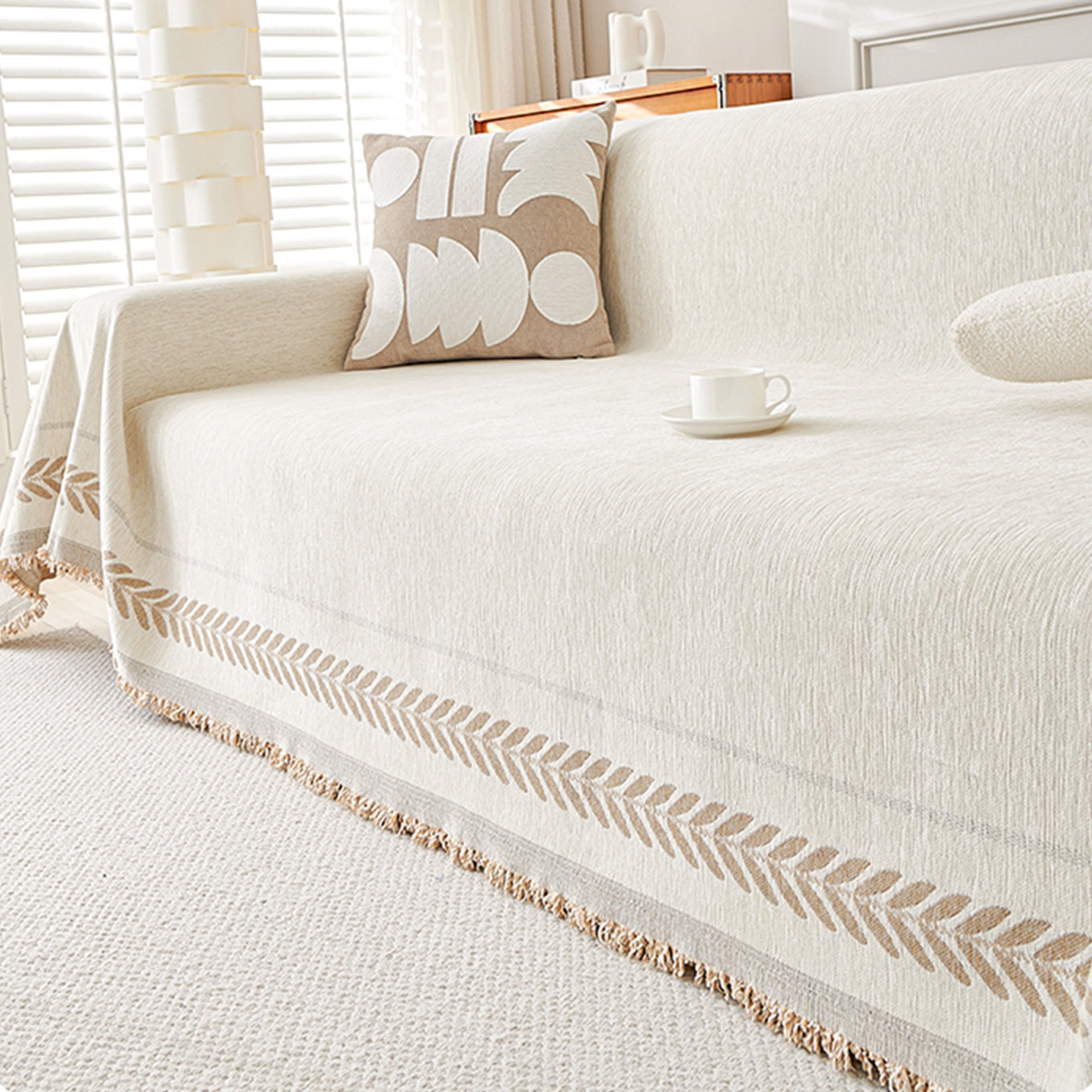 Verschönern Sie Ihre Inneneinrichtung mit diesem eleganten Sofabezug aus Baumwolle mit einem subtilen Blattrandmuster. Perfekt, um Ihrem Wohnraum eine natürliche Note zu verleihen, bietet es sowohl Schutz als auch Komfort. Diese vielseitige Decke unterstreicht die Ästhetik jedes Raums und bietet gleichzeitig eine gemütliche Schicht zum Entspannen.