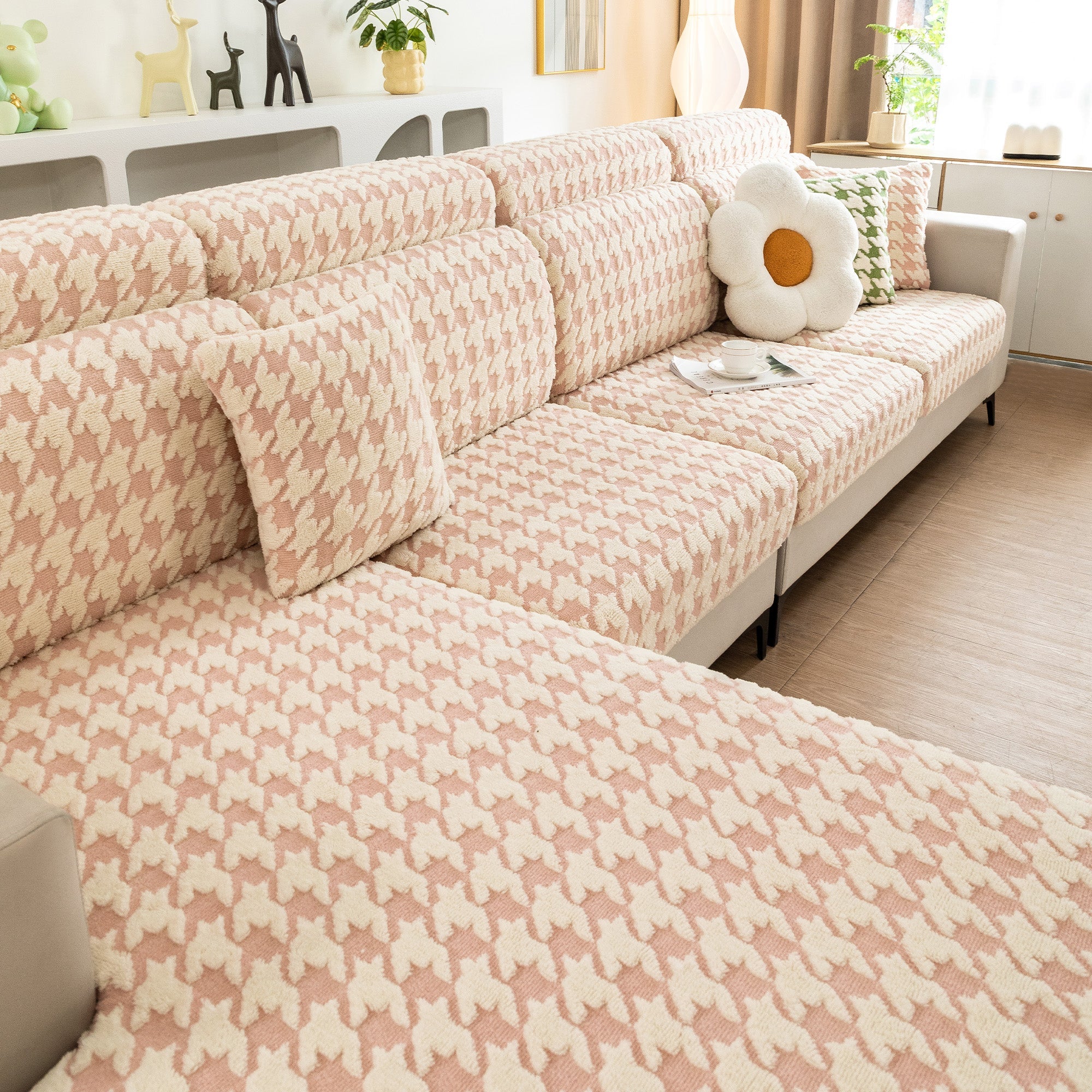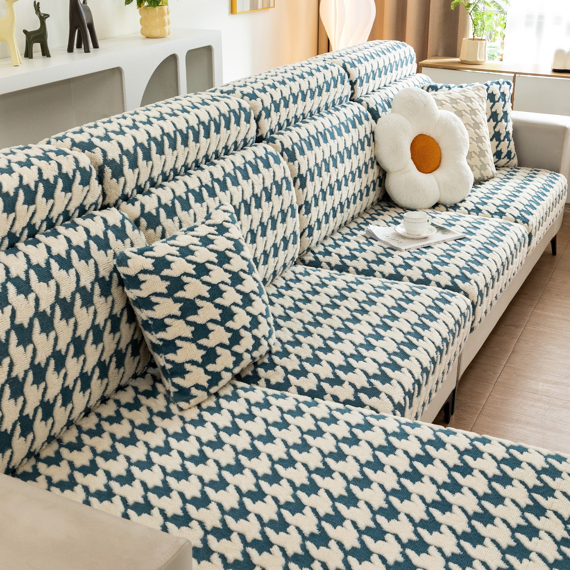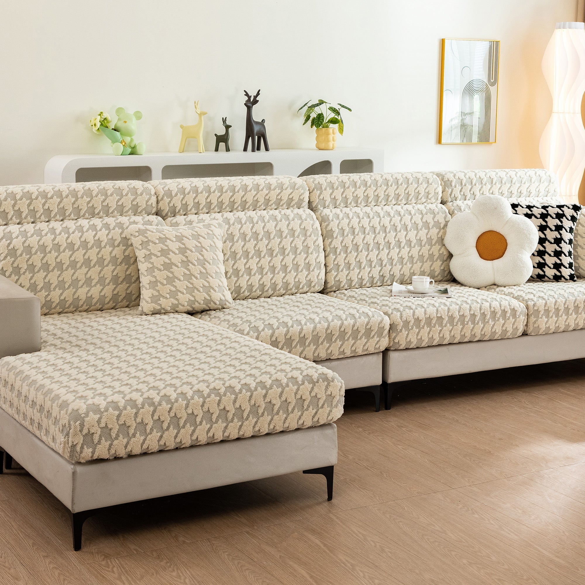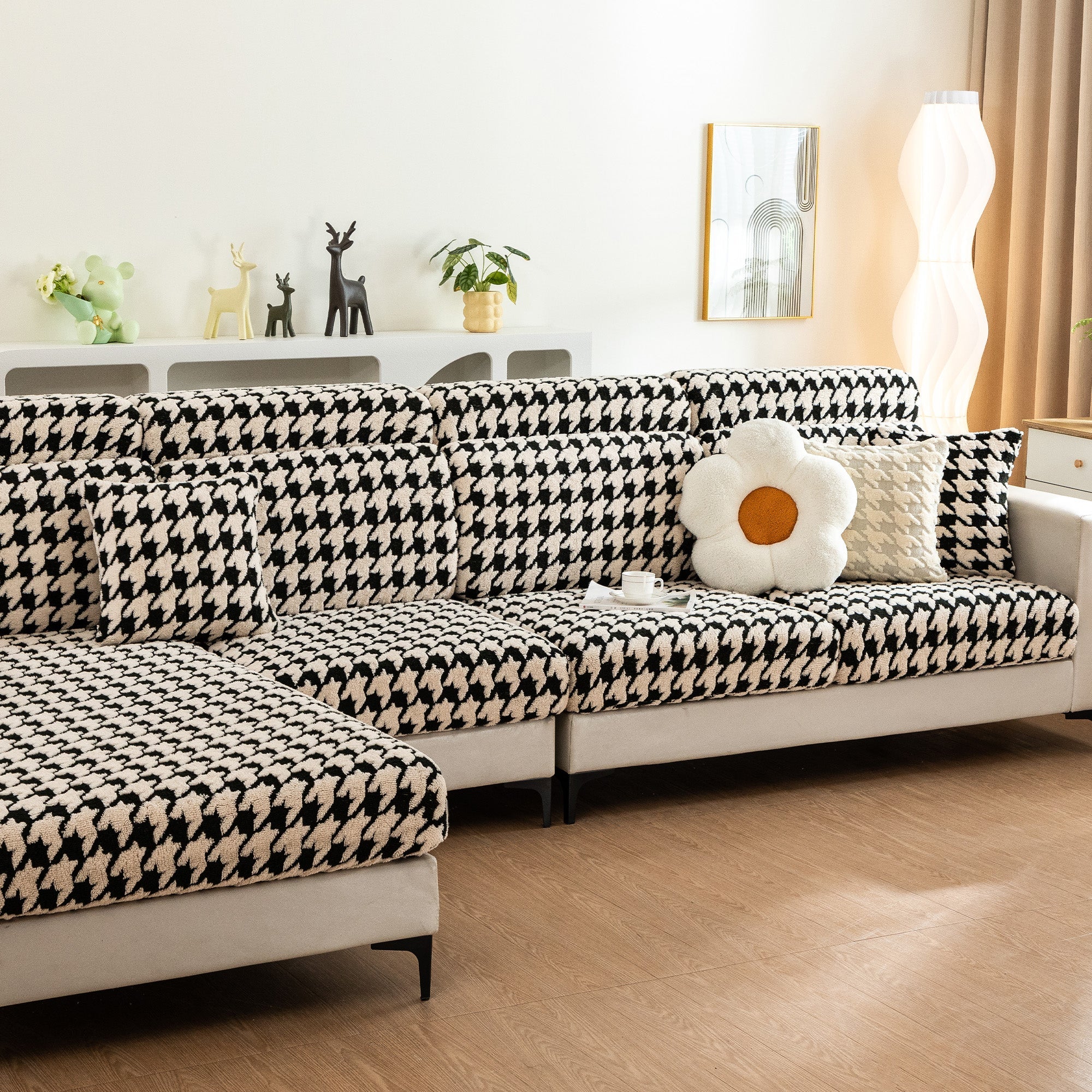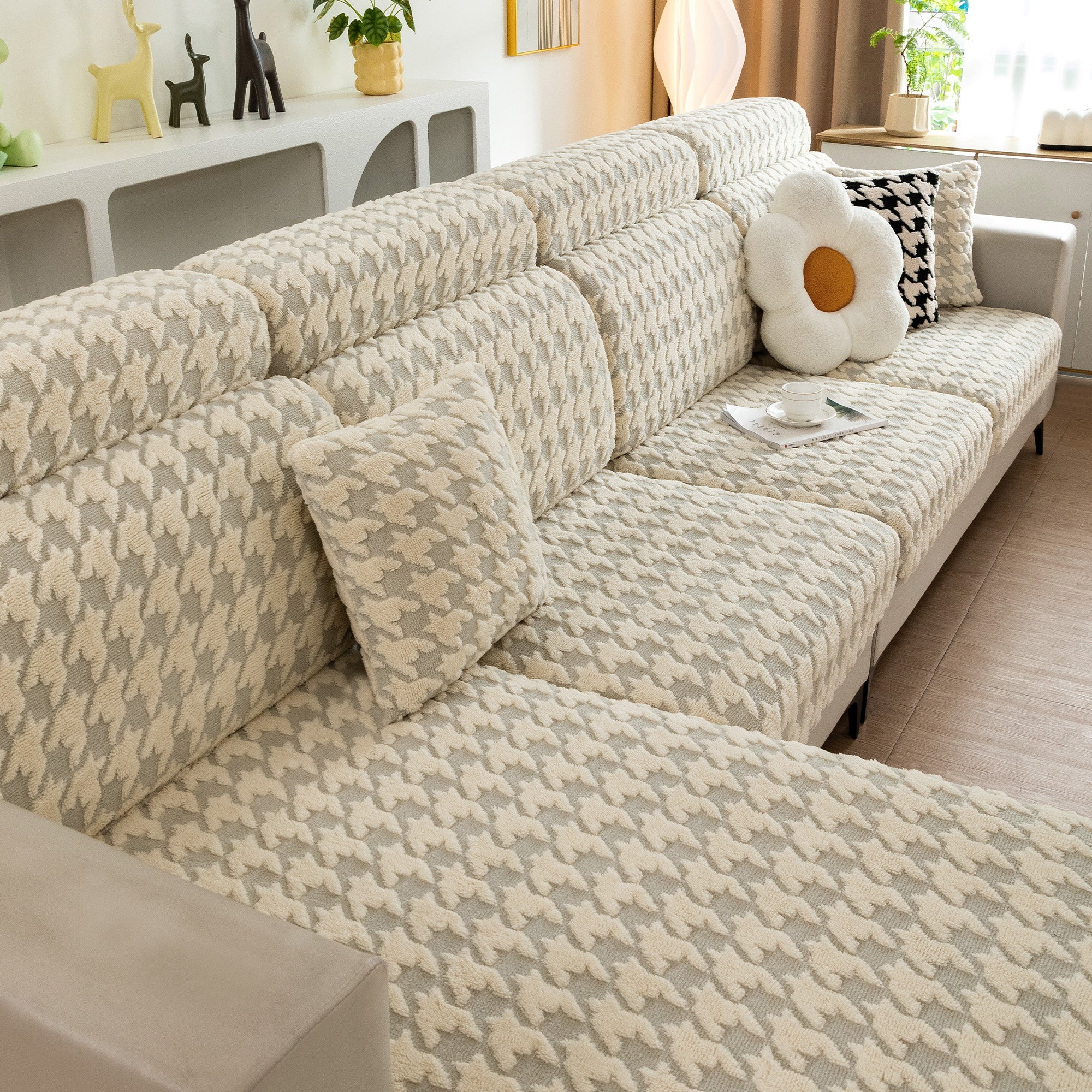 Klassischer Stretch-Sofabezug aus Fleece mit Hahnentrittmuster – kratzfest, vollständiger Schutz für Haustiere
