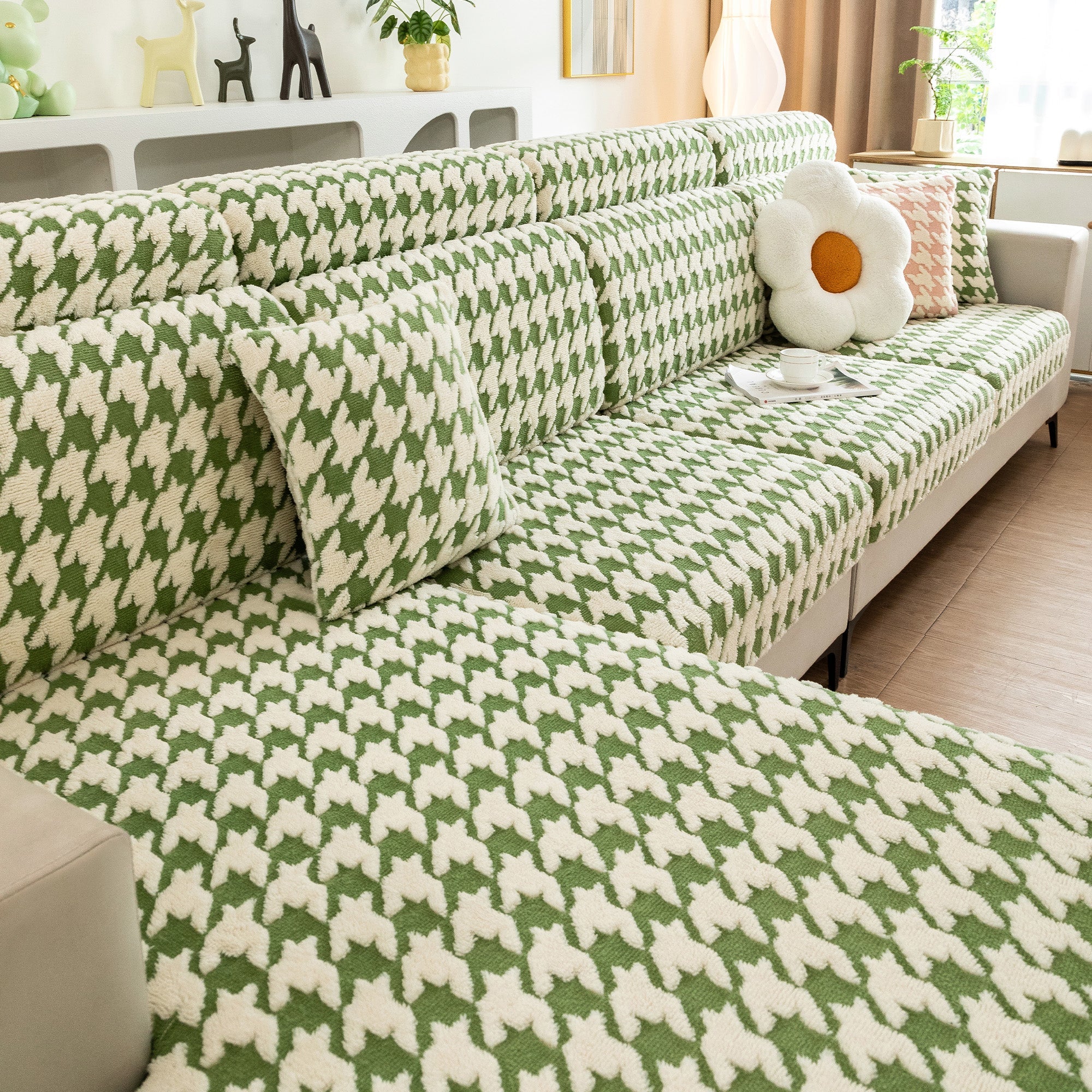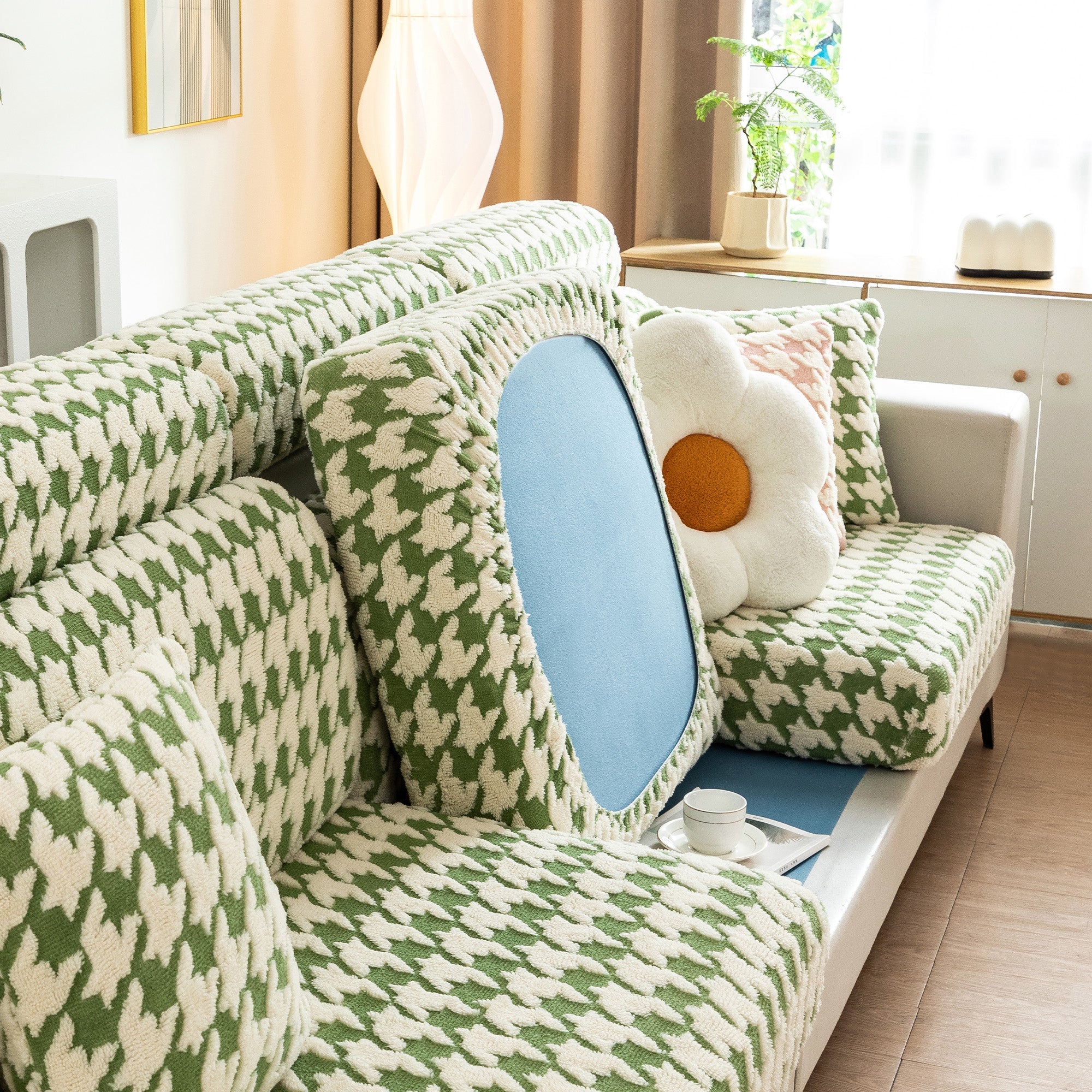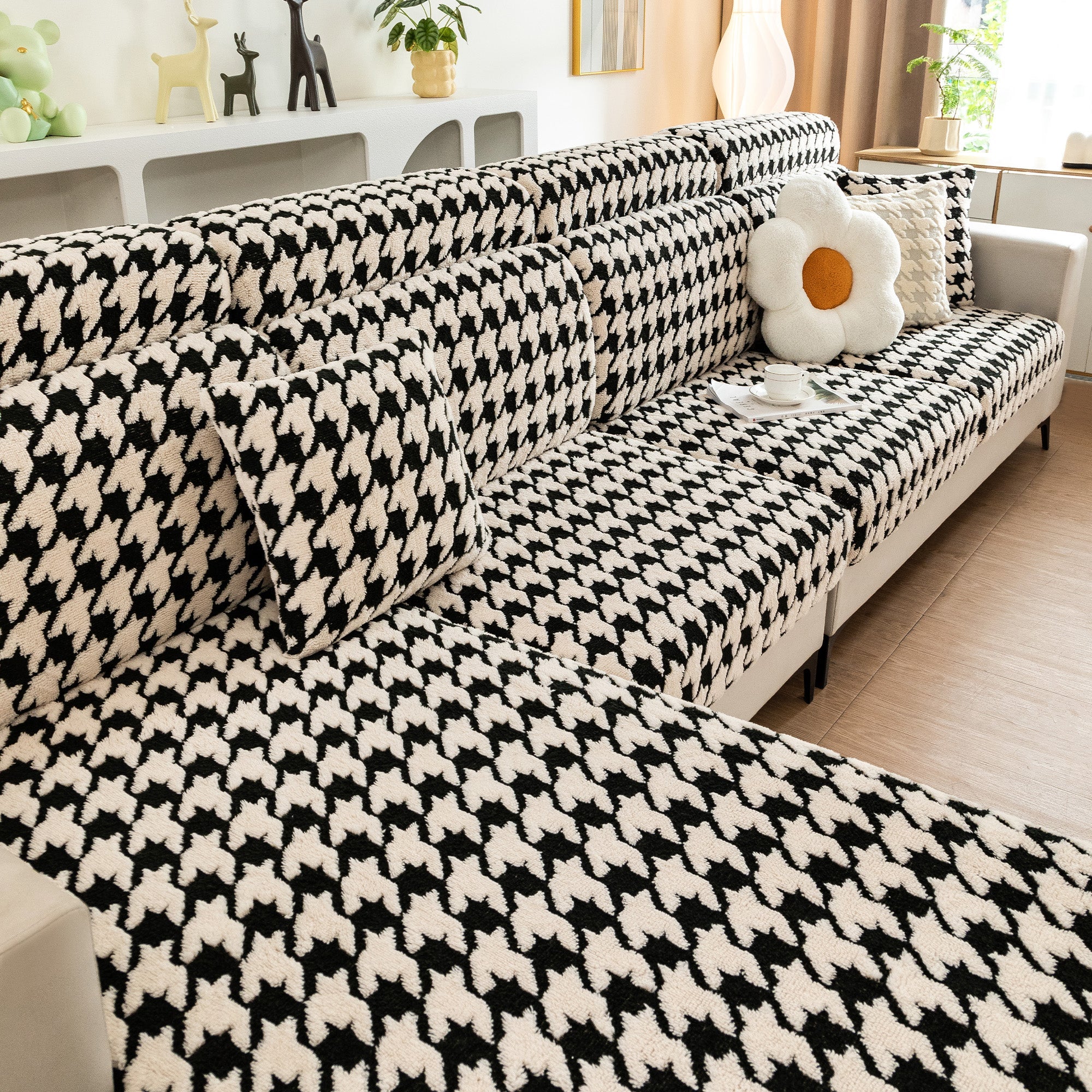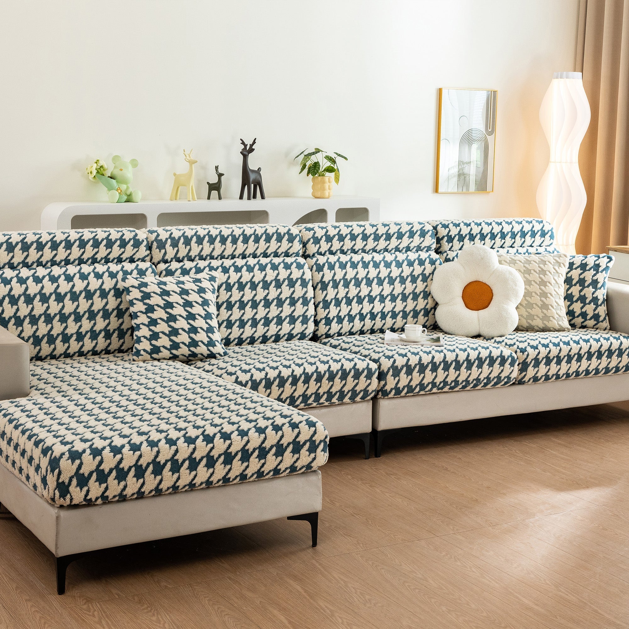 Klassischer Stretch-Sofabezug aus Fleece mit Hahnentrittmuster – kratzfest, vollständiger Schutz für Haustiere