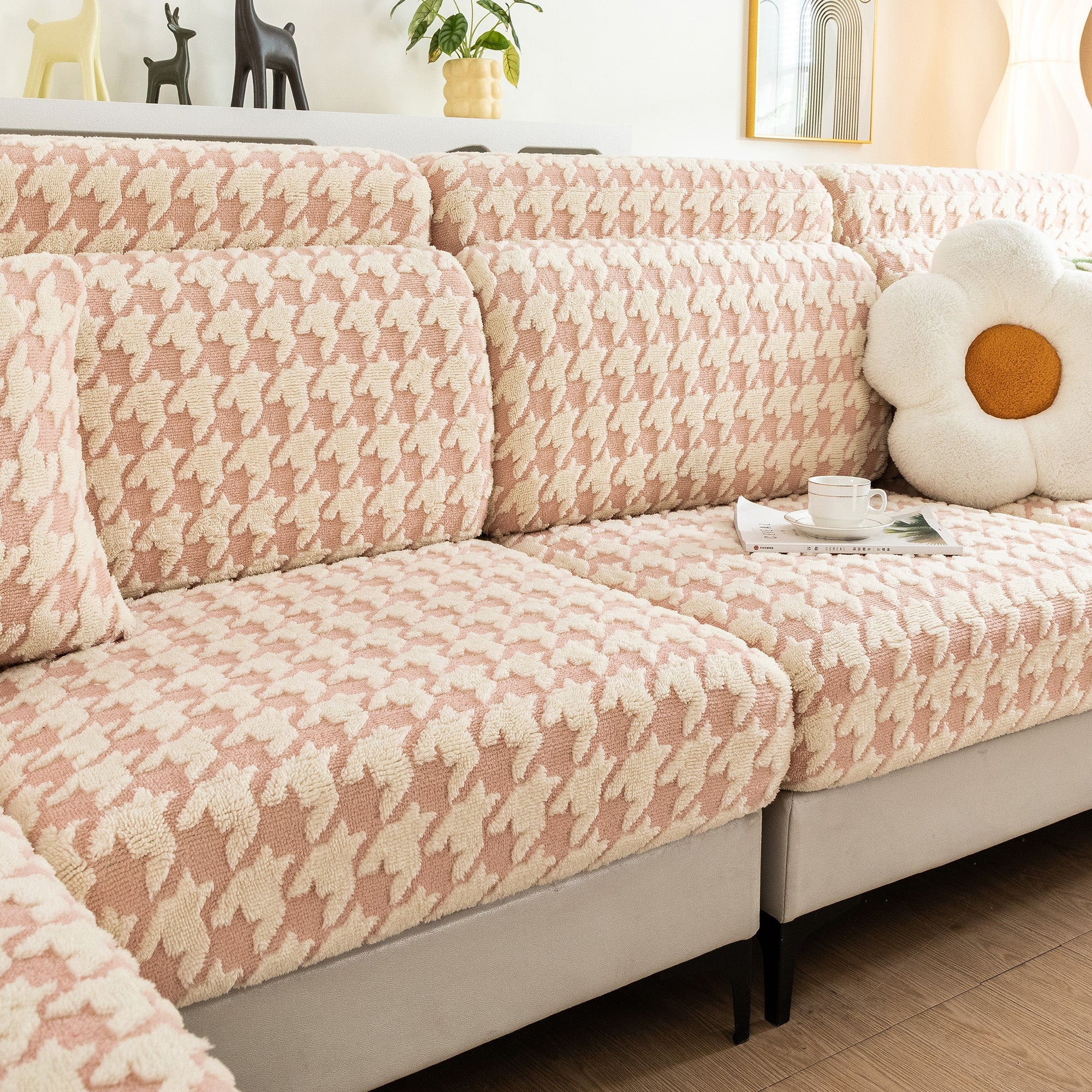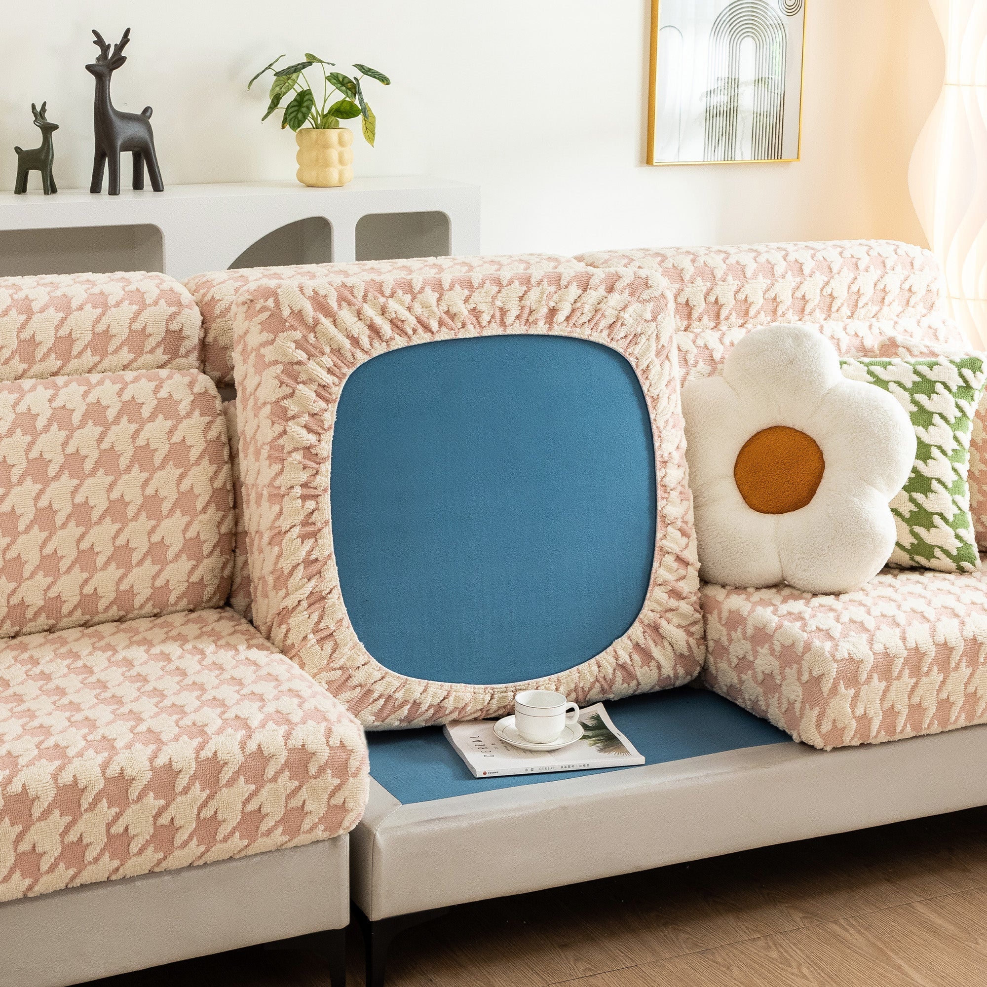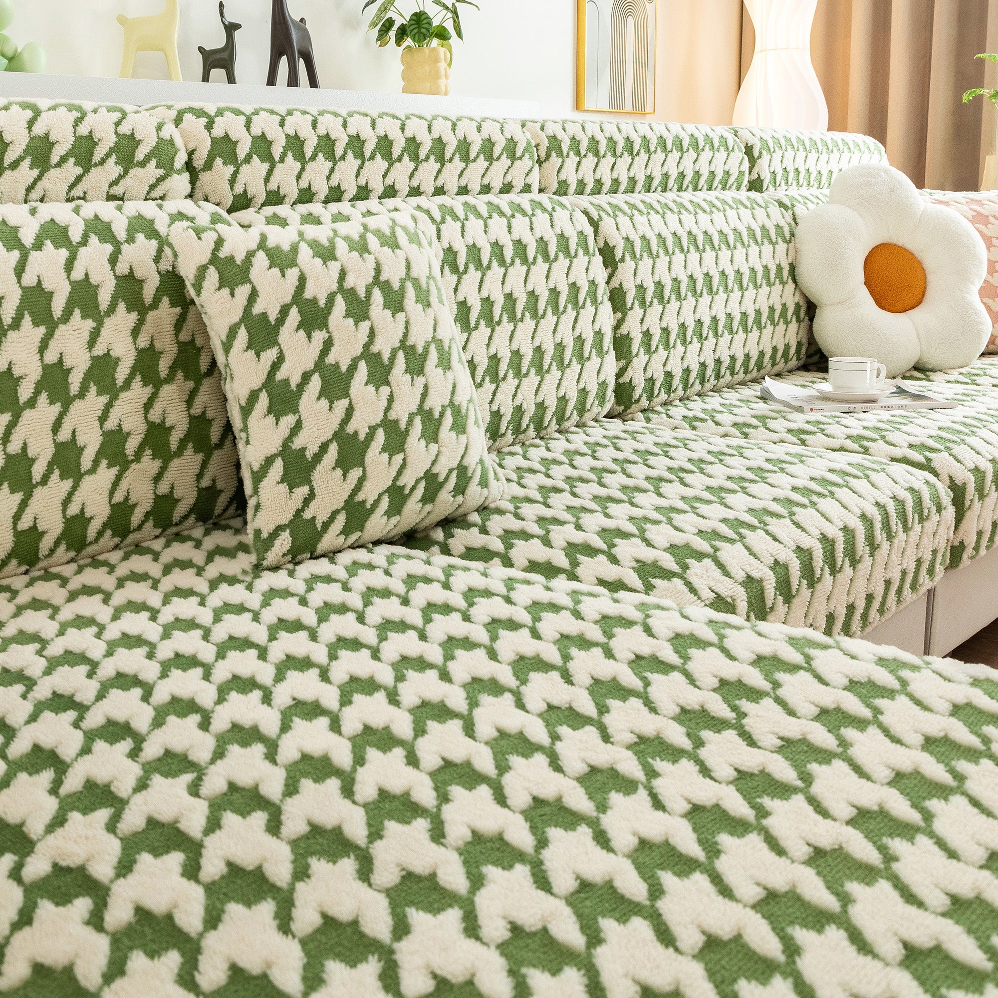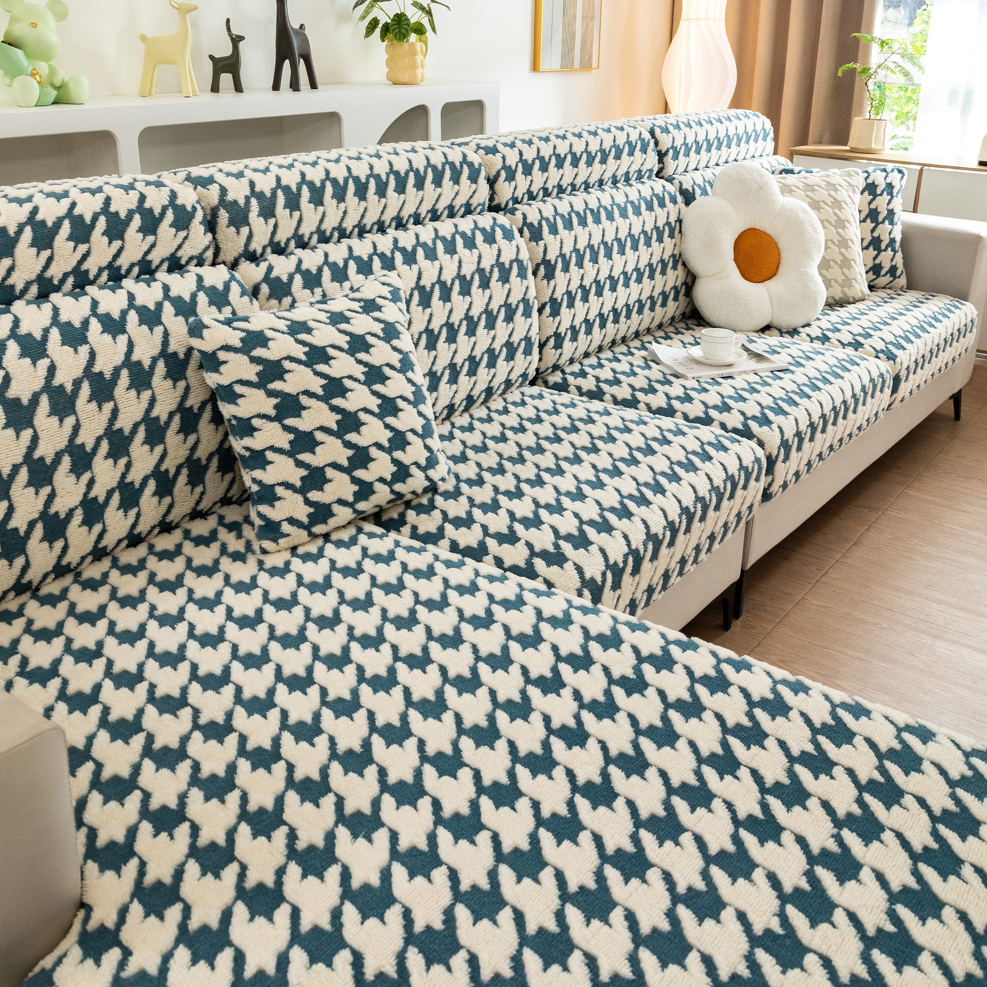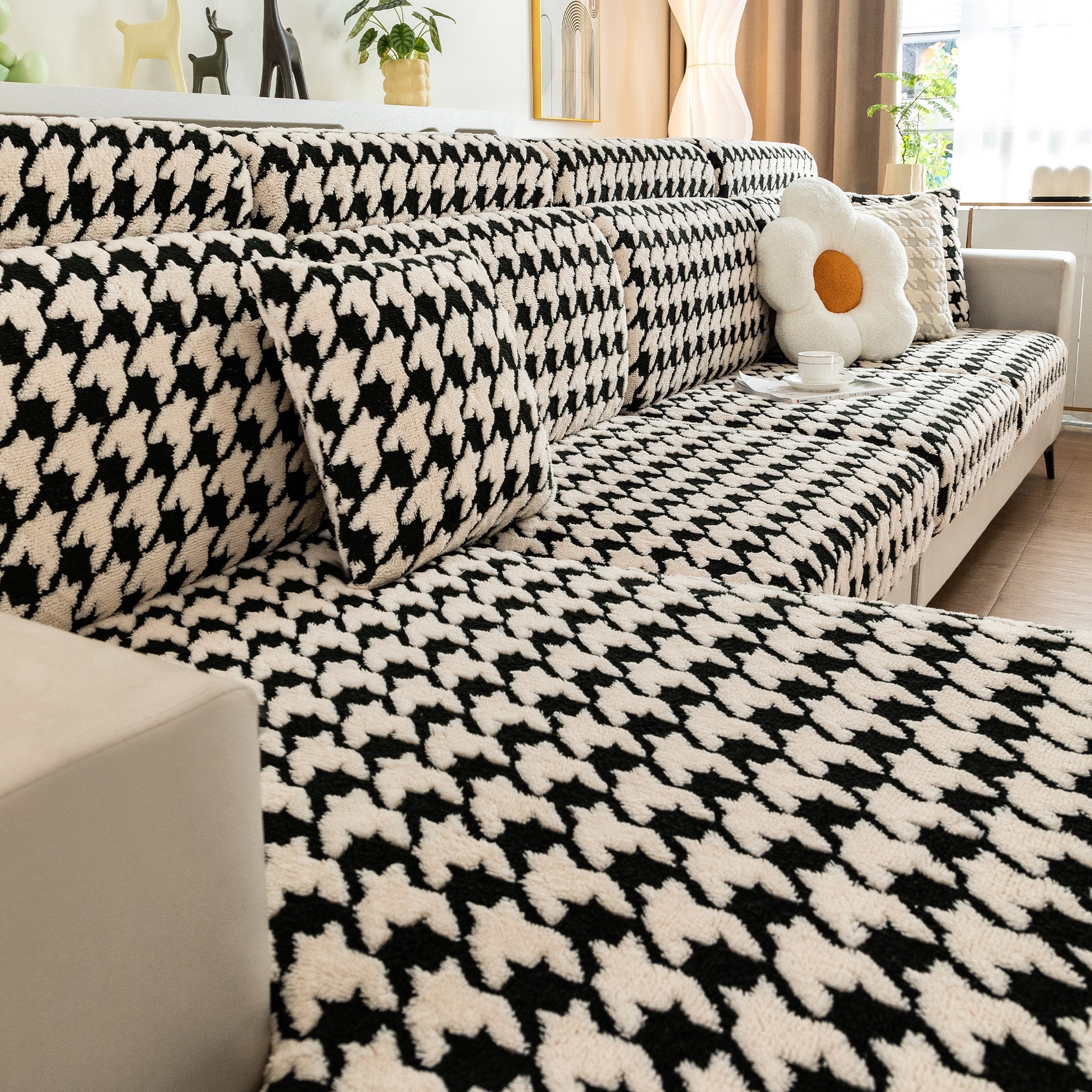 Klassischer Stretch-Sofabezug aus Fleece mit Hahnentrittmuster – kratzfest, vollständiger Schutz für Haustiere