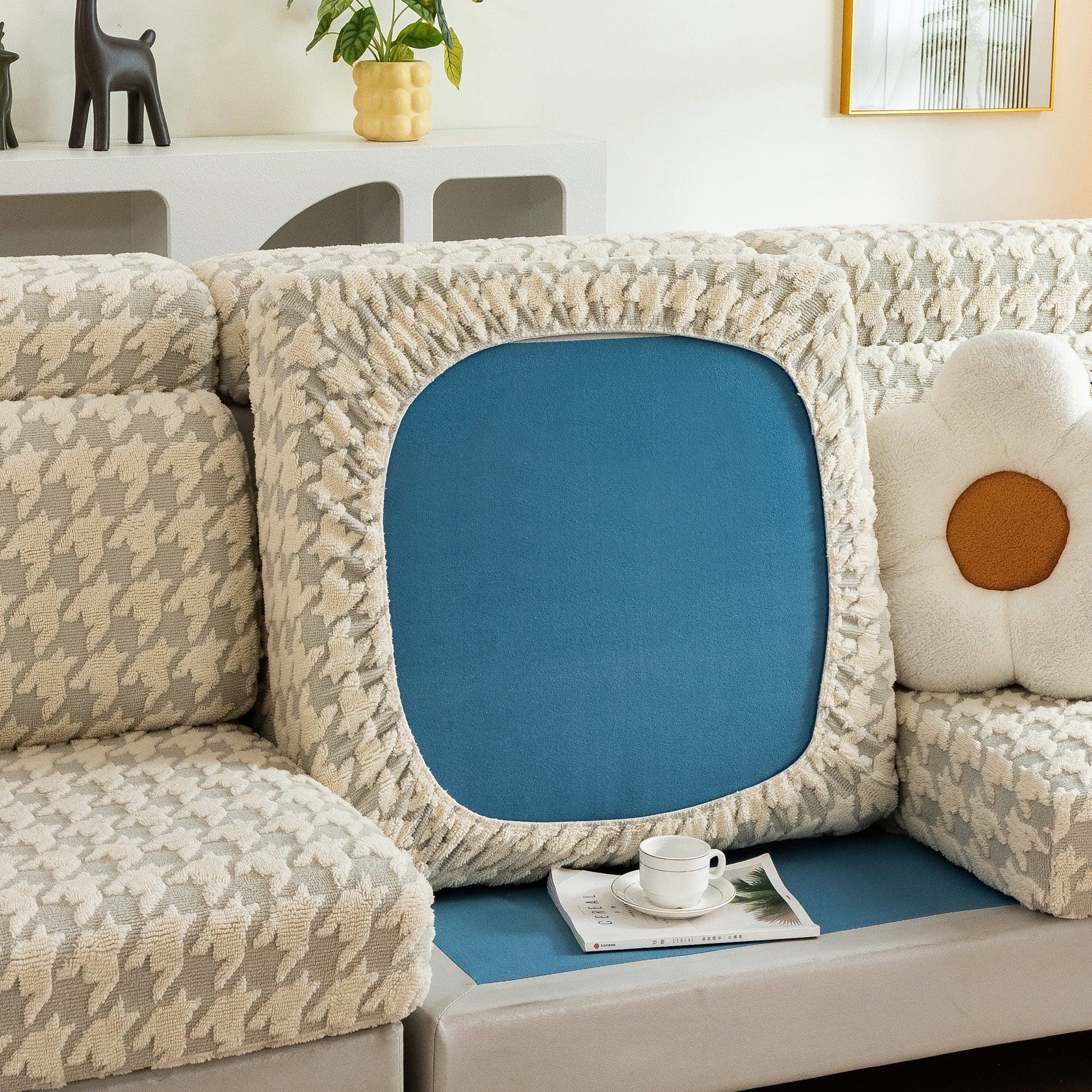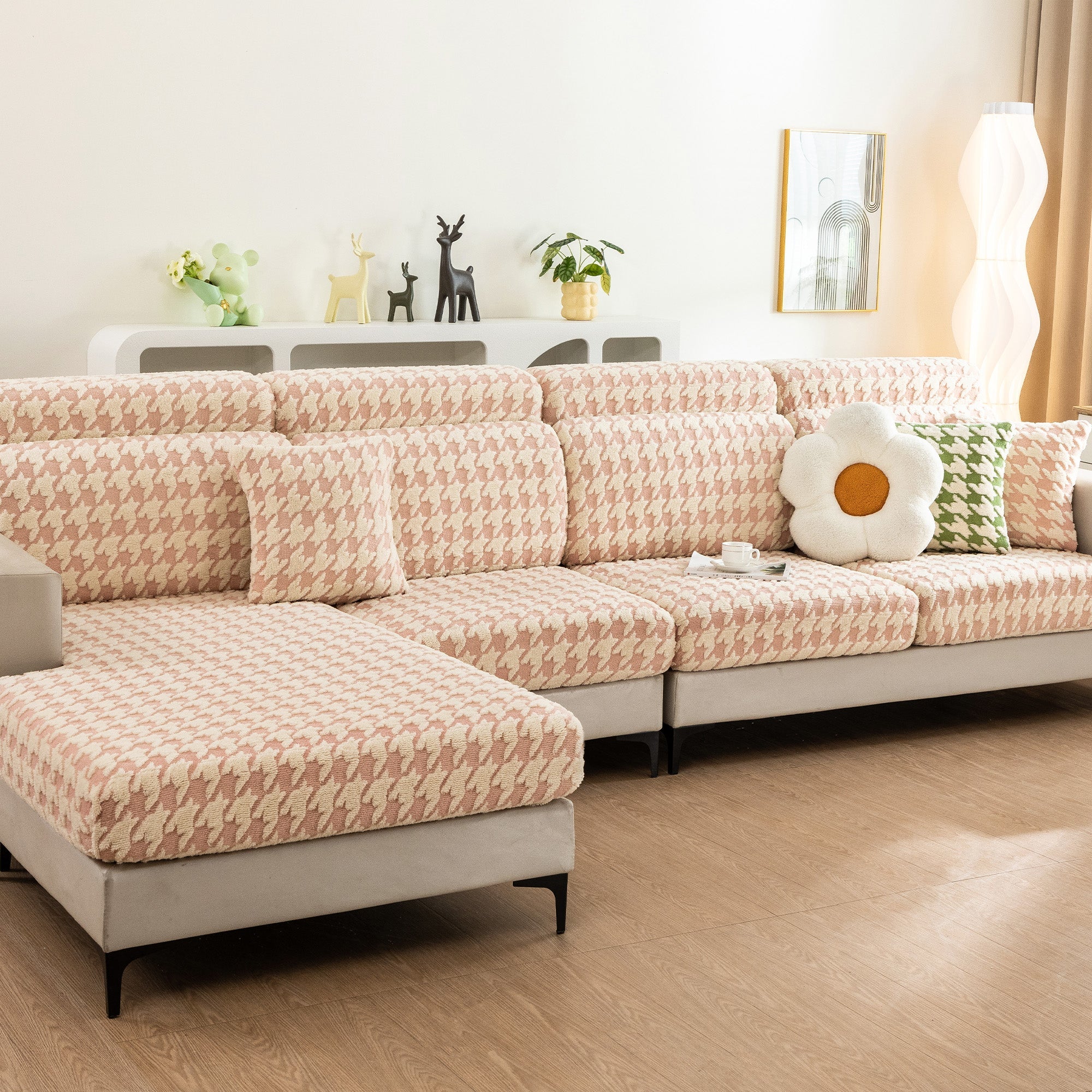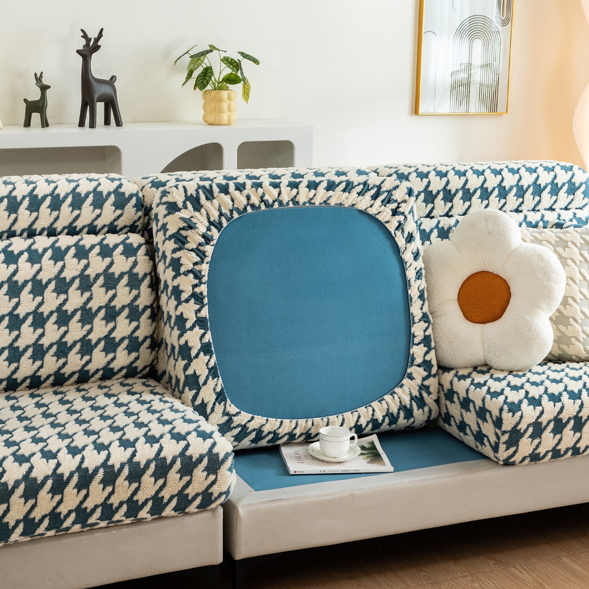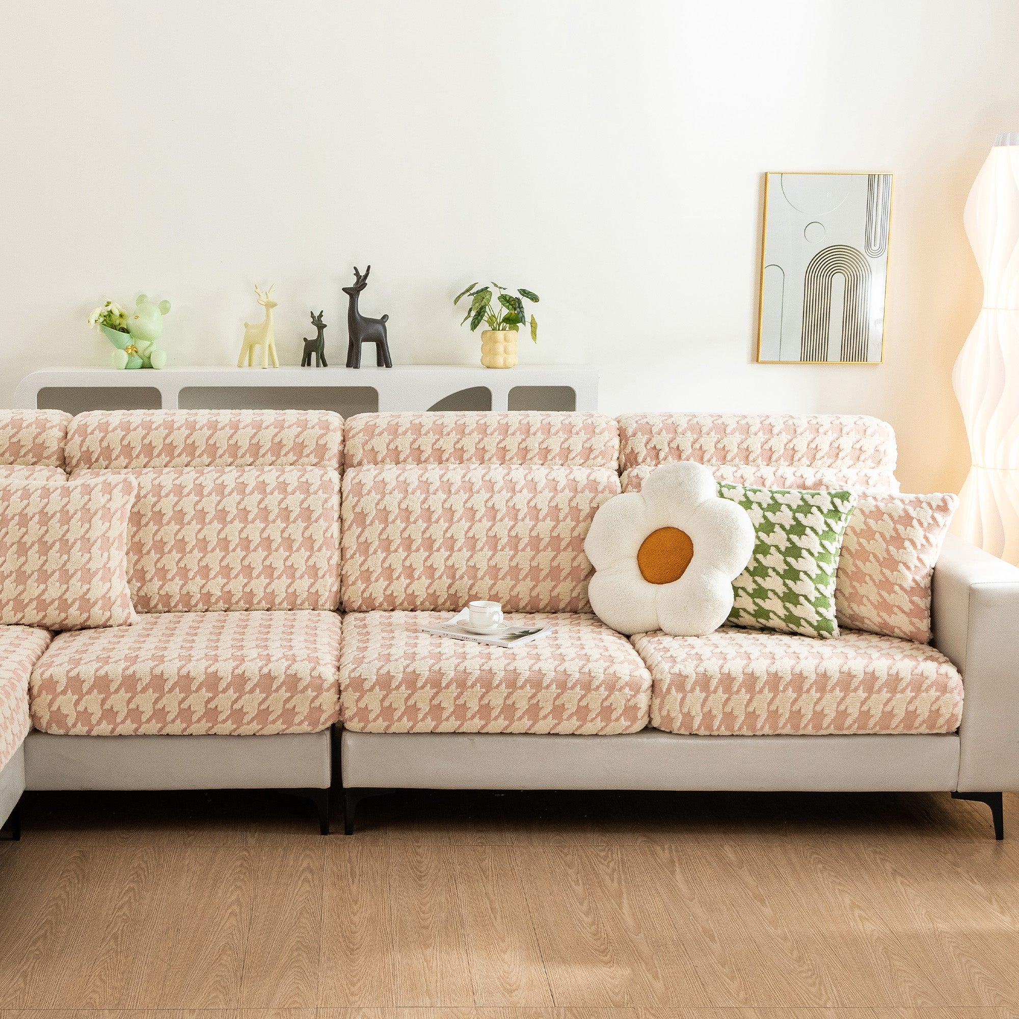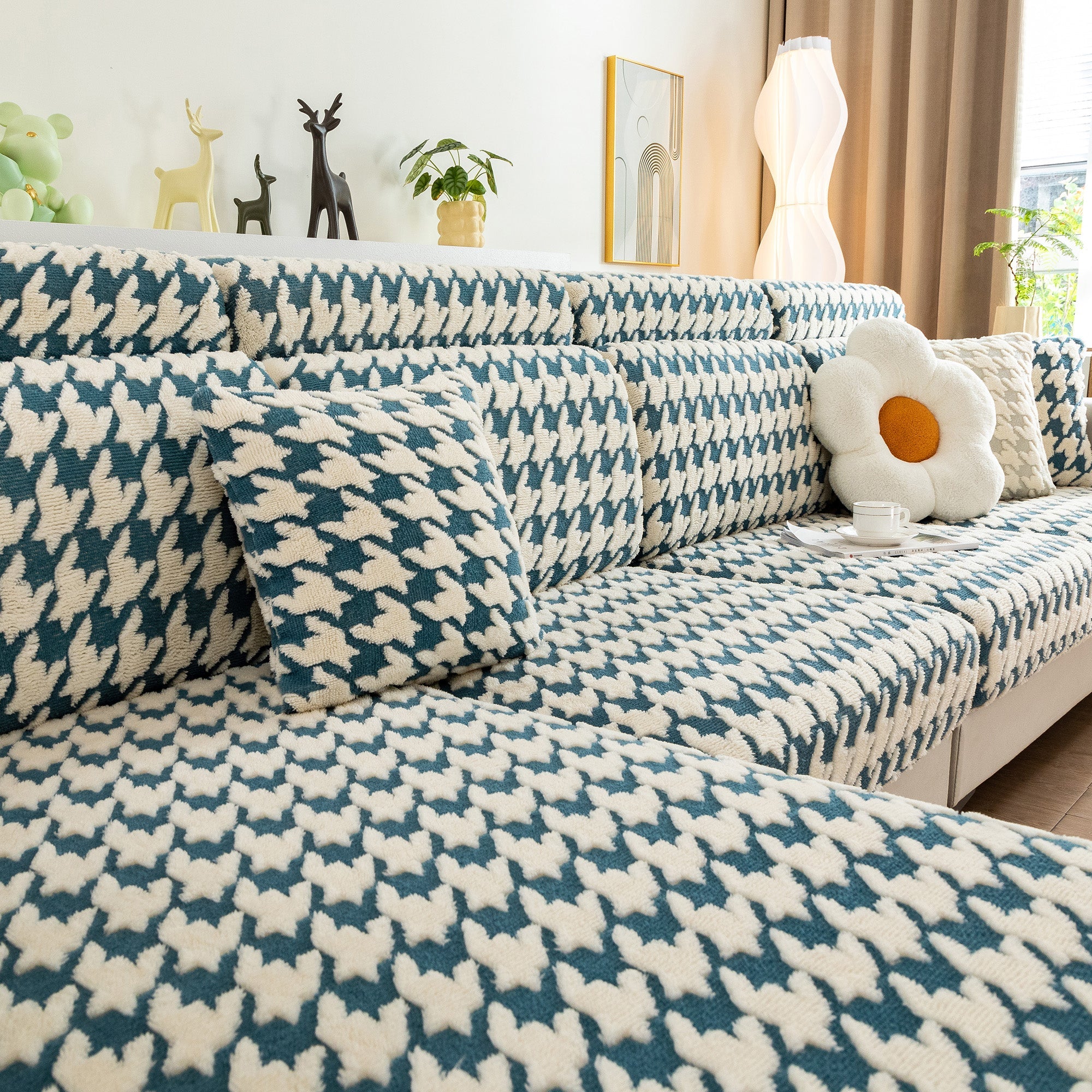 Klassischer Stretch-Sofabezug aus Fleece mit Hahnentrittmuster – kratzfest, vollständiger Schutz für Haustiere