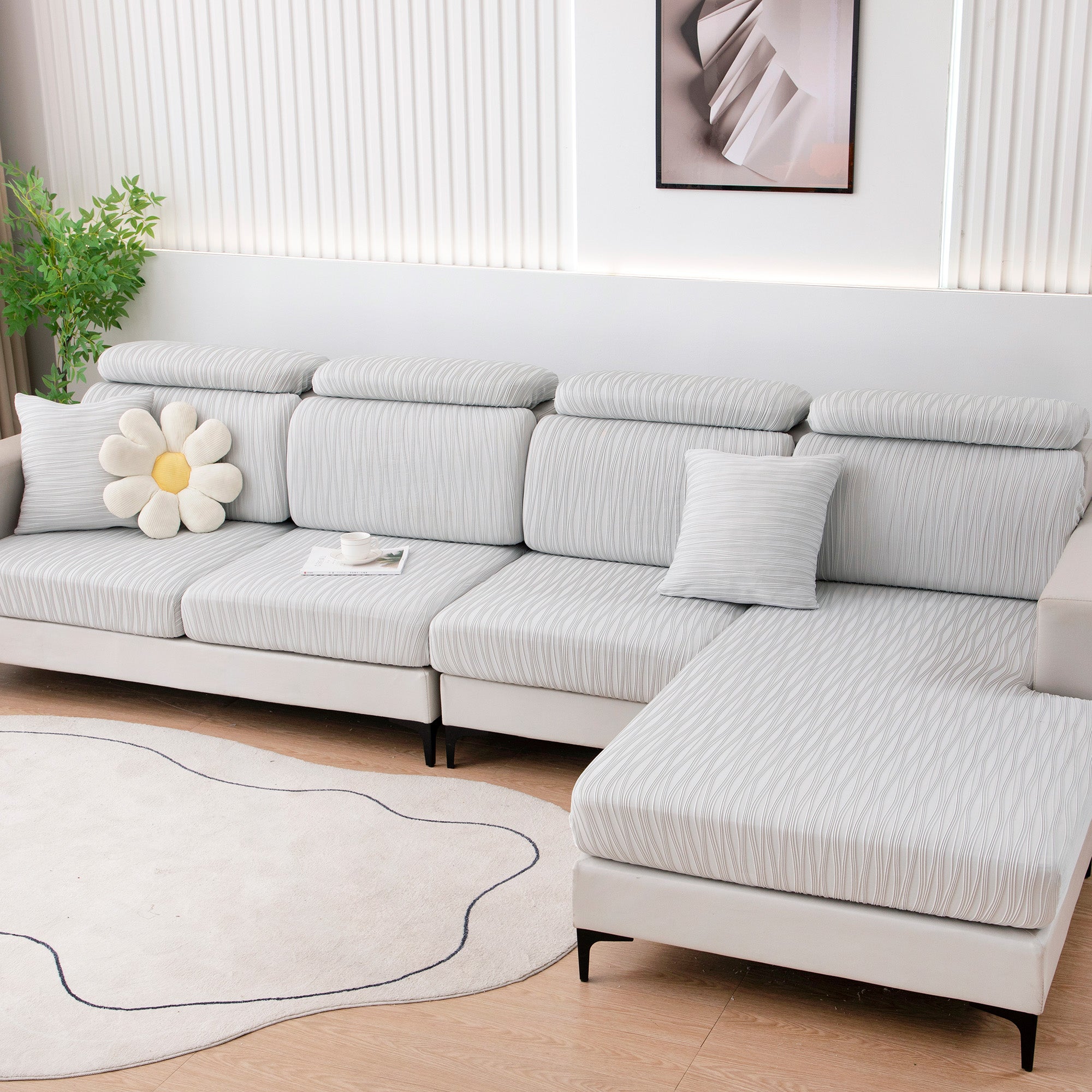 Verleihen Sie Ihrem Sofa mühelose Eleganz und Alltagstauglichkeit mit unserem LuxeShield Stretchbezug – hier trifft modernes Design auf Rundumschutz. Dieser strukturierte Schonbezug aus hochwertigem Jacquardgewebe bietet mehr als nur Optik. Seine Rundum-Konstruktion schmiegt sich an jede Kante Ihres Sofas und sorgt für einen festen, sicheren Sitz. Das doppelte Anti-Rutsch-Design sorgt dafür, dass er an Ort und Stelle bleibt – egal, ob Sie faulenzen, springen oder Haustiere jagen.