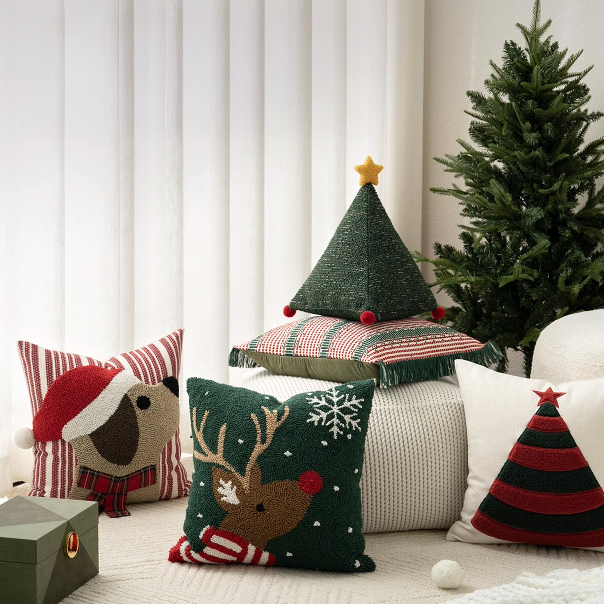 Dieses Design verleiht Ihrer Weihnachtsdekoration eine fröhliche, elegante Note und kombiniert den zeitlosen Charme der Sterne mit dem verspielten Touch von Quasten. Es ist perfekt für Sprea. Diese Kissen ergänzen sich perfekt und kombinieren die Wärme von Rot mit der festlichen Energie grüner Sterne, um eine stilvolle und gemütliche festliche Atmosphäre zu schaffen.